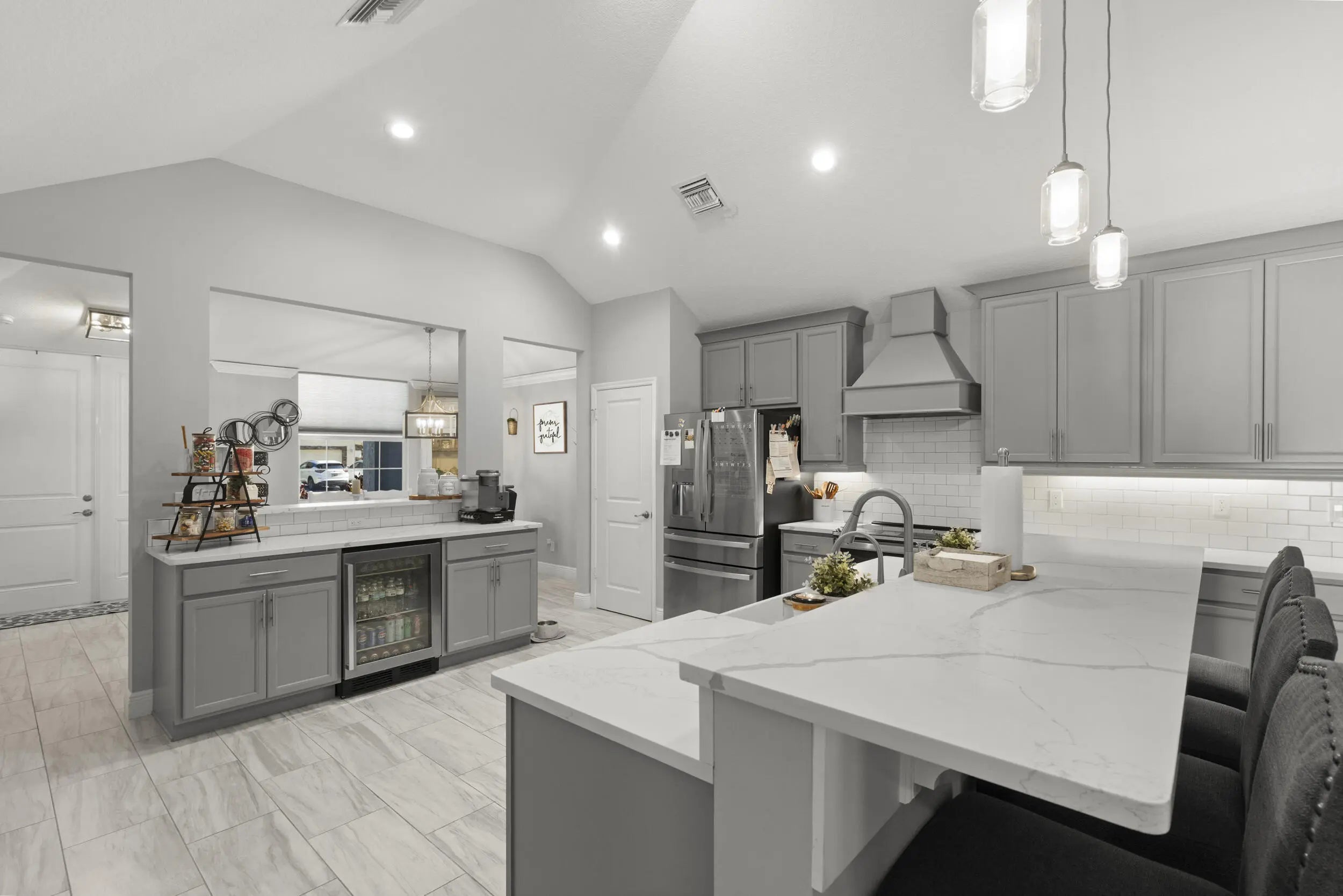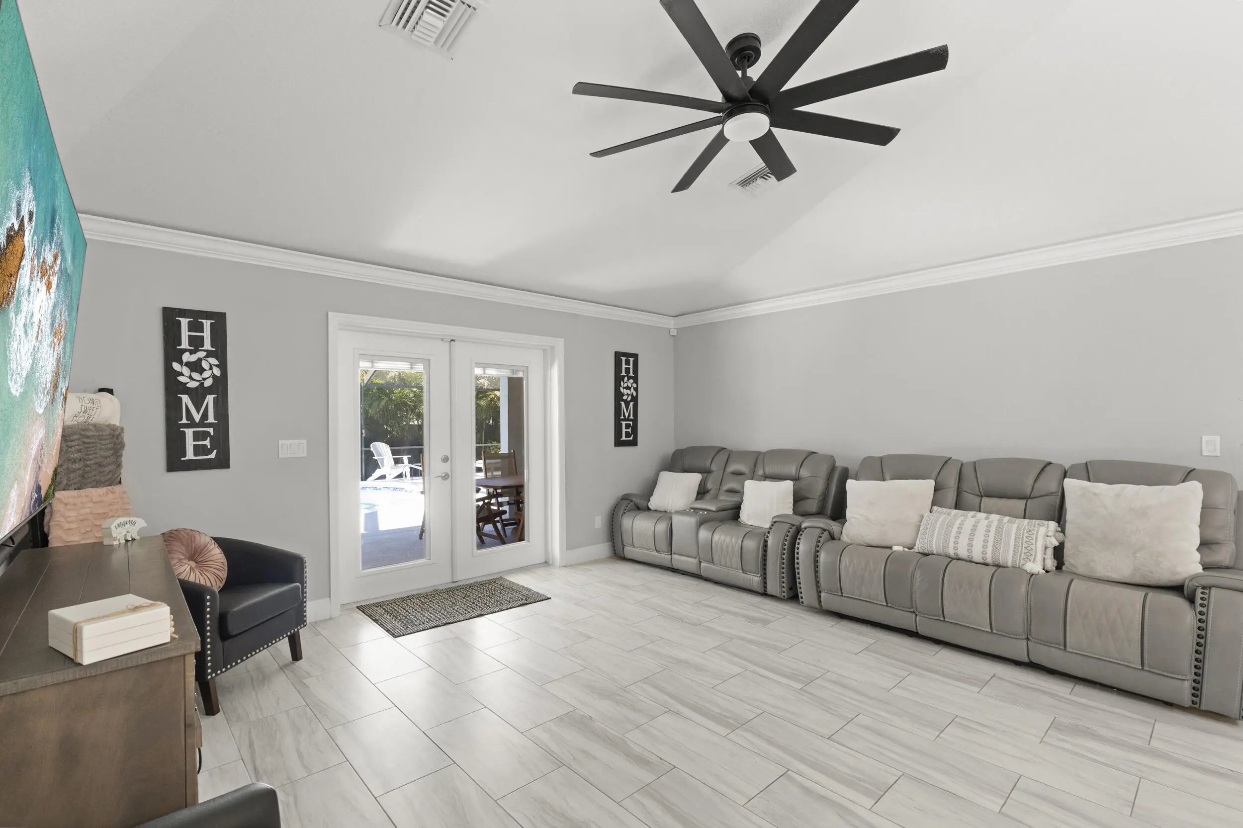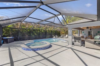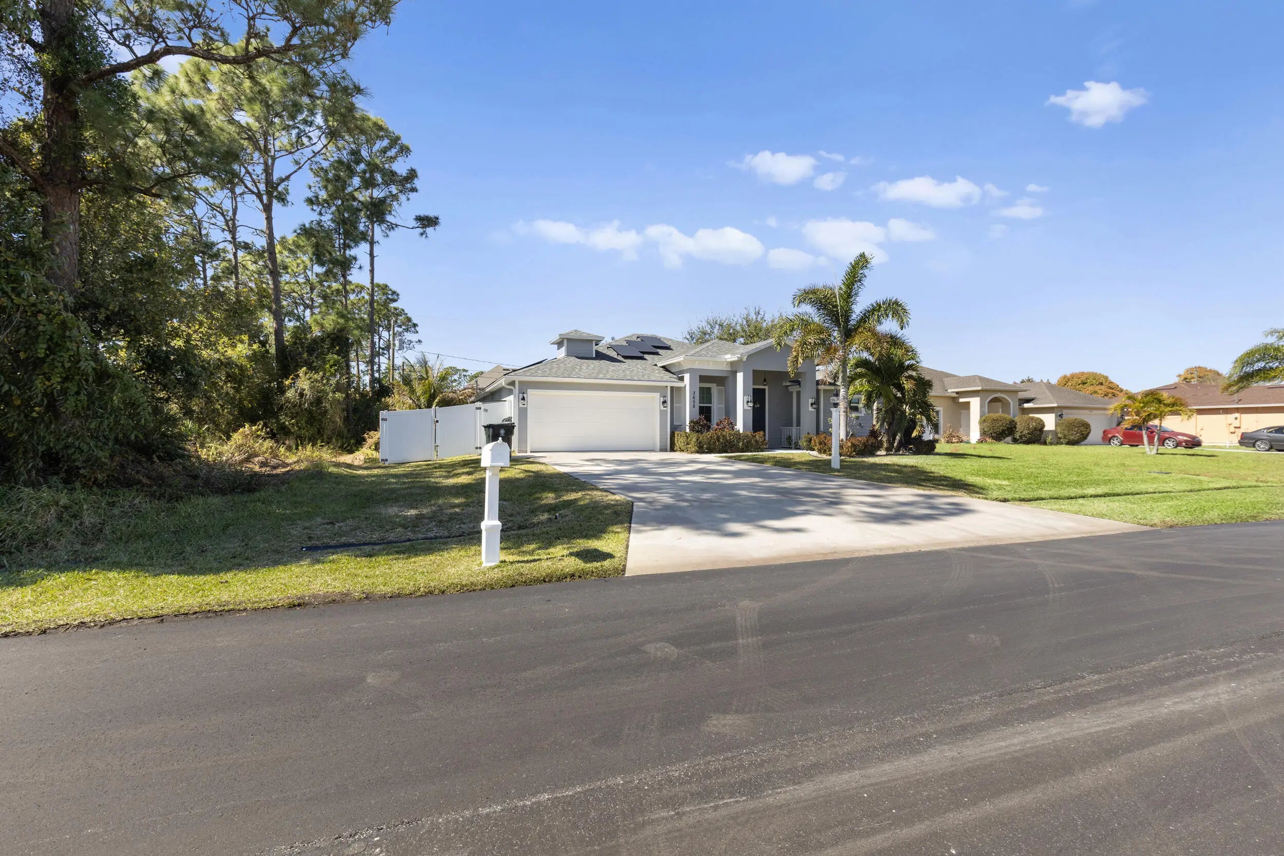Stunning Groza-built 4-bedroom, 4-bath home with 2,120 sq ft under air, featuring a pool and spa and a 2-car garage, with a true split floor plan and high-end finishes throughout. The spacious kitchen is equipped with top-of-the-line stainless steel appliances, quartz countertops, and a large island perfect for cooking and entertaining. The primary suite offers a custom built-in closet system, dual sinks, and a beautifully finished modern bathroom, while all bedrooms feature additional recessed lighting for a bright, contemporary feel. This home is loaded with premium improvements, including owned solar panels, a whole-house generator with a 500-gallon underground propane tank, a full Ring security system, a whole-house water filtration system, a new reverse osmosis tap in the kitchen and a WiFi-controlled pool and spa. Outdoor living also features low-voltage landscape and pool lighting, a tongue-and-groove patio ceiling, a full irrigation system with rust prevention, and lush landscaping for privacy. The property is fully enclosed with vinyl fencing and features gutters around the entire home. Located in desirable Port St. Lucie with no HOA, this home combines comfort, efficiency, security, and luxury in one exceptional package. Schedule your private showing today.