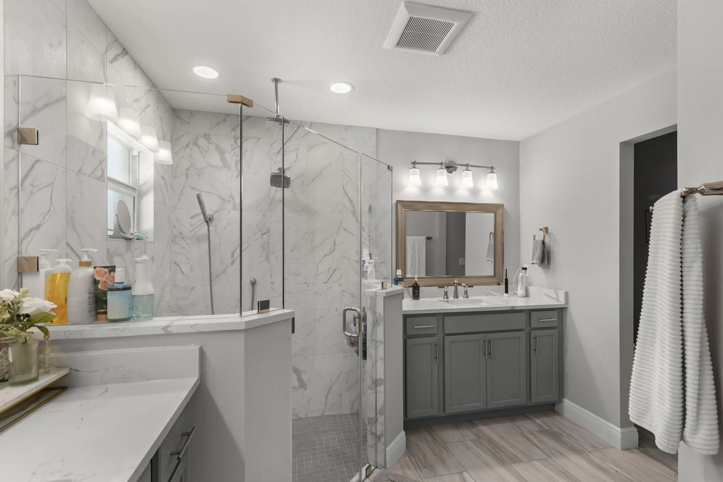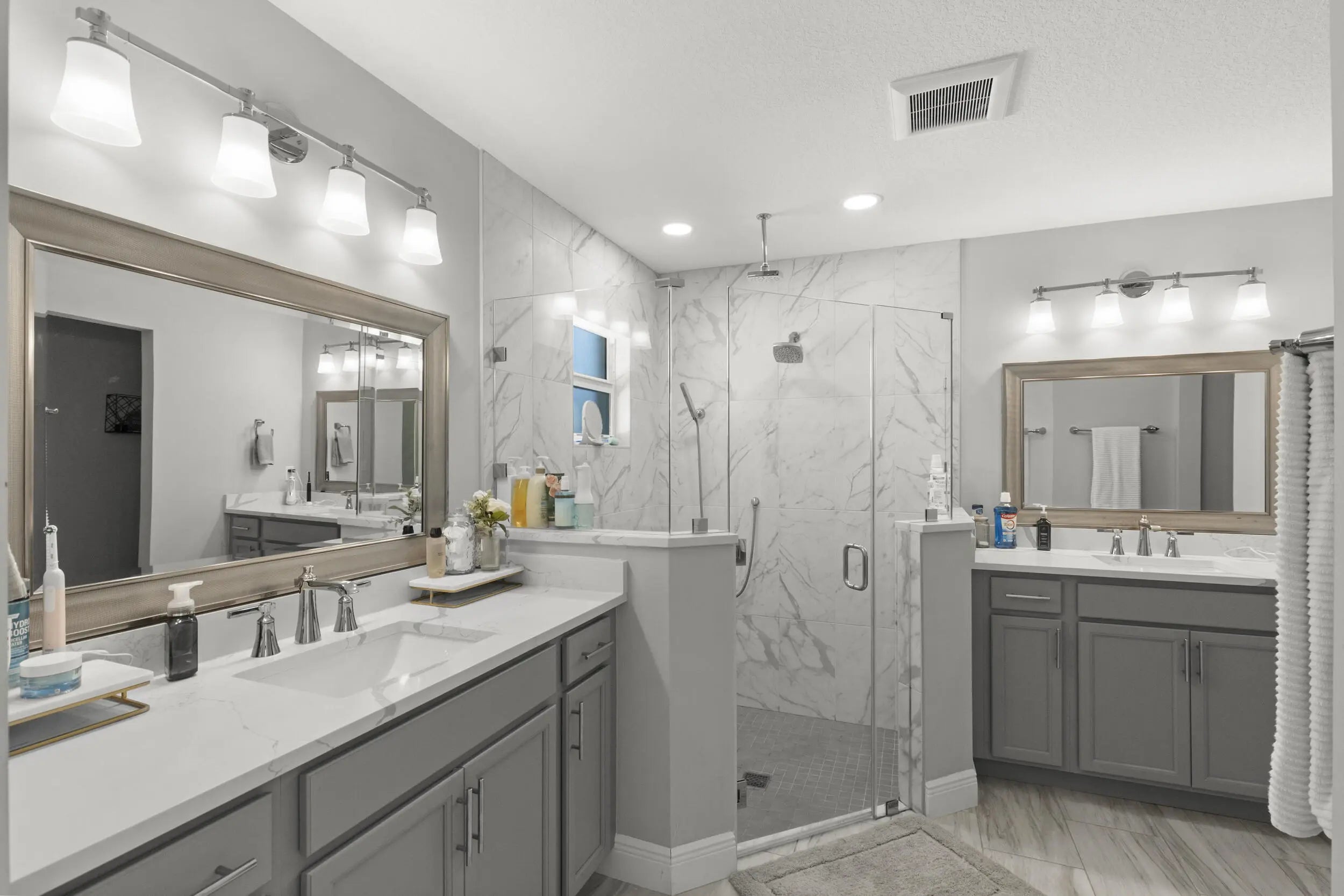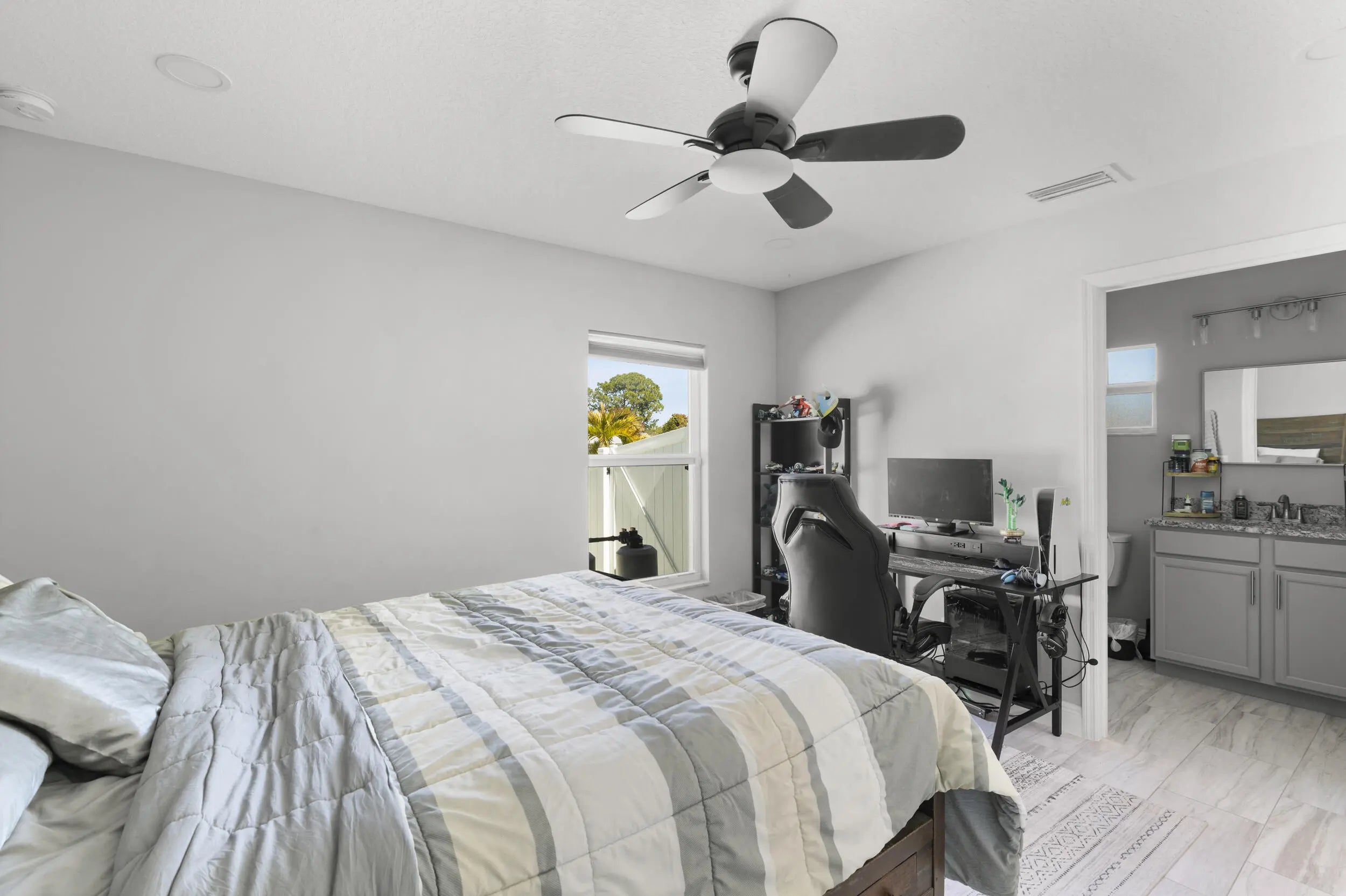 Stunning Groza-built 4-bedroom, 4-bath home with 2,120 sq ft under air, featuring a pool and spa and a 2-car garage, with a true split floor plan and high-end finishes throughout. The spacious kitchen is equipped with top-of-the-line stainless steel appliances, quartz countertops, and a large island perfect for cooking and entertaining. The primary suite offers a custom built-in closet system, dual sinks, and a beautifully finished modern bathroom, while all bedrooms feature additional recessed lighting for a bright, contemporary feel. This home is loaded with premium improvements, including owned solar panels, a whole-house generator with a 500-gallon underground propane tank, a full Ring security system, a whole-house water filtration system, a new reverse osmosis tap in the kitchen and a WiFi-controlled pool and spa. Outdoor living also features low-voltage landscape and pool lighting, a tongue-and-groove patio ceiling, a full irrigation system with rust prevention, and lush landscaping for privacy. The property is fully enclosed with vinyl fencing and features gutters around the entire home. Located in desirable Port St. Lucie with no HOA, this home combines comfort, efficiency, security, and luxury in one exceptional package. Schedule your private showing today.