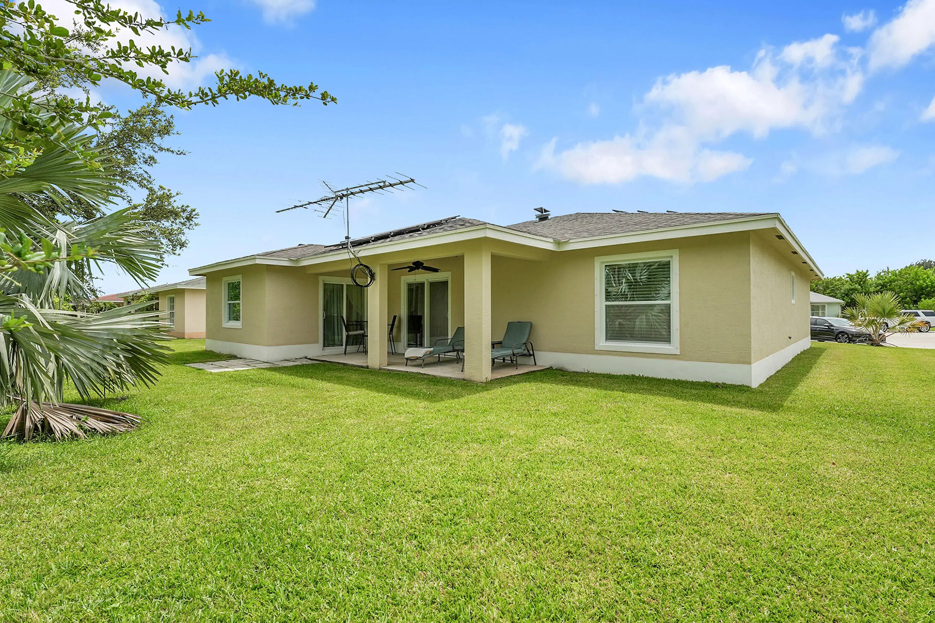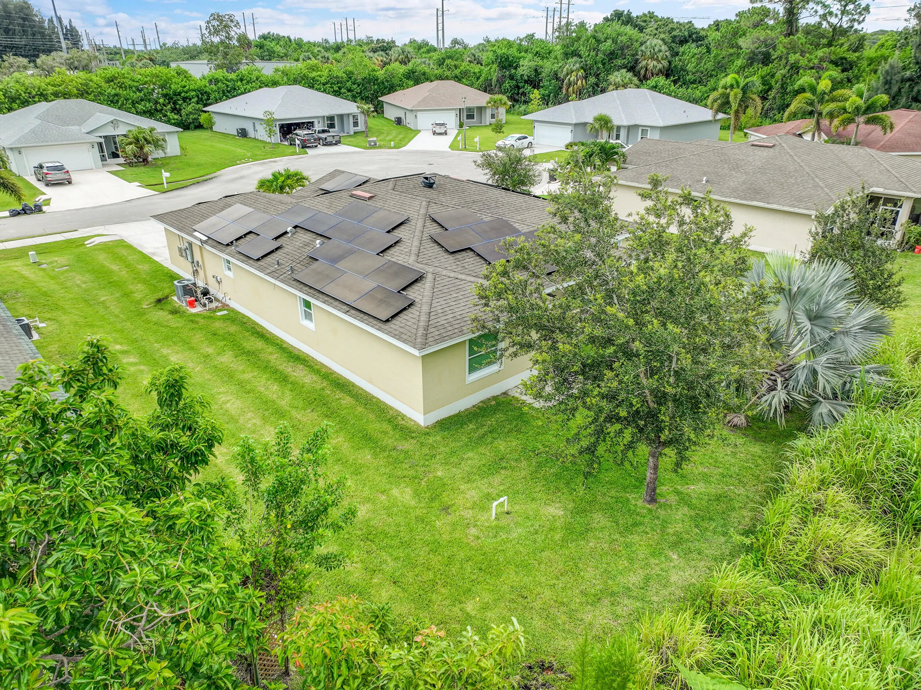 2017-BUILT. FREE POWER!! NE PSL. SAVE $Thousands/Year With NO Power Company (FPL) Usage!! 2017-Built CBS Nearly 1900sf 3+Den/2/2 w/ 2022 EXTENSIVE 17.6KW WHOLE HOUSE SOLAR SYSTEM ($72K System! Remaining Balance Will Be Paid Off By Seller!) Located on Quiet Cul-De-Sac. Granite Kitchen w/ Hi-End Maple Cabinets. Large Family Rm. Den/Office Could Be 4th Bdrm. NO NEIGHBORS BEHIND. Elementary 5 Minutes away! Intracoastal 10 Minutes. Roman Tub/Separate Shower And Dual Vanities In Mstr Bath. Covered Patio. Remarkable Value. (Agent Can Provide Utility Bill Showing NO FPL USAGE For Buyer Review.)