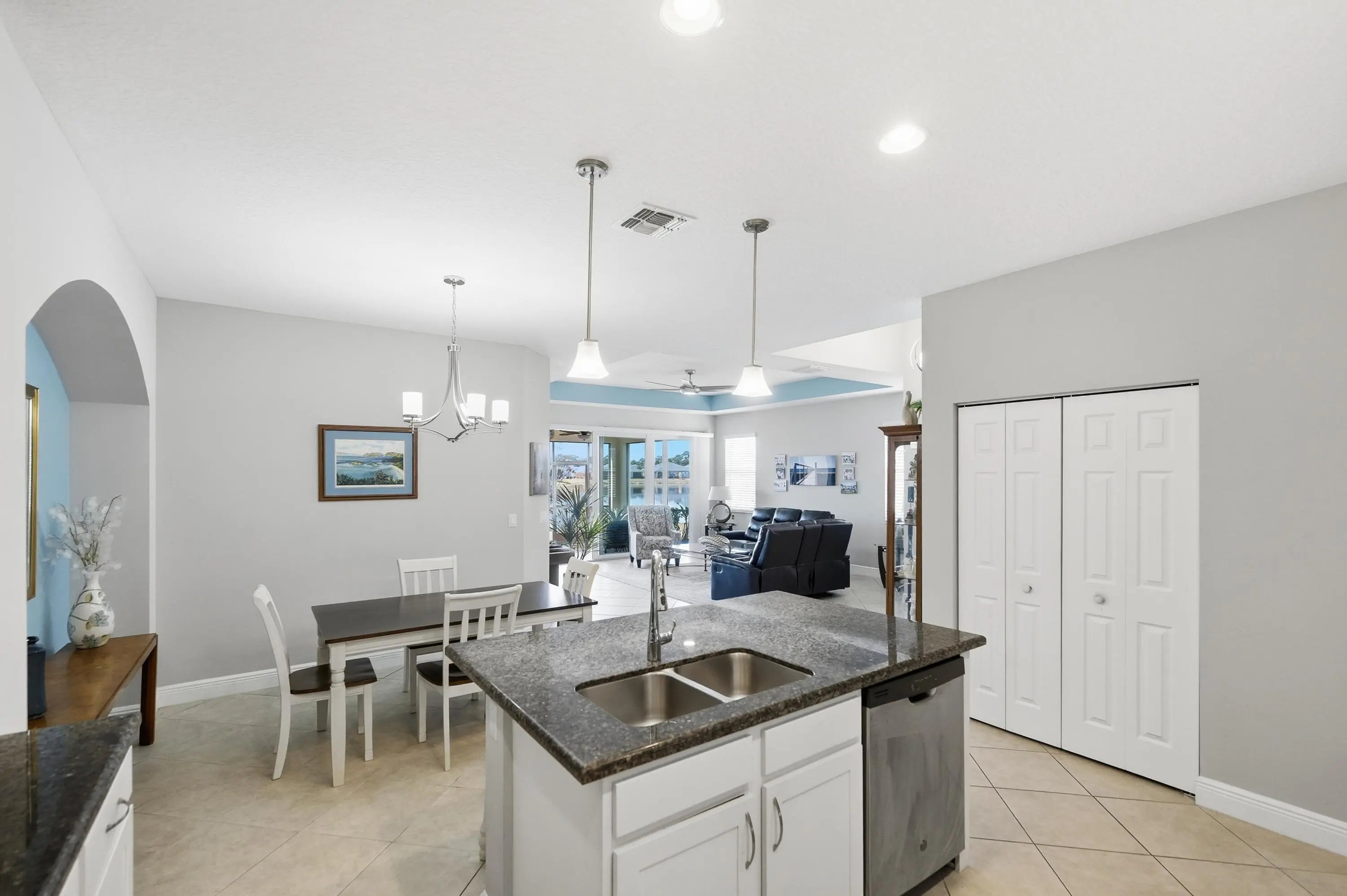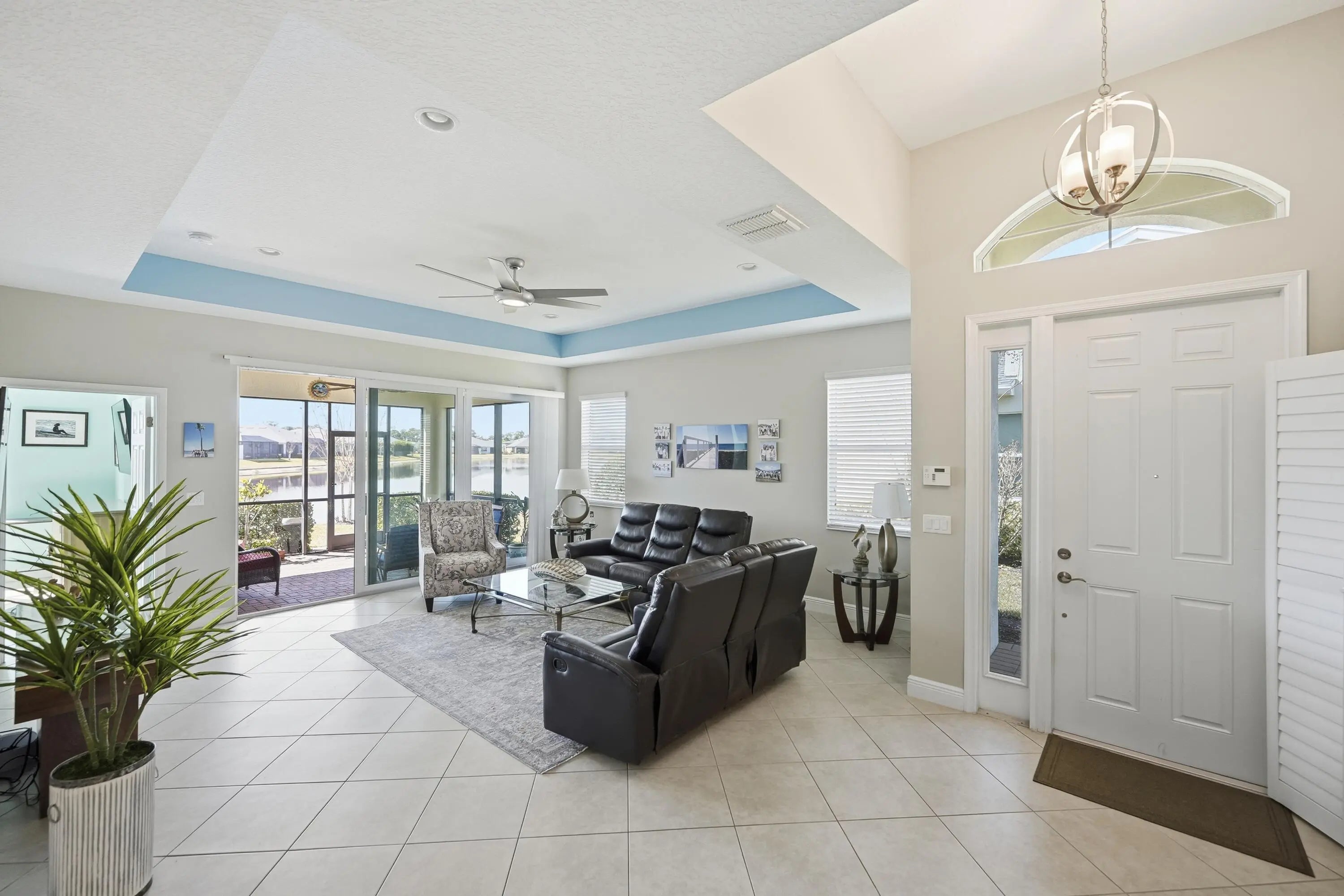 Experience captivating panoramic lake views and sunsets from this stunning 2-bedroom plus den villa in LakePark at Tradition. The 1,565 sq. ft. interior features an open great room, volume ceilings, and a chef's kitchen with a large island and premium appliances. The primary suite offers a private retreat with water views and a large walk-in shower. Modern comforts include impact glass windows and a new water heater being installed for peace of mind. Enjoy the nightly light show from your screened lanai or dive into the 55+ resort lifestyle with access to two clubhouses, fitness centers, and pools. The HOA covers cable, internet, and landscaping, ensuring total maintenance-free living in this premier waterfront community. Nestled in the premier LakePark at Tradition 55+ community, you'll enjoy a resort lifestyle with access to two clubhouses, fitness centers, and swimming poolsall while the HOA handles cable, internet, and landscaping for total maintenance-free living.