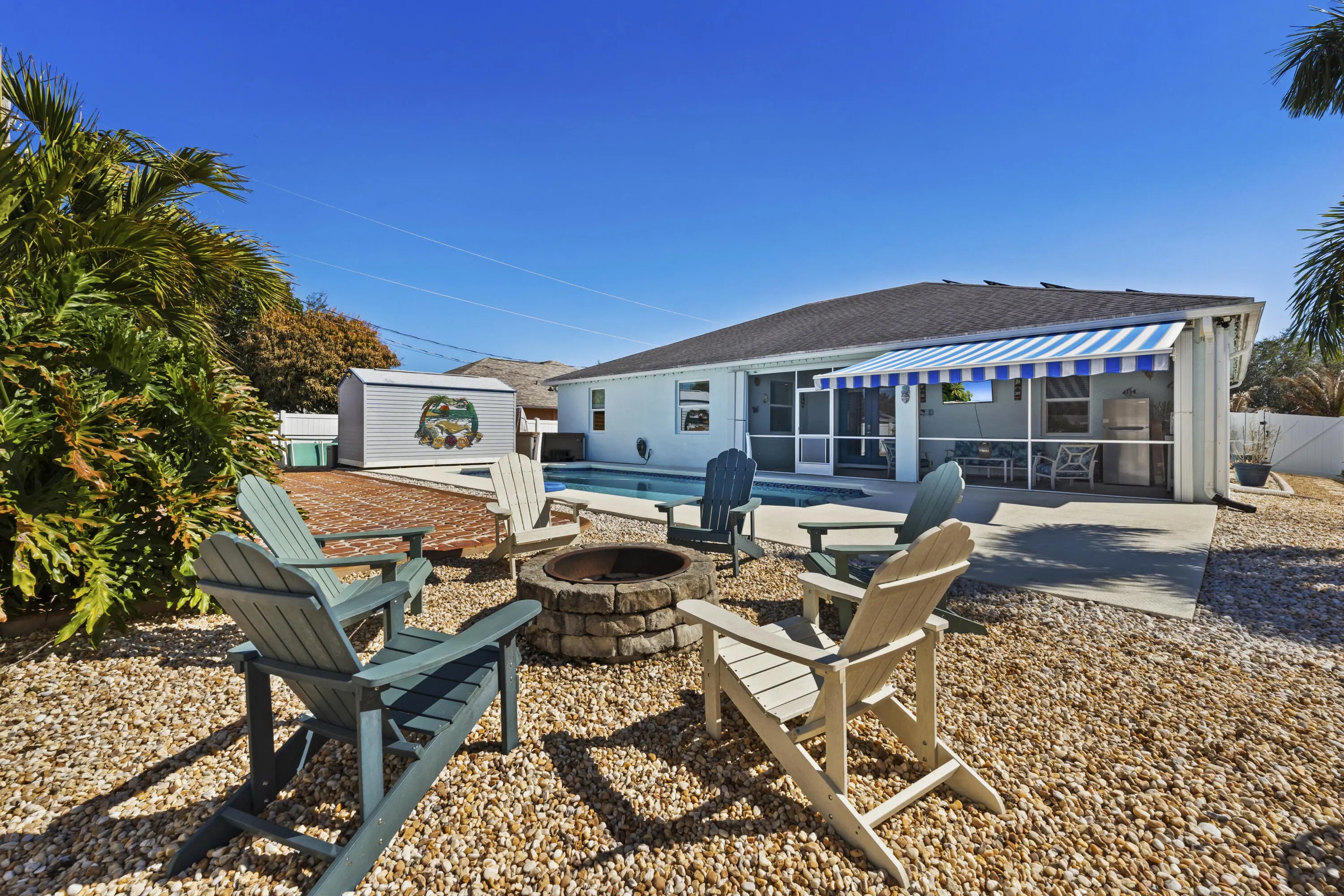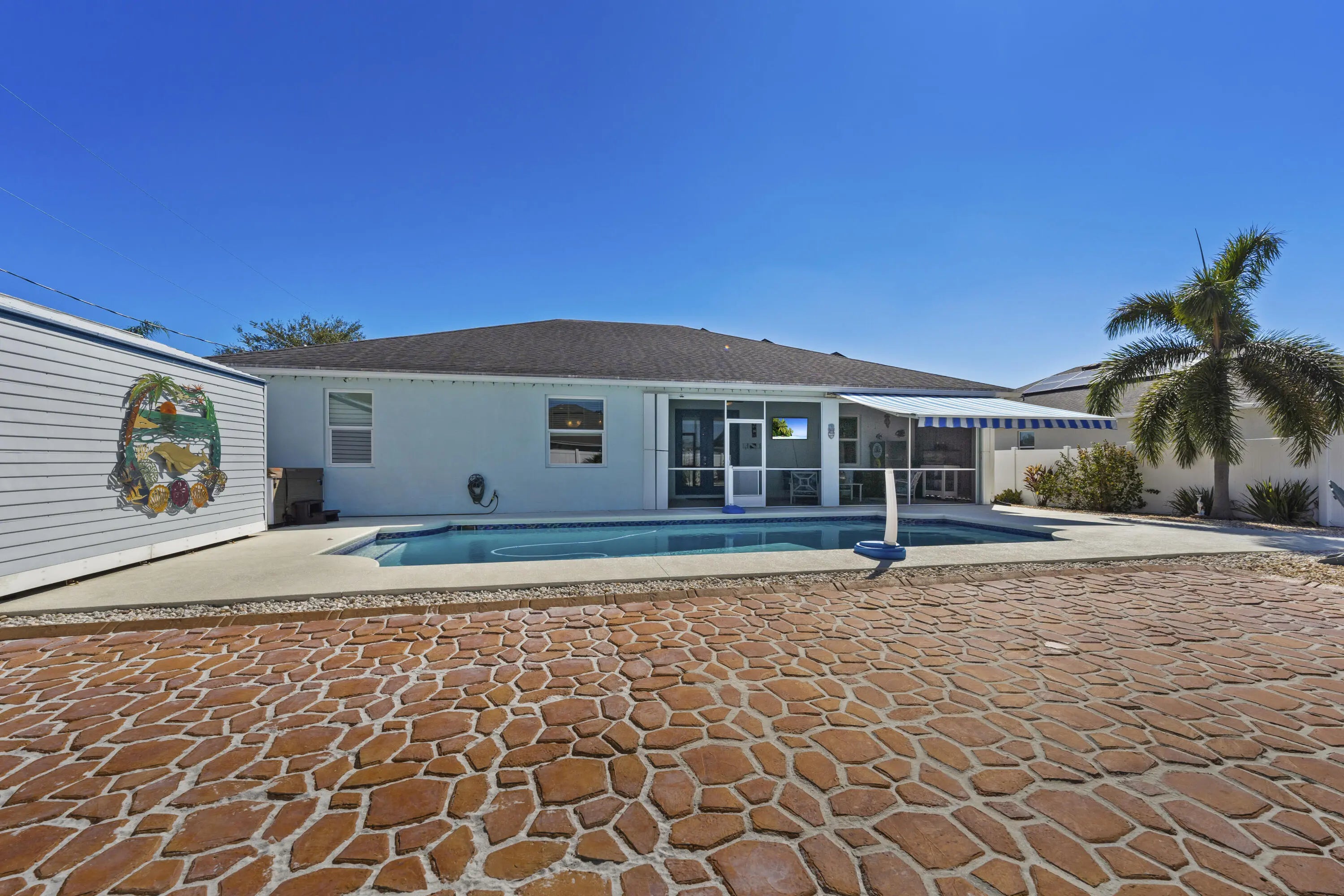 GO GREEN and SAVE GREEN! How does a $75--$100 power bill sound while running your pool and hot tub!! Welcome to 393 SW Alcan Drive! This SOLAR POWERED home built by Synergy Homes, features a heated pool, hot tub, no maintenance paver backyard, cool deck front and rear, Sun setter auto retractable awning and fire pit, creating the perfect outdoor space for entertaining and relaxing. Two spacious sheds provide ample storage. Hurricane impact windows are throughout and accordion shutters on the back patio offer added protection and peace of mind. Call for complete list of upgrades! Located in a quiet Port Saint Lucie neighborhood with no HOA, close to shopping, dining, and schools. Solar Panels to be paid off at closing .