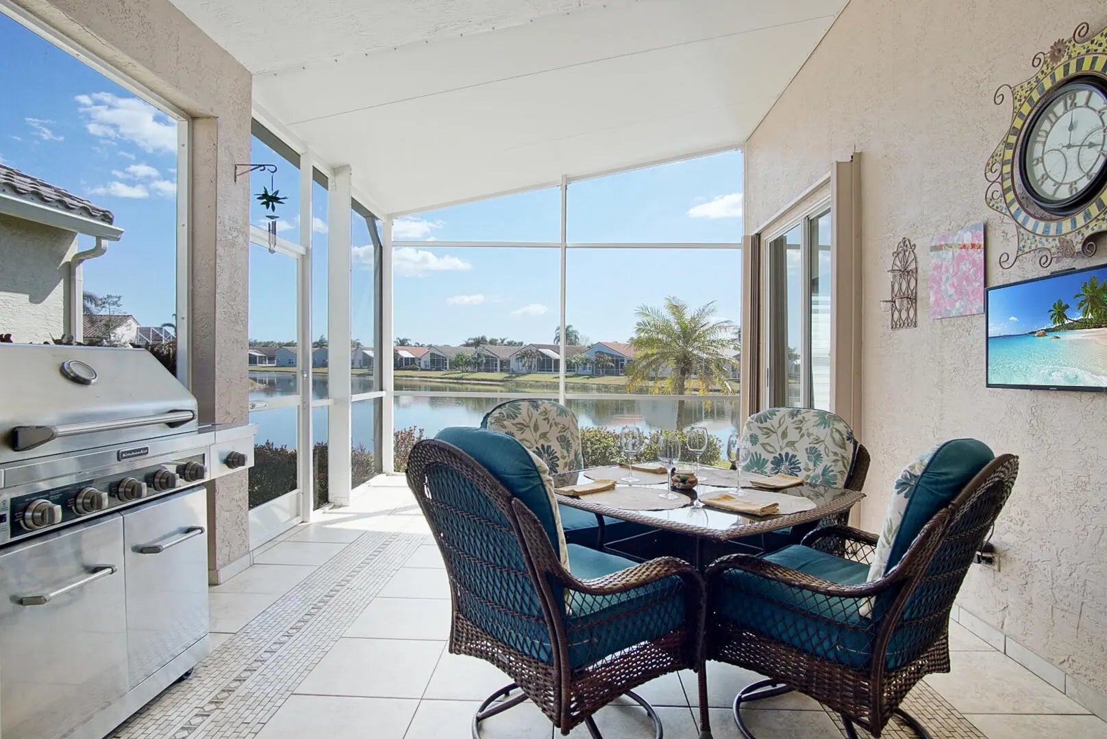 The Cascades is one of the top rated 55+ communities in America, and this home is filled with amenities you're going to love. Granite countertops and a convenient center island in the kitchen, as well as stainless steel appliances, a pantry, and everyone's favorite, a gas stove. The master bedroom offers endless space, and the master bathroom comes with two seperate vanities and a glass front shower with seating. Additional amenities include plantation shutters, marble window ledges, custom motorized blinds, crown molding, a smart thermostat, and gorgeous plank tile flooring throughout. Step outside and enjoy the stunning lakefront views from your oversized screened patio. You'll also appreciate the barrel tile roof, gutters, paver driveway, auto sprinkler system, and accordion shutters. The clubhouse boasts a community pool and spa, sauna, tiki bar, fitness center, library, 3 poker/card rooms, billiards, basketball courts, clay tennis courts, 4 pickleball courts, bocce ball courts, a pro shop for tennis, and a 9-hole golf course for residents and guests. The Cascades is known for it's active community, so don't forget to check out the activities calendar here in the documents section of this listing.
