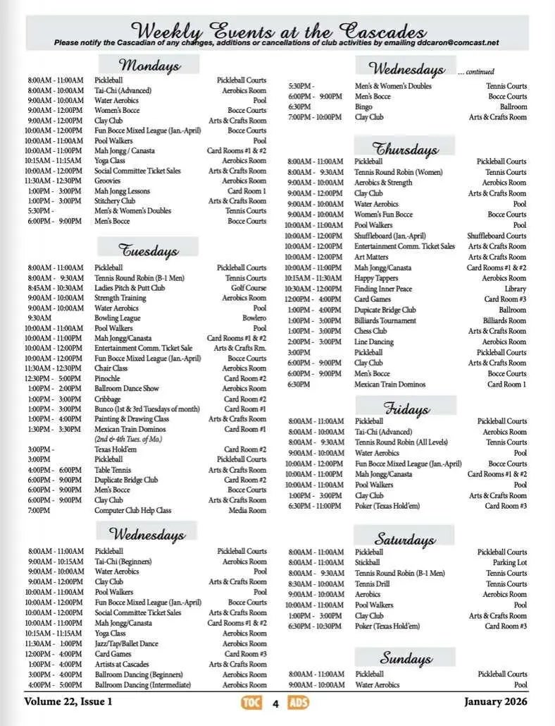Basketball Court, Billiard Room, Clubhouse, Fitness Center, Golf Course, Game Room, Picnic Area, Pool, Sauna, Spa/Hot Tub, Tennis Court(s), Bocce Ball, Community Room, Internet Included, Library, Pickleball Court(s), Sidewalks