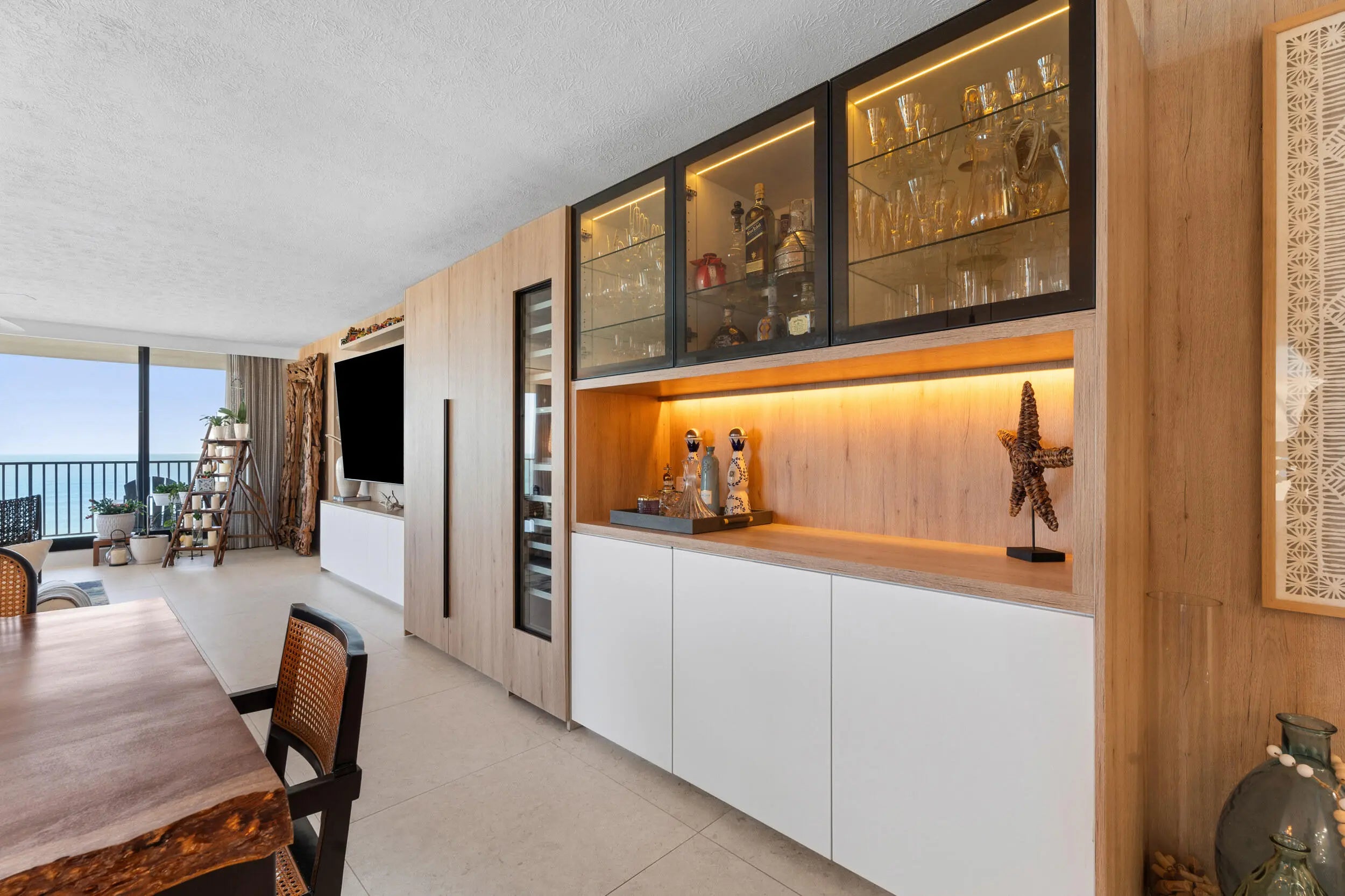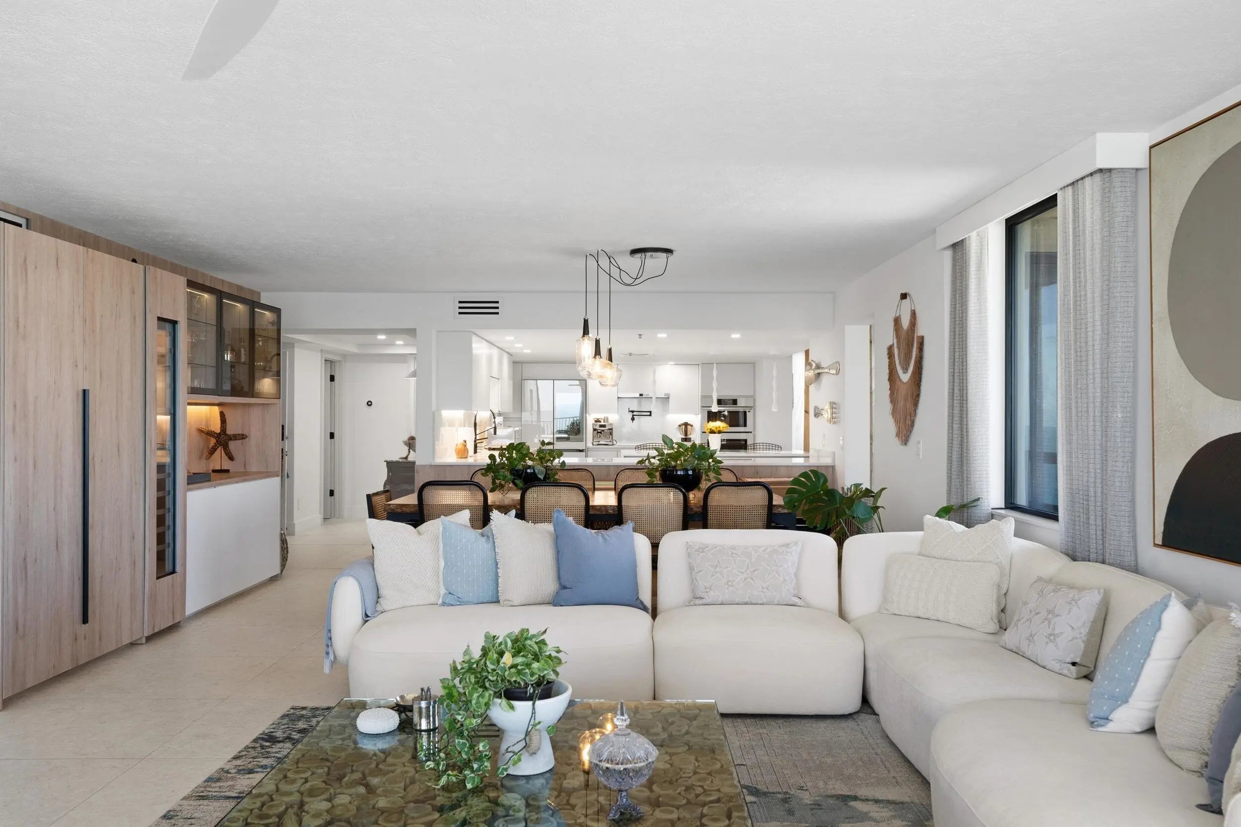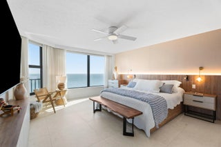 Luxury at its finest within this 3 bedroom 2.5 bath 2 car garage fully remodeled unit on the 9th floor in the Visions. Total remodel was approx. $500,000. Improvements and features include complete impact doors and windows, fossil ceramic tile flooring with a sound proof membrane and new 6 inch baseboards. Fully remodeled kitchen with custom cabinetry, white dolomite stone island, Samsung Bespoke appliances, Thermador induction cooktop, pot filler and farmhouse sink. Floor to ceiling windows with a separate dining area off the kitchen that provides the most amazing ocean and intracoastal views. The dining room includes a Thermador 62-bottle wine cooler, custom bar and custom closets. Large balcony wraps around the entire unit providing breathtaking views of the ocean, intracoastal and the natural beauty of Hutchinson Island. All bedrooms include remote controlled privacy shades. All bathrooms include new closets and cabinetry, and all shower doors are treated with EnduroShield. Master bedroom features a custom bed, new closets, custom remote shades and curtains. The laundry room features new custom floor tiles, new cabinetry, tankless hot water tank, AC diffuser and sink. The freshly painted 2 car garage features an EV outlet. This is a once in a lifetime find with all the bells and whistles. Come enjoy resort style amenities and private beach access. Footsteps away you can enjoy the beautiful 3000 acre barrier island with 2000 of those acres preserved, with natural trails for you to explore, paddle board, kayak, fish and relax. Located minutes to shopping and dining with easy access to road ways and airports.