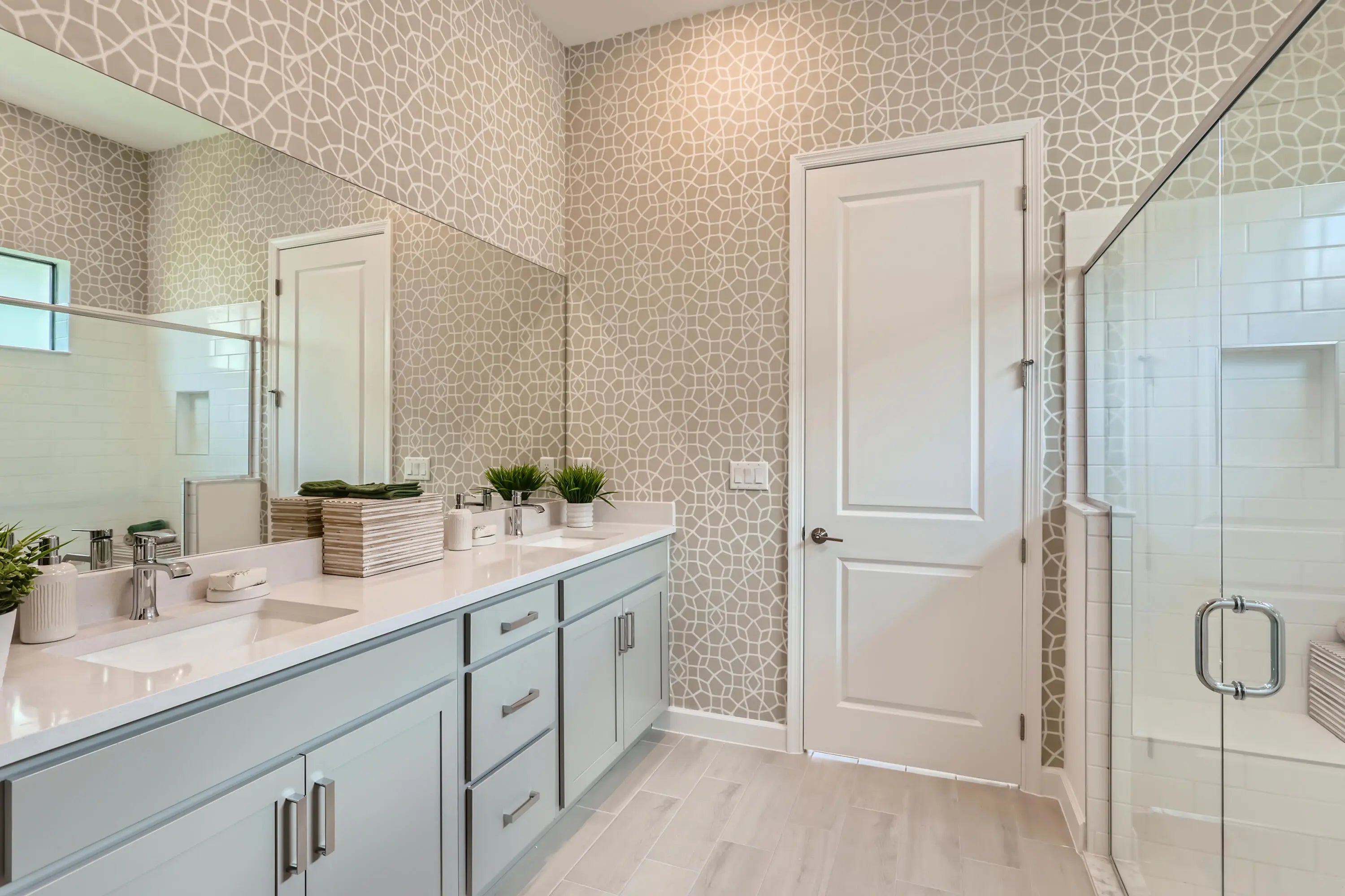 This two-story home combines modern comfort with style. To the side of the foyer is a flex space well-suited as an office, while down the hallway is a cohesive open layout with a covered terrace to deliver seamless . The tranquil owner's suite with en-suite bathroom is tucked into the back corner on the first floor, affording homeowners privacy away from the remaining upstairs bedrooms. The top level hosts a large loft Prices, dimensions and features may vary and are subject to change. Photos are for illustrative purposes only.