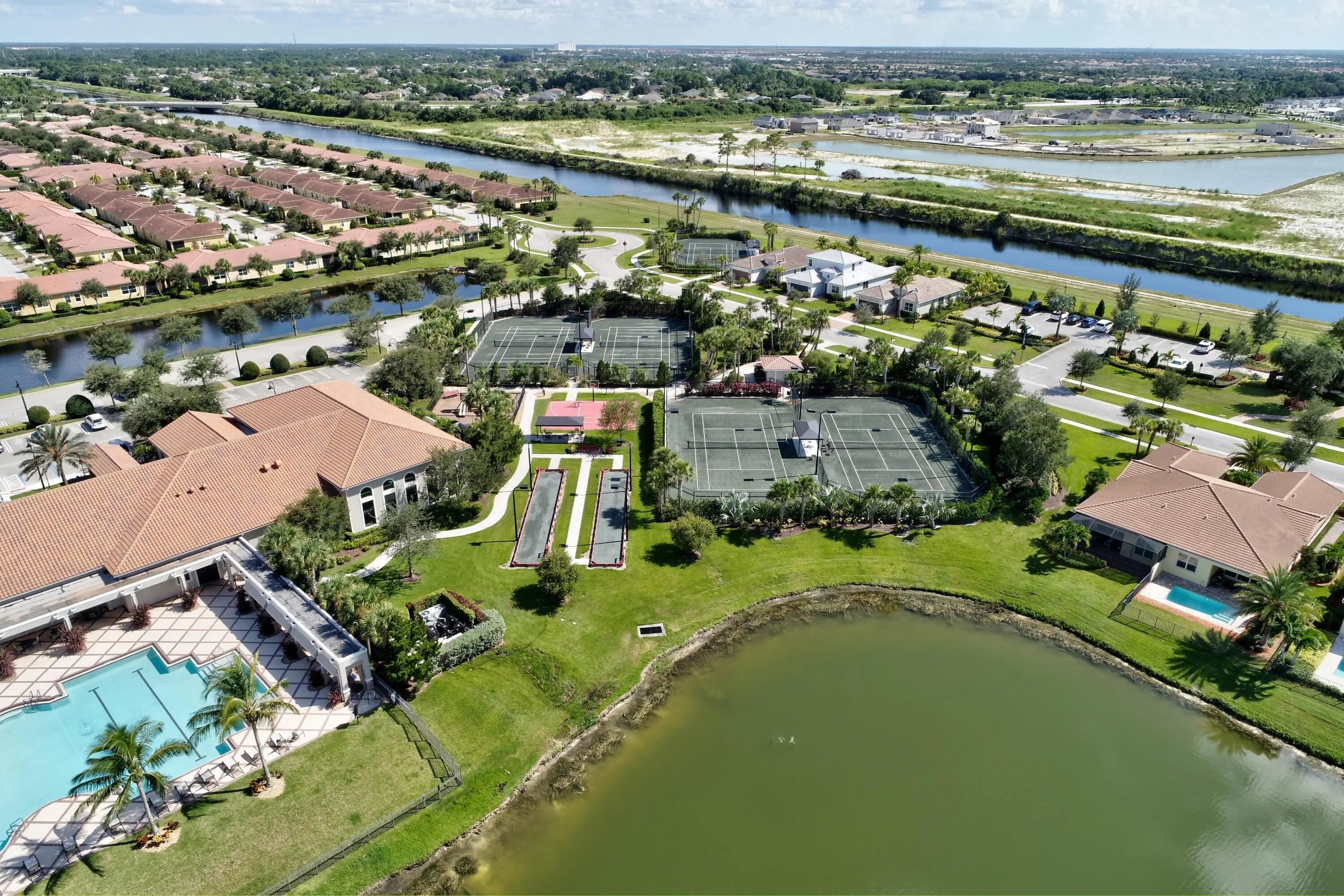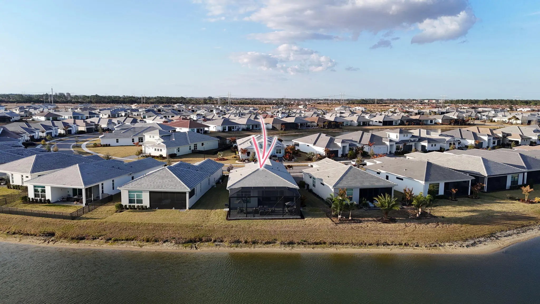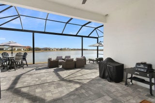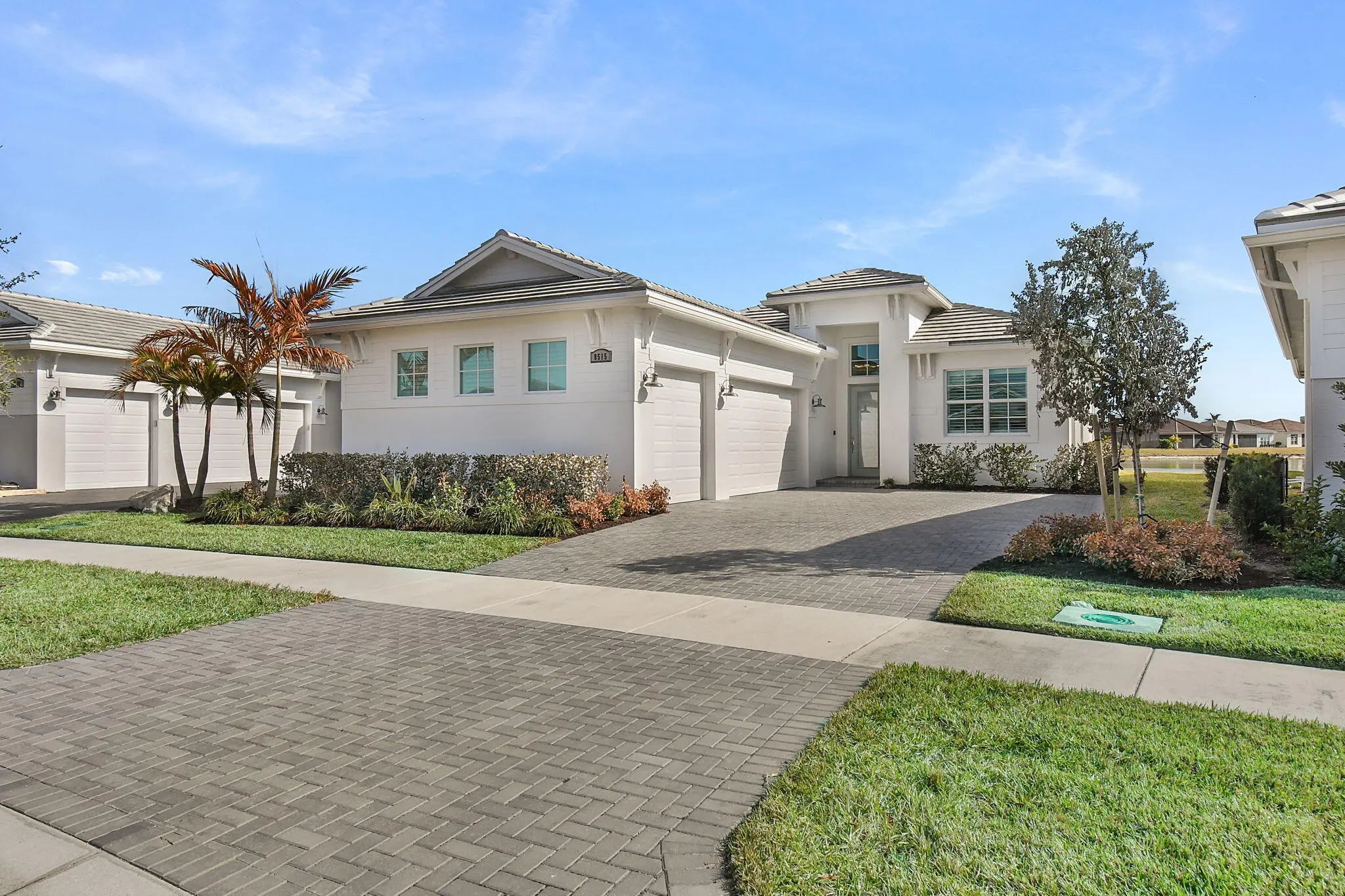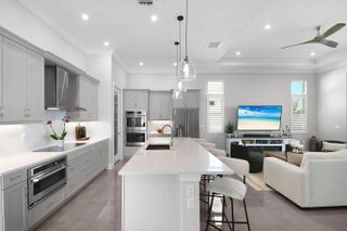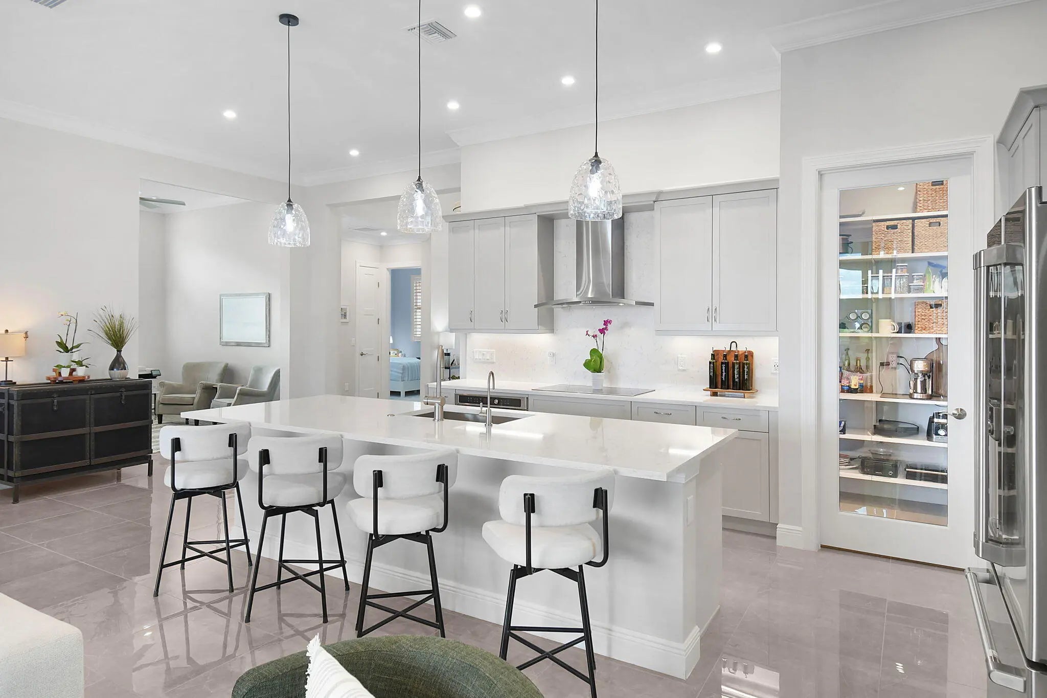 Experience the pinnacle of resort-style living in PGA Village Verano with this highly upgraded 2024 Kolter-built lakefront residence set on a premium wide-water homesite with ideal southern exposure. Designed for the most discerning buyer, this 3-bedroom, 3-bath home with a 3-car garage showcases over $200,000 in builder and post-closing upgrades, offering a move-in-ready luxury lifestyle without the wait to build. From the moment you enter, the home impresses with 24x24 high-gloss tile flooring throughout, upgraded solid-core interior doors, custom moulding, and a stunning Therma-Tru privacy glass entry. The open-concept design is enhanced by oversized sliding glass doors that seamlessly connect indoor and outdoor living while framing breathtaking long lake views and all-day southern light. The chef's kitchen was thoughtfully upgraded with GE Café appliances including a 36" induction cooktop, double ovens, chimney hood, and expanded cabinetry, complemented by full-height backsplash, glass pantry door, designer lighting, and extensive storage, ideal for entertaining and everyday luxury. Spa-inspired baths feature floor-to-ceiling tile, frameless showers, upgraded vanities, and extended mirrors, creating a true retreat feel in every space. Step outside to a dramatically expanded 20x40 screened lanai with pavers overlooking wide water, perfect for sunrise coffee, evening gatherings, and enjoying Florida's indoor-outdoor lifestyle year-round. A premium hot tub, additional exterior lighting, and full-home gutters further enhance comfort and functionality. Additional highlights include: Custom closet systems throughout Plantation shutters in all rooms including garage Designer lighting and ceiling fans Whole-home paint upgrades Reverse osmosis water system Insulated garage with mini-split A/C Tesla charger service + additional dedicated electrical upgrades Added attic flooring and overhead storage Located in PGA Village Verano, residents enjoy a resort-caliber lifestyle with a spectacular clubhouse campus, fitness center, indoor and outdoor pools, tennis, pickleball, social clubs, dining (PGA Village), and year-round activities, all within a gated, beautifully maintained community. This is a rare opportunity to own a nearly new, extensively upgraded waterfront home on one of Verano's most desirable lots, where luxury, lifestyle, and location come together seamlessly.