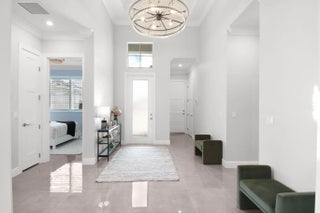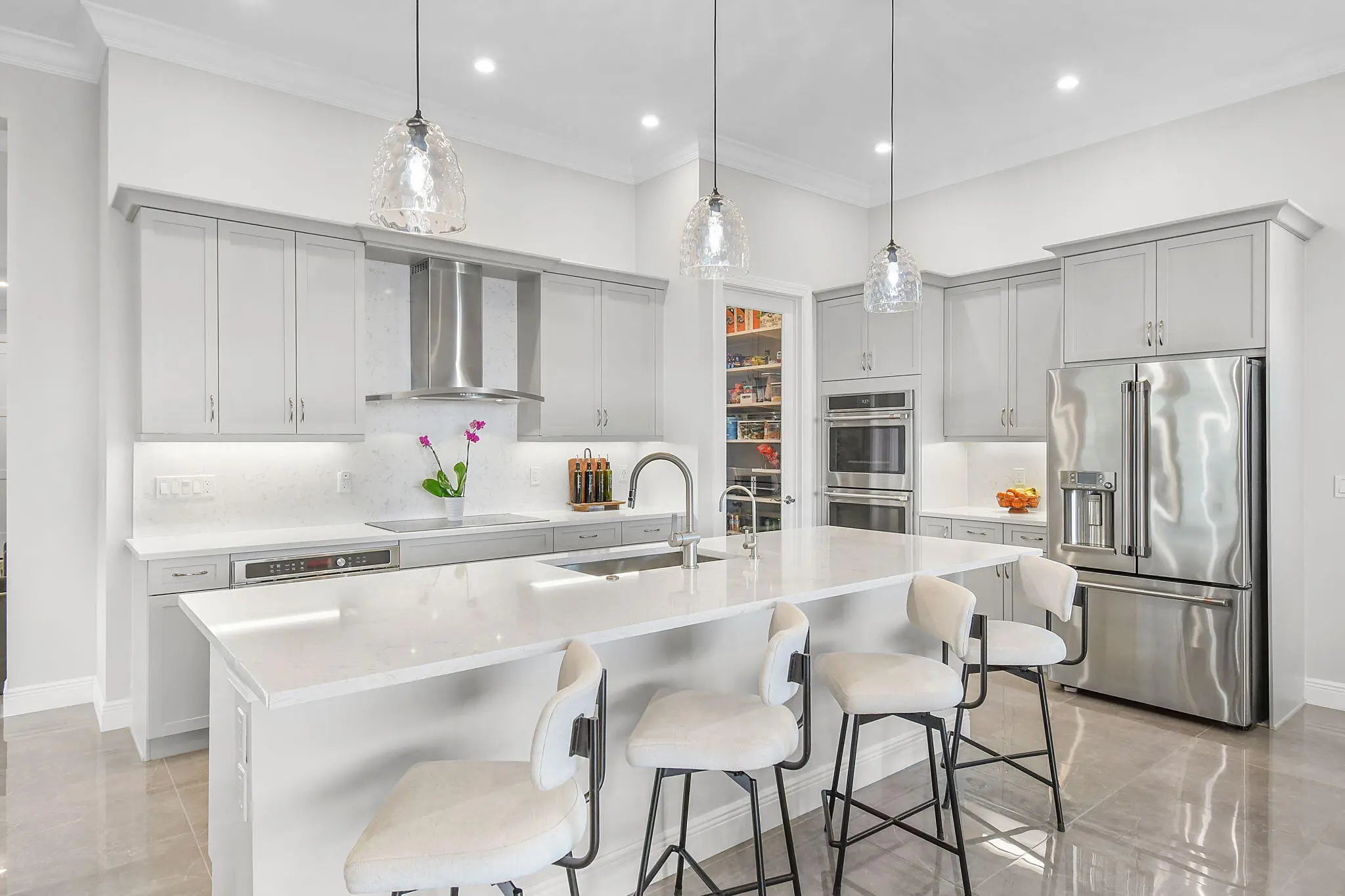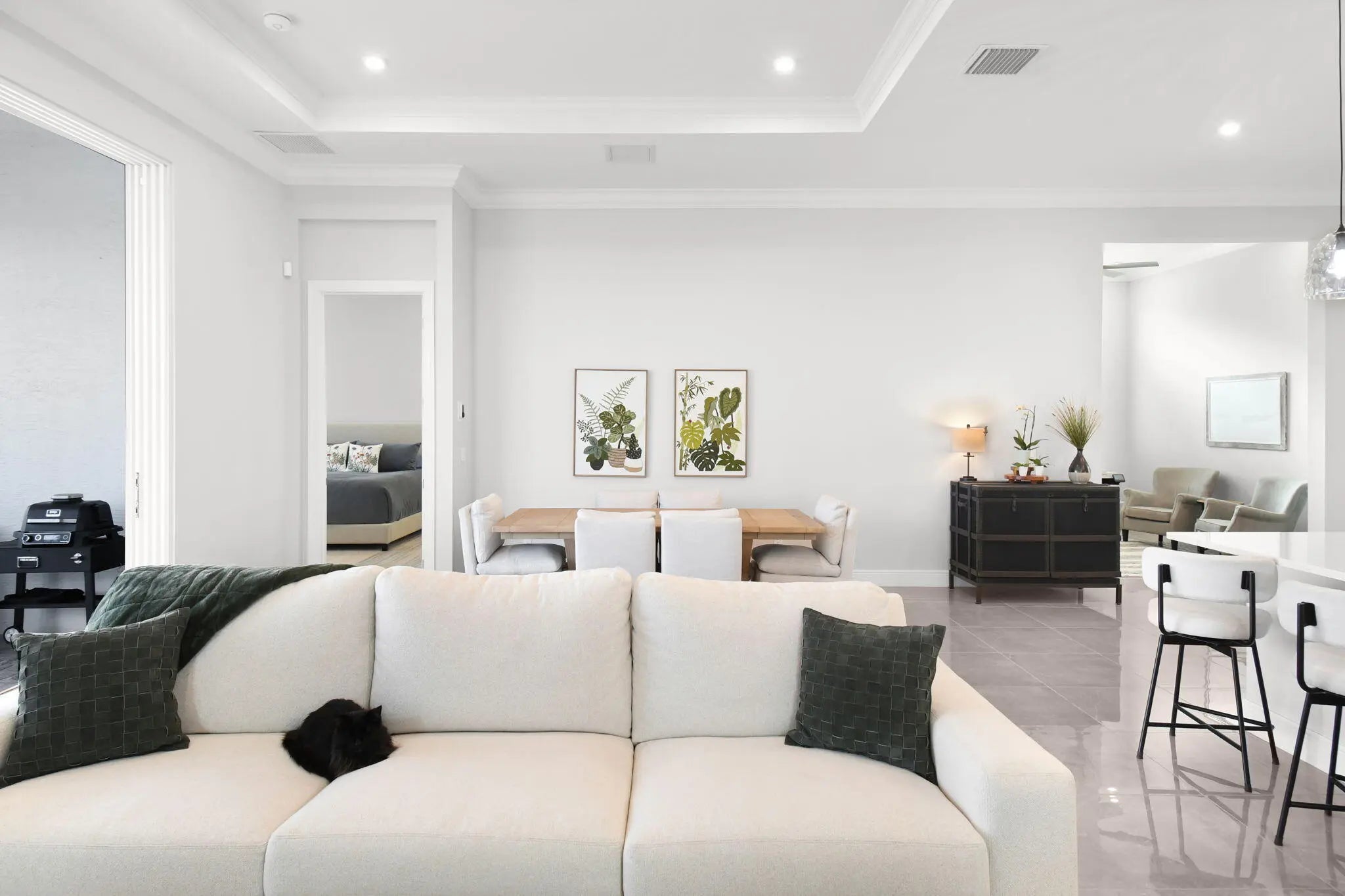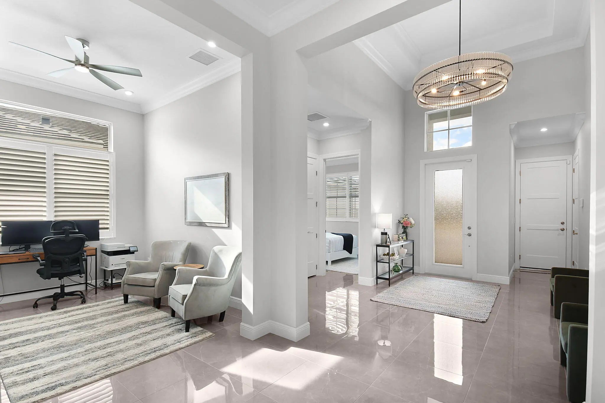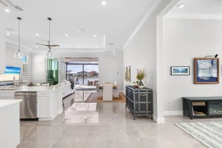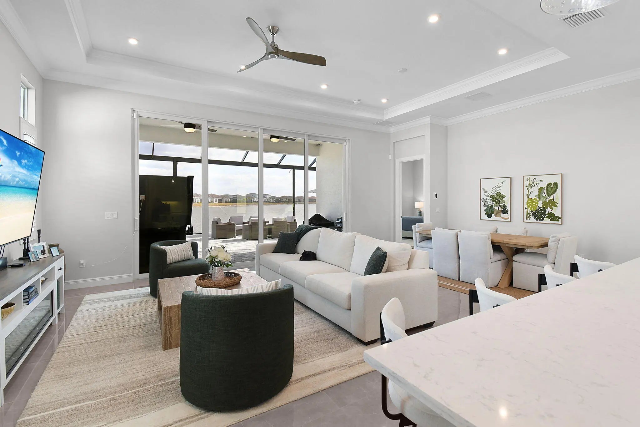 Experience the pinnacle of resort-style living in PGA Village Verano with this highly upgraded 2024 Kolter-built lakefront residence set on a premium wide-water homesite with ideal southern exposure. Designed for the most discerning buyer, this 3-bedroom, 3-bath home with a 3-car garage showcases over $200,000 in builder and post-closing upgrades, offering a move-in-ready luxury lifestyle without the wait to build. From the moment you enter, the home impresses with 24x24 high-gloss tile flooring throughout, upgraded solid-core interior doors, custom moulding, and a stunning Therma-Tru privacy glass entry. The open-concept design is enhanced by oversized sliding glass doors that seamlessly connect indoor and outdoor living while framing breathtaking long lake views and all-day southern light. The chef's kitchen was thoughtfully upgraded with GE Café appliances including a 36" induction cooktop, double ovens, chimney hood, and expanded cabinetry, complemented by full-height backsplash, glass pantry door, designer lighting, and extensive storage, ideal for entertaining and everyday luxury. Spa-inspired baths feature floor-to-ceiling tile, frameless showers, upgraded vanities, and extended mirrors, creating a true retreat feel in every space. Step outside to a dramatically expanded 20x40 screened lanai with pavers overlooking wide water, perfect for sunrise coffee, evening gatherings, and enjoying Florida's indoor-outdoor lifestyle year-round. A premium hot tub, additional exterior lighting, and full-home gutters further enhance comfort and functionality. Additional highlights include: Custom closet systems throughout Plantation shutters in all rooms including garage Designer lighting and ceiling fans Whole-home paint upgrades Reverse osmosis water system Insulated garage with mini-split A/C Tesla charger service + additional dedicated electrical upgrades Added attic flooring and overhead storage Located in PGA Village Verano, residents enjoy a resort-caliber lifestyle with a spectacular clubhouse campus, fitness center, indoor and outdoor pools, tennis, pickleball, social clubs, dining (PGA Village), and year-round activities, all within a gated, beautifully maintained community. This is a rare opportunity to own a nearly new, extensively upgraded waterfront home on one of Verano's most desirable lots, where luxury, lifestyle, and location come together seamlessly.