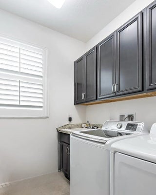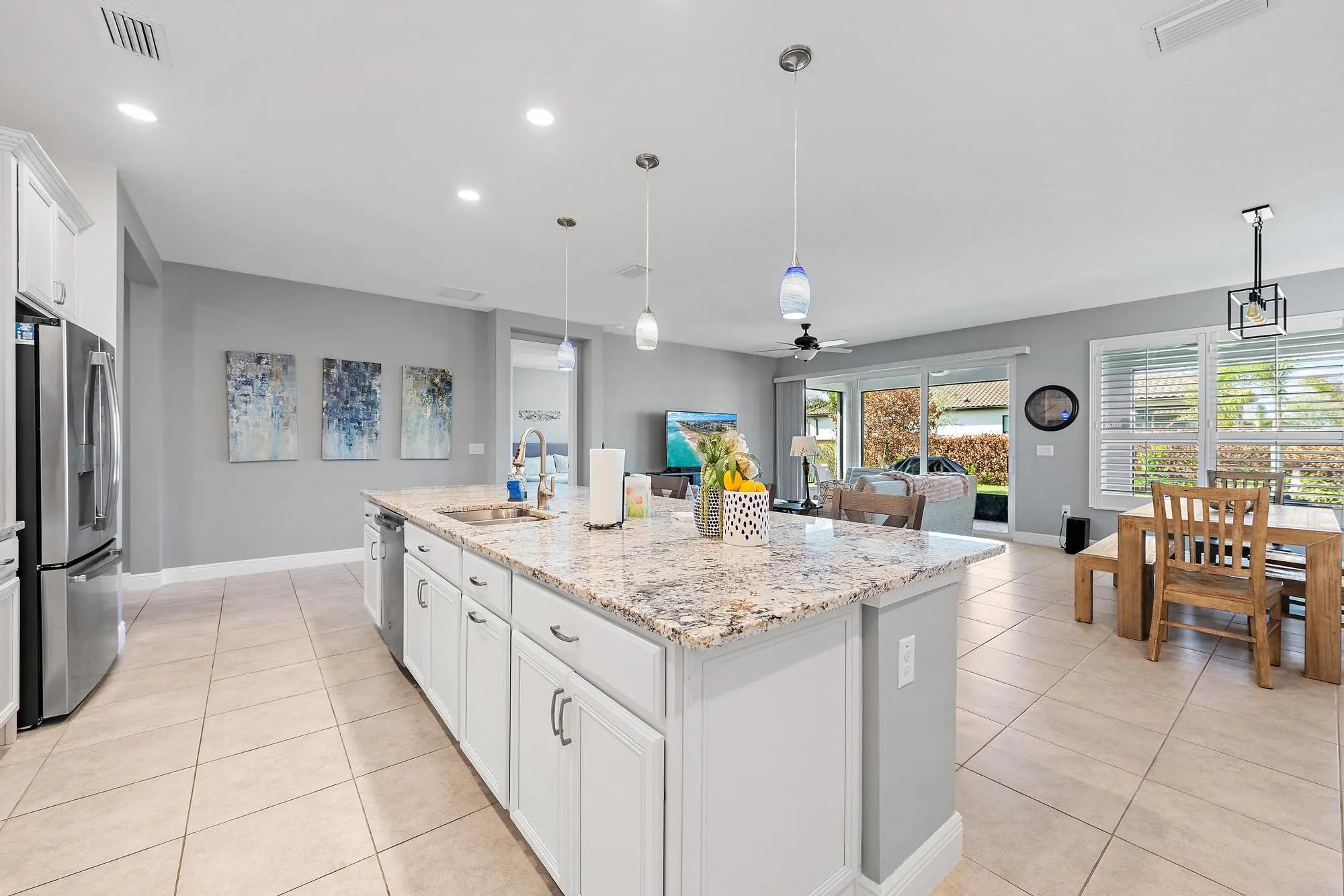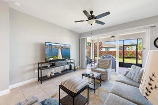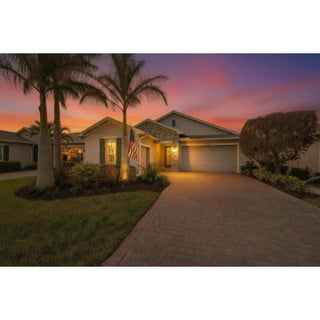 This beautiful CBS construction home was purchased as an investment home and has never been lived in full-time. It features durable impact glass windows and elegant upgraded flooring throughout. The open-concept layout showcases seamless indoor-outdoor living. Tasteful plantation blinds complement the 2 bedroom, 1 den, 2 bath home and master closet has a custom, California finish. Home has a 2 car garage and separate golf cart garage and backyard is a tranquil retreat with natural privacy screening. Buyer to pay ONE-TIME fees for Vitalia Cap Contribution of $2200.00 and Tradition Community Enhancement Fee equal of .97% of the sale price. Vitalia HOA fee: $415.00 per month and Tradition's internet cable & security system are $207.00 per month. The HOA provides an extensive range of amenities including cable, high-speed internet, security alarm system, meticulous lawn care, a modern fitness center, tennis and pickleball courts, a sparkling pool, and much more. Conveniently located near Cleveland Clinic, vibrant Tradition Square shopping and dining, and just about 35 minutes to the pristine beach.
