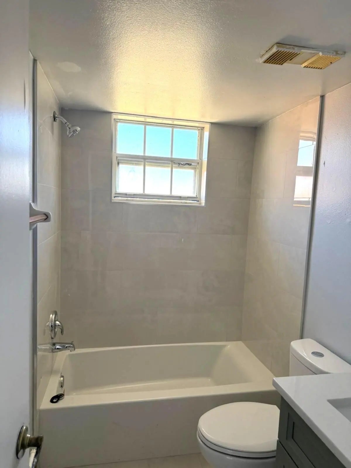 Fully remodeled condo unit. Featuring new stainless steel appliances, tiled floors throughout, and beautifully updated modern bathrooms. Primary bath has walk in shower. Hall bath has combo tub/shower. Stackable washer/dryer AS-IS. Water, sewer, and trash included. Enjoy a well-maintained community with a sparkling pool and manicured grounds. Conveniently located near shopping, hospitals, and major roadways. Please review attached Rules & Regulations. Association approval and interview required. Cats and small birds (up to 15 lbs) allowed. $50 refundable deposit to Association for Pool tags & key