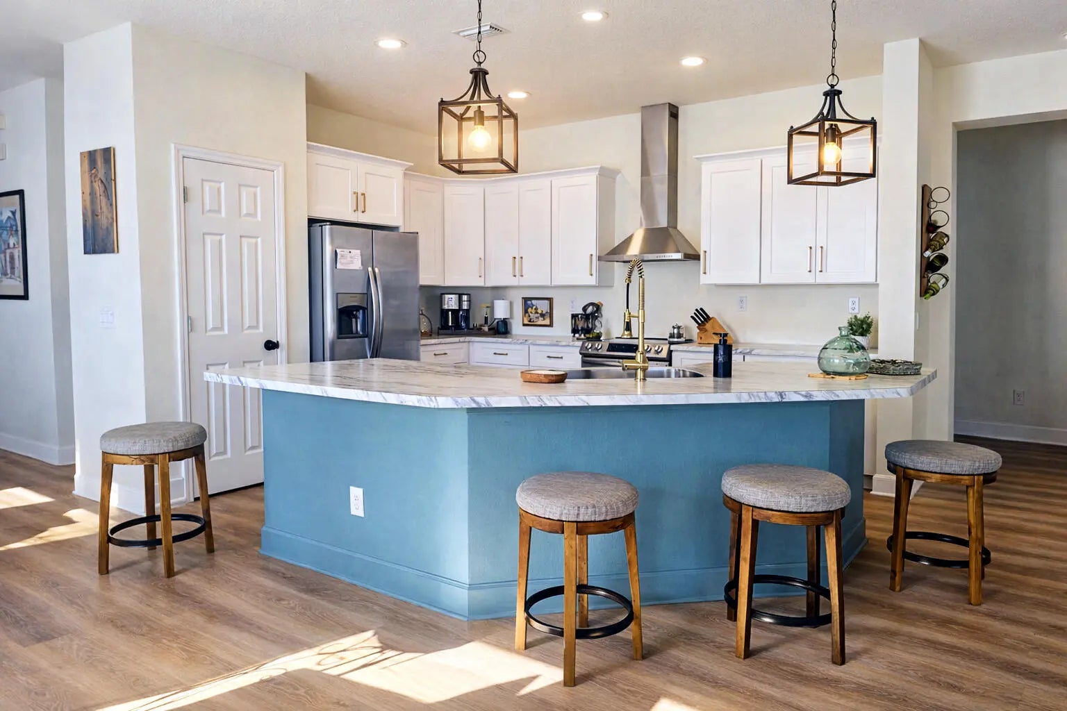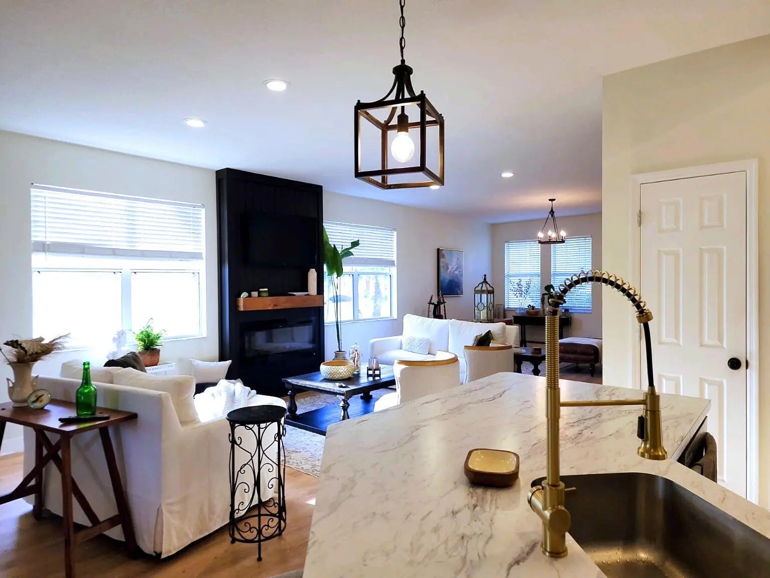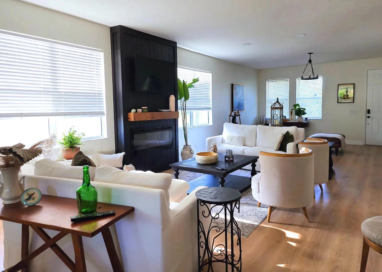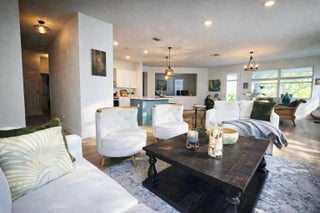 Nestled inside the highly desirable Torino area, this well maintained 3 bed, 2 bath home with a versatile open-air flex room that provides potential for a 4th, is move in ready. With its timeless, neutral finishes, the home upgrades include a central ac system less than 5 years old, luxury plank flooring with a warm wood appearance throughout, recessed lighting, newly installed shaker kitchen cabinets with custom hardware (2025), classic vanities, mirrors, lighting and flooring in both bathrooms for a classic and polished look, and ceiling fans in all bedrooms for a comfortable night's sleep. Within close driving distance of Florida's beautiful beaches, this bright and airy home with an abundance of natural light, invites you in with its open-concept living space that includes the focal point of the home, a stylish electric fireplace for all your entertaining! Step outside to a screened in lanai and a backyard that provides plenty of privacy and beautiful views of a peaceful greenway that attracts beautiful Florida birdlife - an ideal spot for morning coffee and sunrise views. The community's low $41 monthly HOA keeps costs down while still maintaining a well kept neighborhood. 2006 roof has been proactively inspected with a positive report; documentation available.