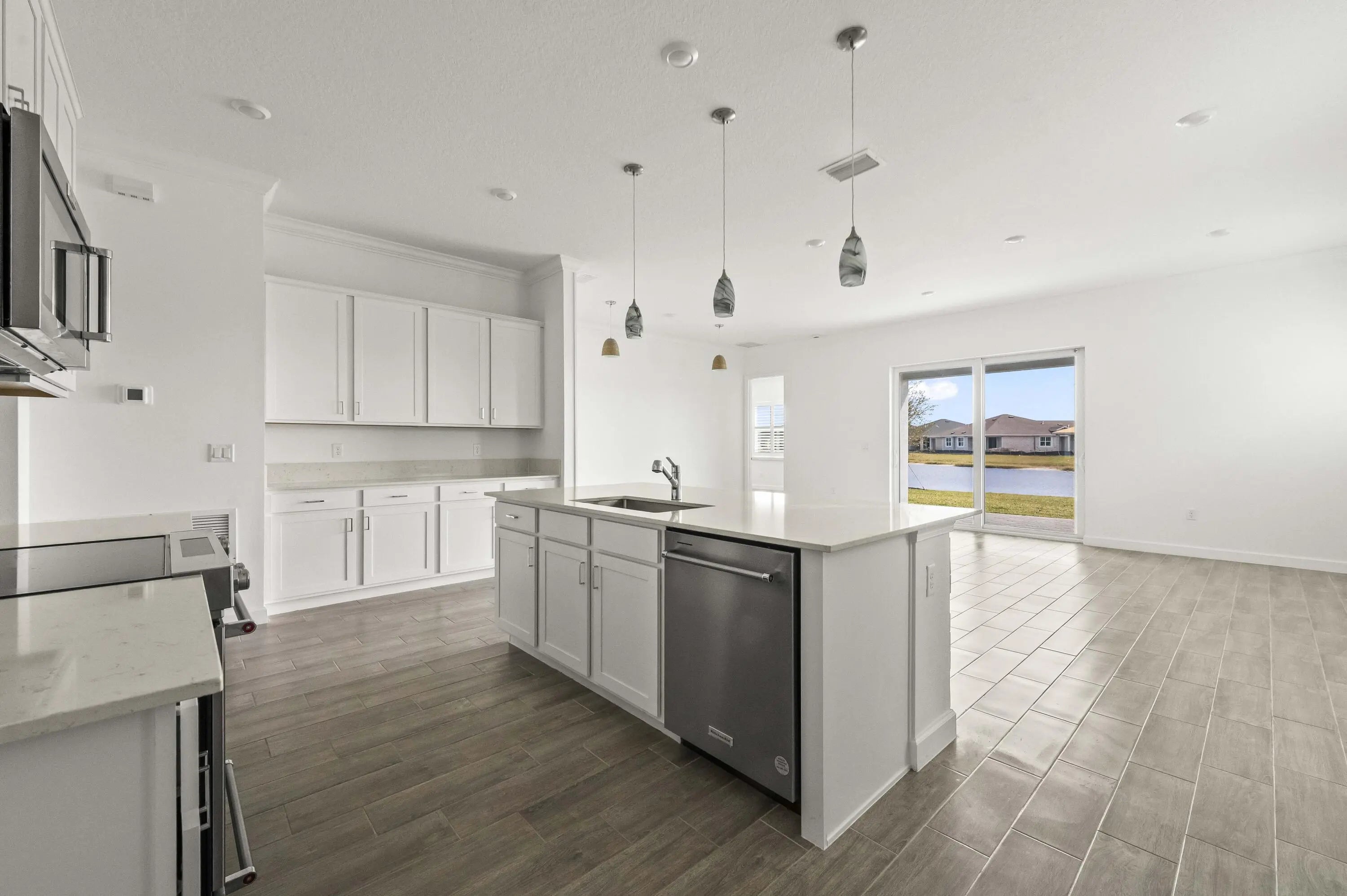 Experience the pinnacle of modern luxury in this stunning, 2024-built ''Key Largo'' model, situated within the highly coveted, 55+ community of Veranda Preserve. This pristine single-story residence boasts over 2,300 square feet of meticulously designed living space, featuring three spacious bedrooms--each with its own private en-suite bathroom--plus a versatile den and an additional powder room. From the moment you step through the grand foyer, you are greeted by volume ceilings and elegant ceramic tile flooring that flows seamlessly throughout the open-concept floor plan. At the heart of the home lies a chef's kitchen, anchored by a massive cook island with sleek countertops and premium stainless steel appliances. This culinary masterpiece overlooks the expansive Great Room and dining area, creating an inviting atmosphere for both intimate family dinners and large-scale entertaining. The glass windows and doors flood the interior with natural light, offering serene views of the lush preserve and neighborhood greenery. The split-bedroom layout ensures maximum privacy, with the opulent owner's suite serving as a secluded sanctuary complete with dual walk-in closets and a spa-inspired bathroom. Step outside to your private covered patio, the perfect spot for sipping your morning coffee while enjoying the tranquil Florida breeze. The lot offers plenty of room allowing you to create your own backyard oasis. Beyond your front door, Veranda Preserve provides a resort-style lifestyle tailored for active adults, featuring a world-class clubhouse, shimmering pool, pickleball and tennis courts, a fitness center, and a vibrant social calendar. With the added security of a gated entrance and the convenience of included lawn maintenance, this home offers the effortless, high-end lifestyle you've been searching for.