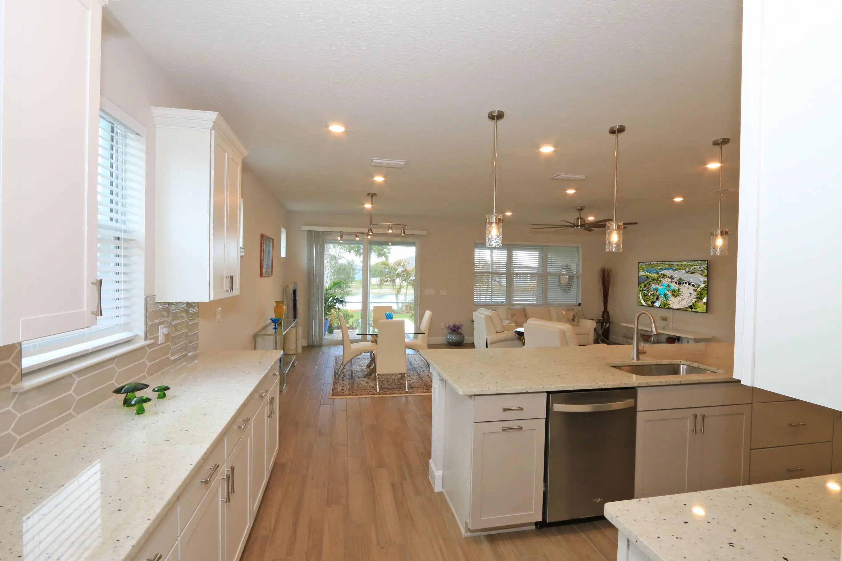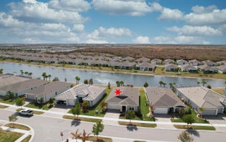 Gorgeous 2023-built Palmary model on a serene water lot! This light and airy home features a wide-open floor plan designed for comfortable living and entertaining. The spacious kitchen offers a large island, abundant soft-close cabinetry with pull-out shelving, and an oversized walk-in pantry. Tile flooring runs throughout the entire home for a clean, cohesive look. A versatile flex room with French doors is perfect for a home office, den, or hobby space. The beautiful owner's suite includes a large walk-in closet, dual sinks, and an easy step-in shower. Enjoy peaceful water views and the benefits of newer construction in this thoughtfully designed home. Active 55+ community with 2 clubhouses, 2 pools, pickleball,tennis, bocce, putting green.