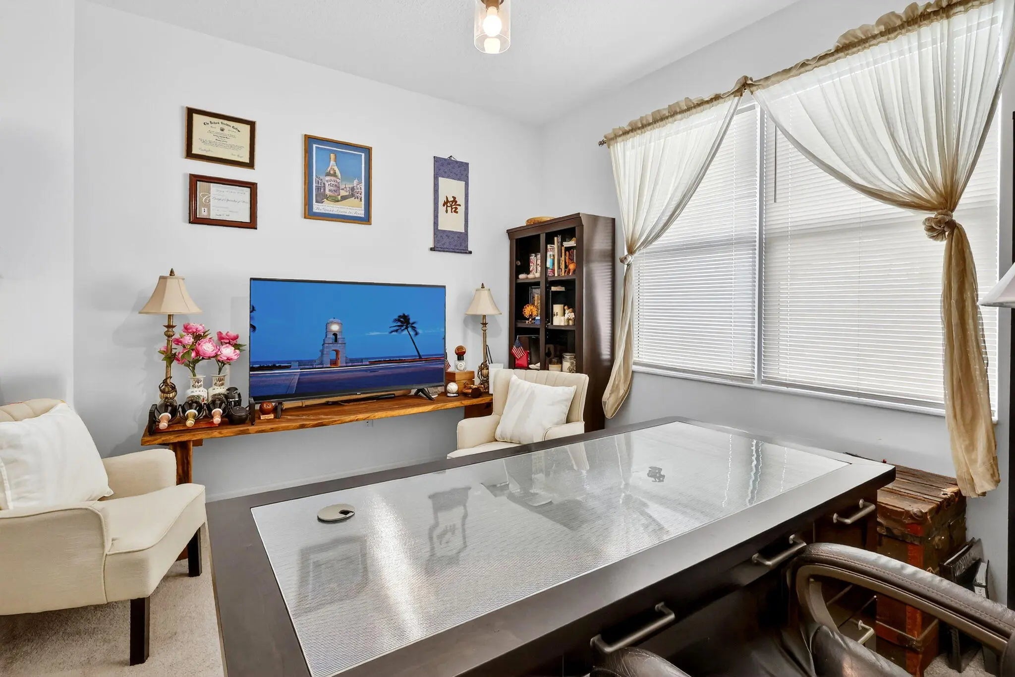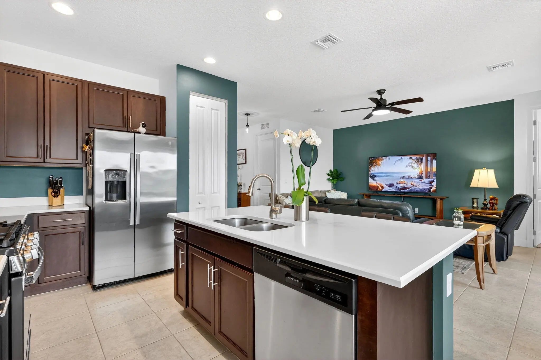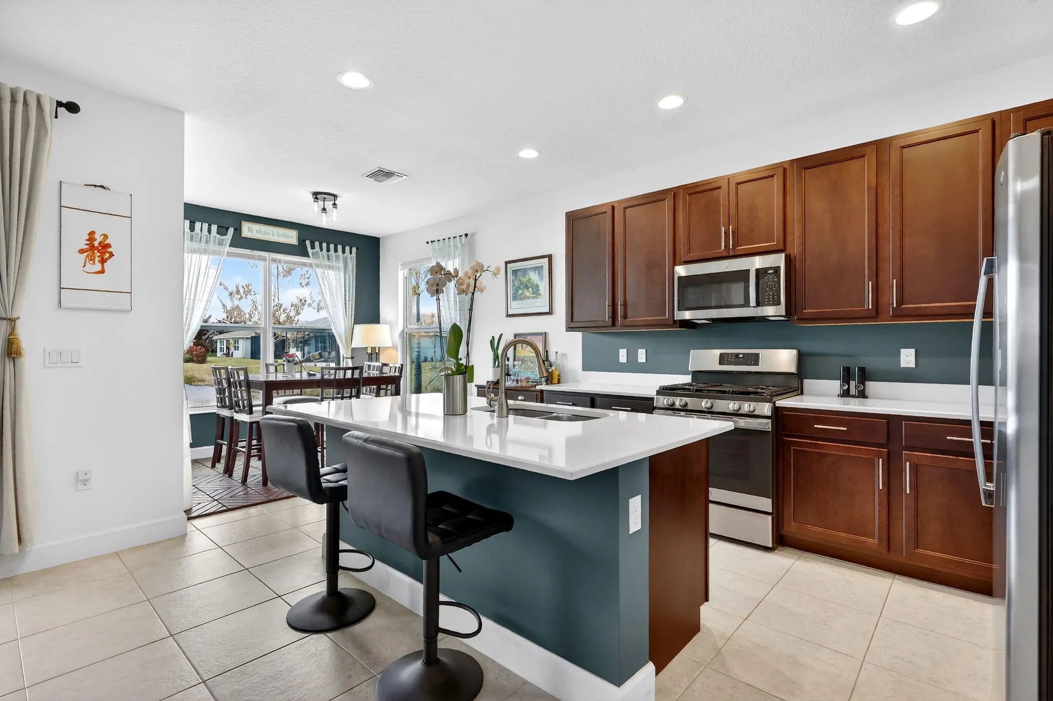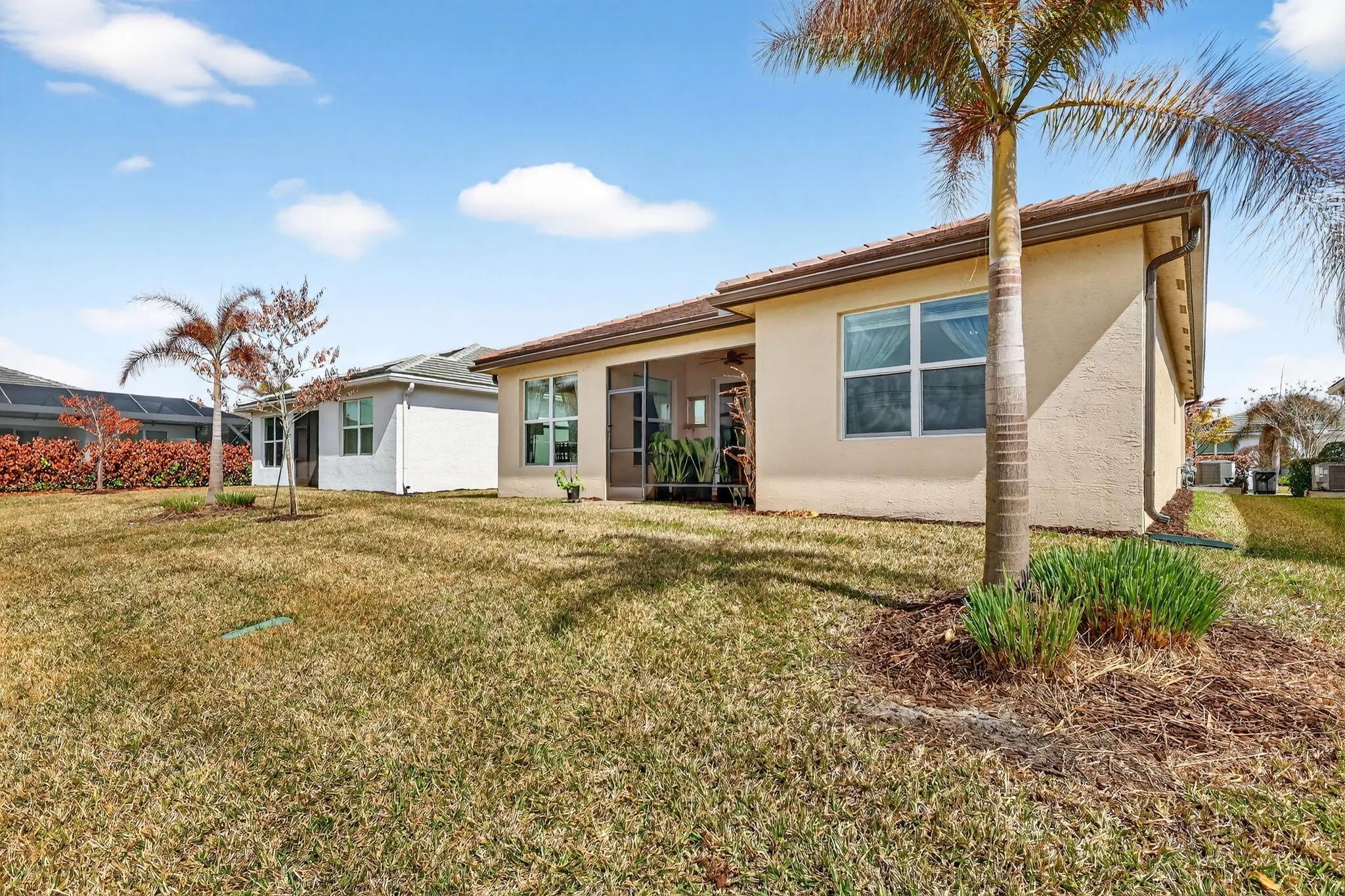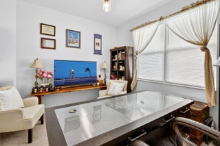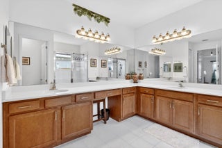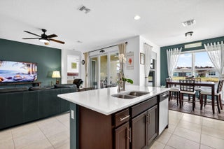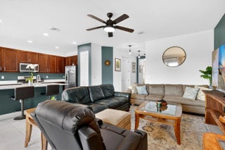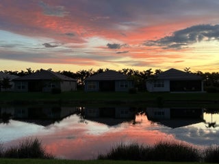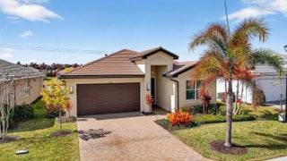 For sale in GL Homes' 55+ Valencia Grove at Riverland, this lightly lived-in Ibis model offers 1,599 square feet under air with 2 bedrooms plus a den and a peaceful water view. Just three years old, this thoughtfully maintained home features a west-facing patio perfectly positioned to capture breathtaking sunsets over the lake. Carpeted bedrooms provide comfort and warmth, while tile flooring throughout the main living areas offers easy maintenance and a clean, cohesive look. The accent walls are painted with the color Unreal Teal by Behr (which is also scuff resistant) and brings warmth and a calming elegance to the main living spaces, creating an inviting atmosphere from the moment you enter. The enhancements in this home are both practical and high-quality. The garage features an epoxy-coated floor, a $6,000 insulated garage door upgrade for improved temperature control, an upgraded garage door opener, and a dedicated electrical outlet for electric vehicle or golf cart charging. The driveway pavers have been sealed, and additional entry walkway pavers enhance curb appeal. Inside, you'll find an upgraded dishwasher and kitchen faucet, a new hot water heater, additional lighting and ceiling fans in the living room, bedrooms, den, and patio, custom window treatments, whole-house gutters, and tasteful accent painting in the living room and kitchen. Valencia Grove is part of GL Homes' premier Riverland community in Port St. Lucie, offering a resort-style lifestyle with a magnificent clubhouse, full-service restaurant and bar, resort and resistance pools, state-of-the-art fitness center, card and poker rooms, arts and crafts studios, and a full social calendar of clubs and events. Residents enjoy access to the Riverland Sports & Racquet Club, which features 53 pickleball courts, plus 15 tennis courts, as well as scenic walking and biking trails via the Paseo throughout the community. Located just minutes from shopping, dining, and the Cleveland Clinic hospital, and approximately 30 minutes from beautiful Treasure Coast beaches, boating, golf, and spring training at Clover Field, this home combines tranquil waterfront living with vibrant community amenities and convenient access to everything the area has to offer.