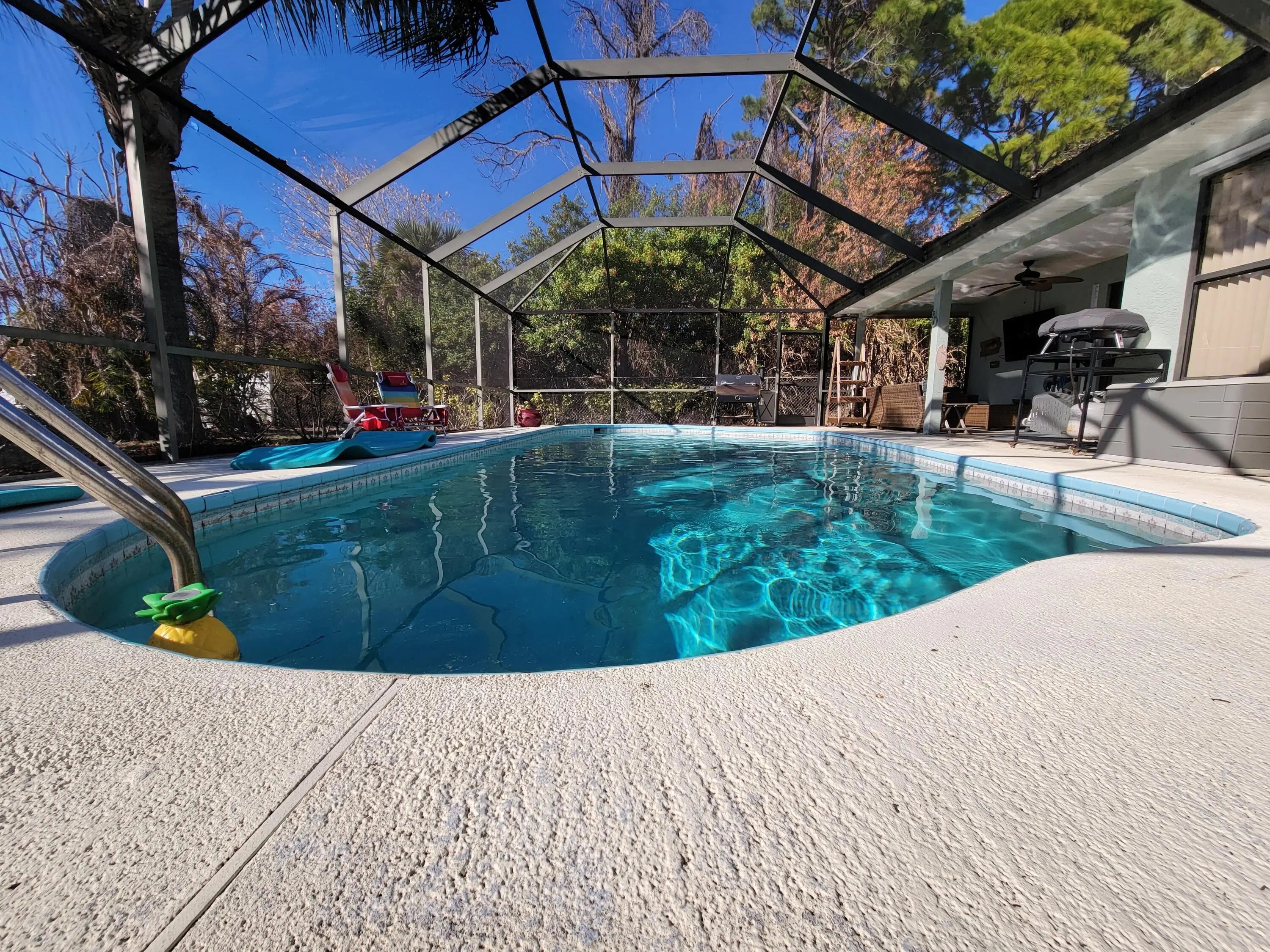 This 3/2/2 POOL home with a good sized 2 car garage is located on a cul-de-sac and is ready to be your new home. There is a living room, dining area, and a family room with a fireplace that overlooks the pool. The kitchen has granite & stainless steel appliances with barstool seating. The primary bedroom has a private bathroom. 2nd bathroom has a dual vanity with granite counter tops. There is tile throughout main livings areas and carpet in bedrooms. Home has been upgraded over the last several years including; air conditioning, hot water heater, and pool pump. Pool is @ 9' at the deep end, very rare. Yard is fenced and has a shed in the backyard. The adjacent lot is also for sale and may be purchased for $139,900. Sold AS-IS ONLY. SUBJECT TO ERRORS, OMISSIONS, CHANGE AND WITHDRAWAL.