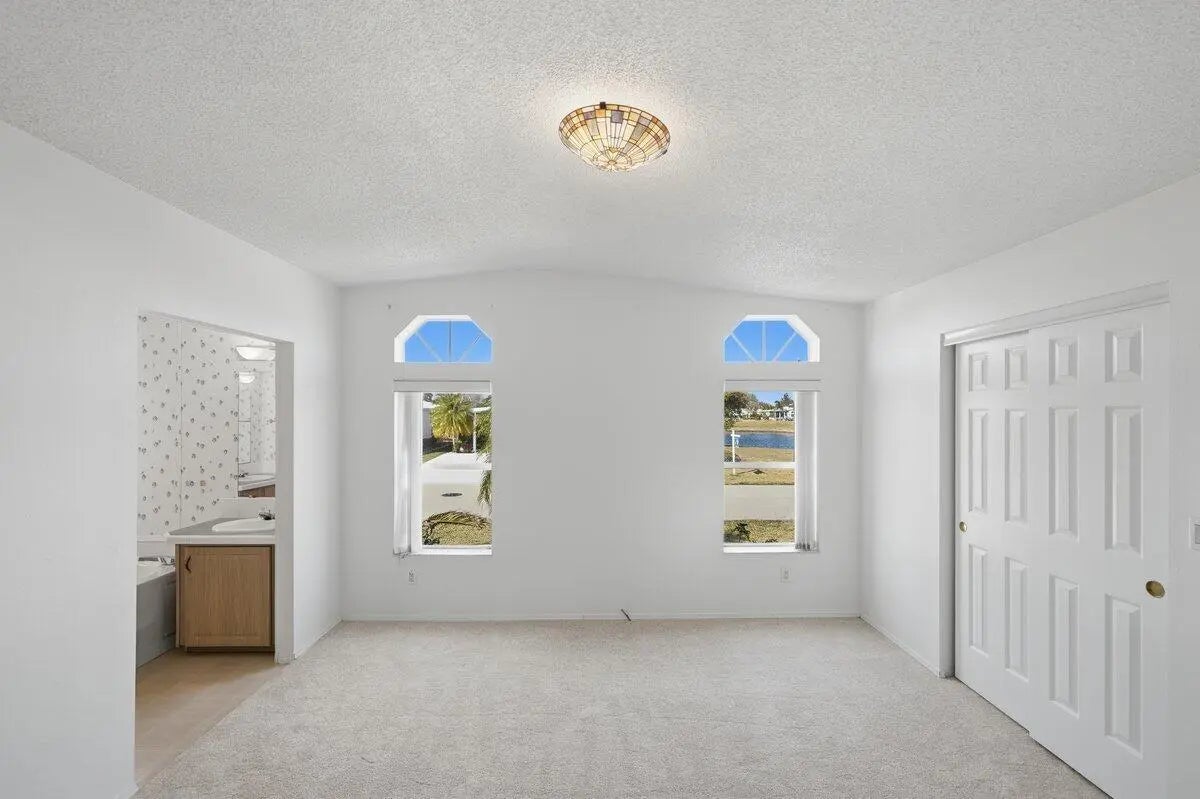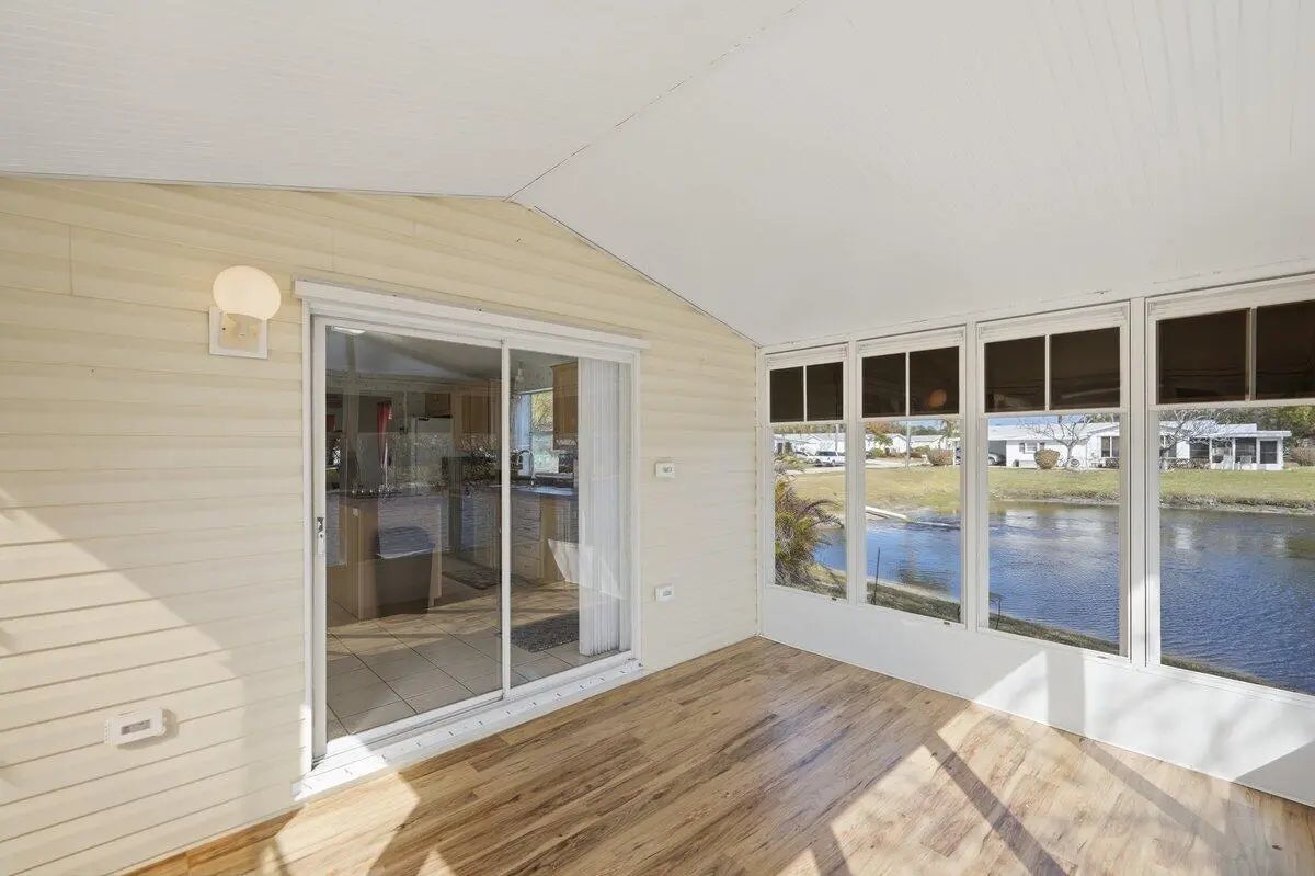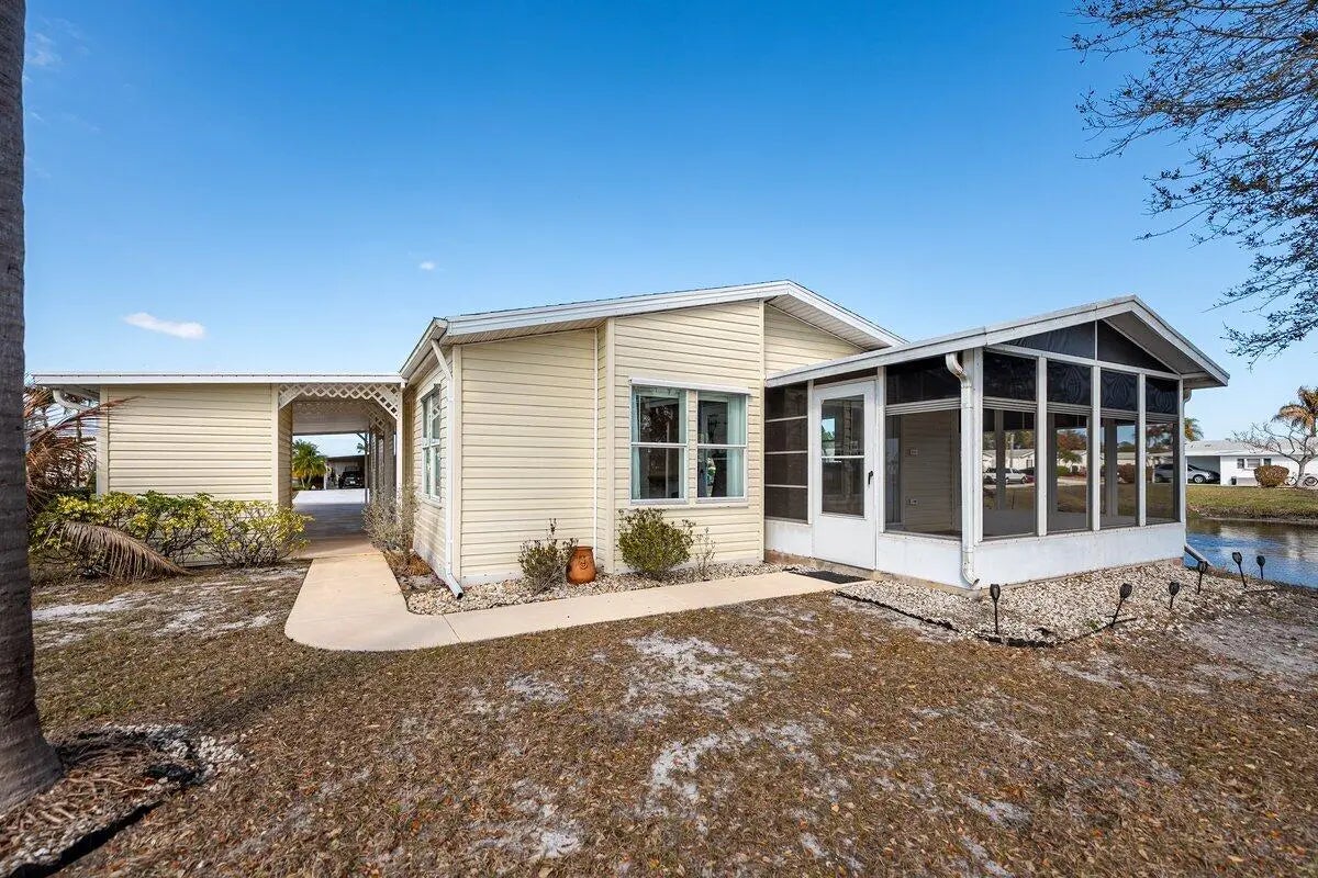 PANORAMIC WATERFRONT! Fantastic Location! Enjoy breathtaking sunset water views from your own Florida home! This 2-bed, 2-bath home features all new interior paint, new carpet, 2018-Roof, 2018-AC, 2019-Hot Water Heater, New Hickory Laminate Flooring on the Lanai and in the Family Room and Hurricane Shutters for storm protection. Great for entertaining. Storage Room for pool floats and tools. Don't miss your opportunity to own a slice of Florida in the highly desired Savanna Club. Experience the best of 55+ living with resort style amenities featuring staffed clubhouses, fitness center, 3 swimming pools, tennis, pickle ball, 10,000sf theater, 18 hole golf course, restaurant, etc. Take time to relax or stay busy with the community social calendar. Call today for your private tour!
