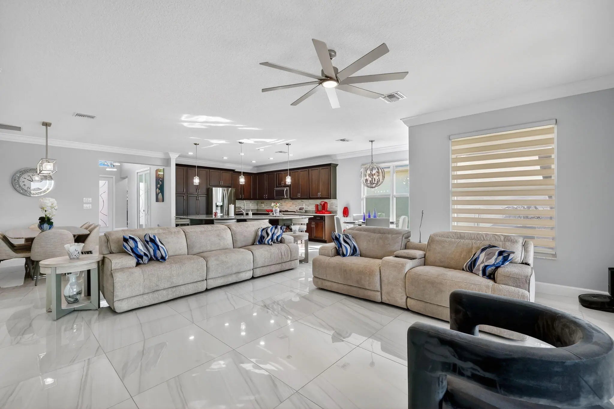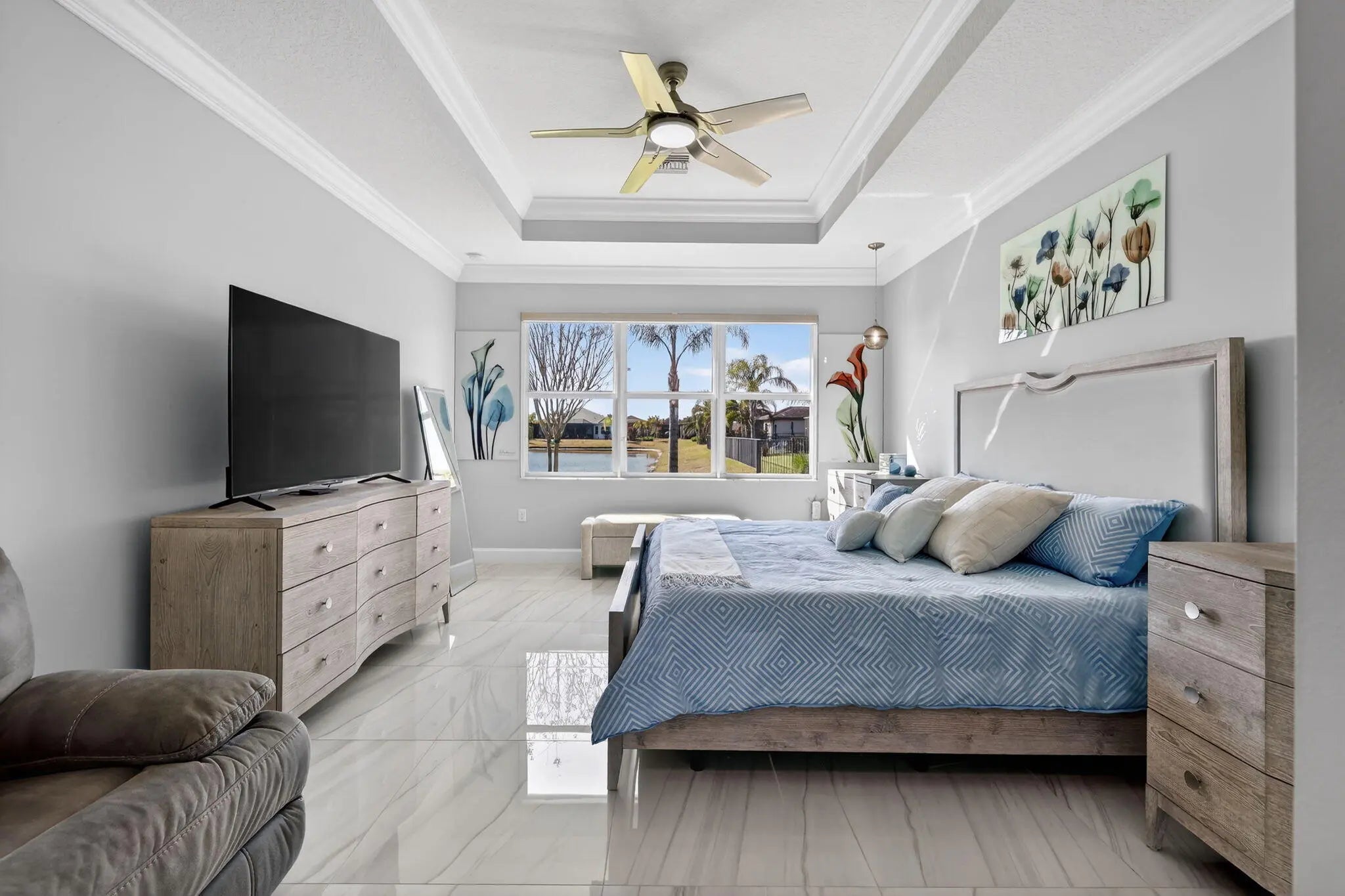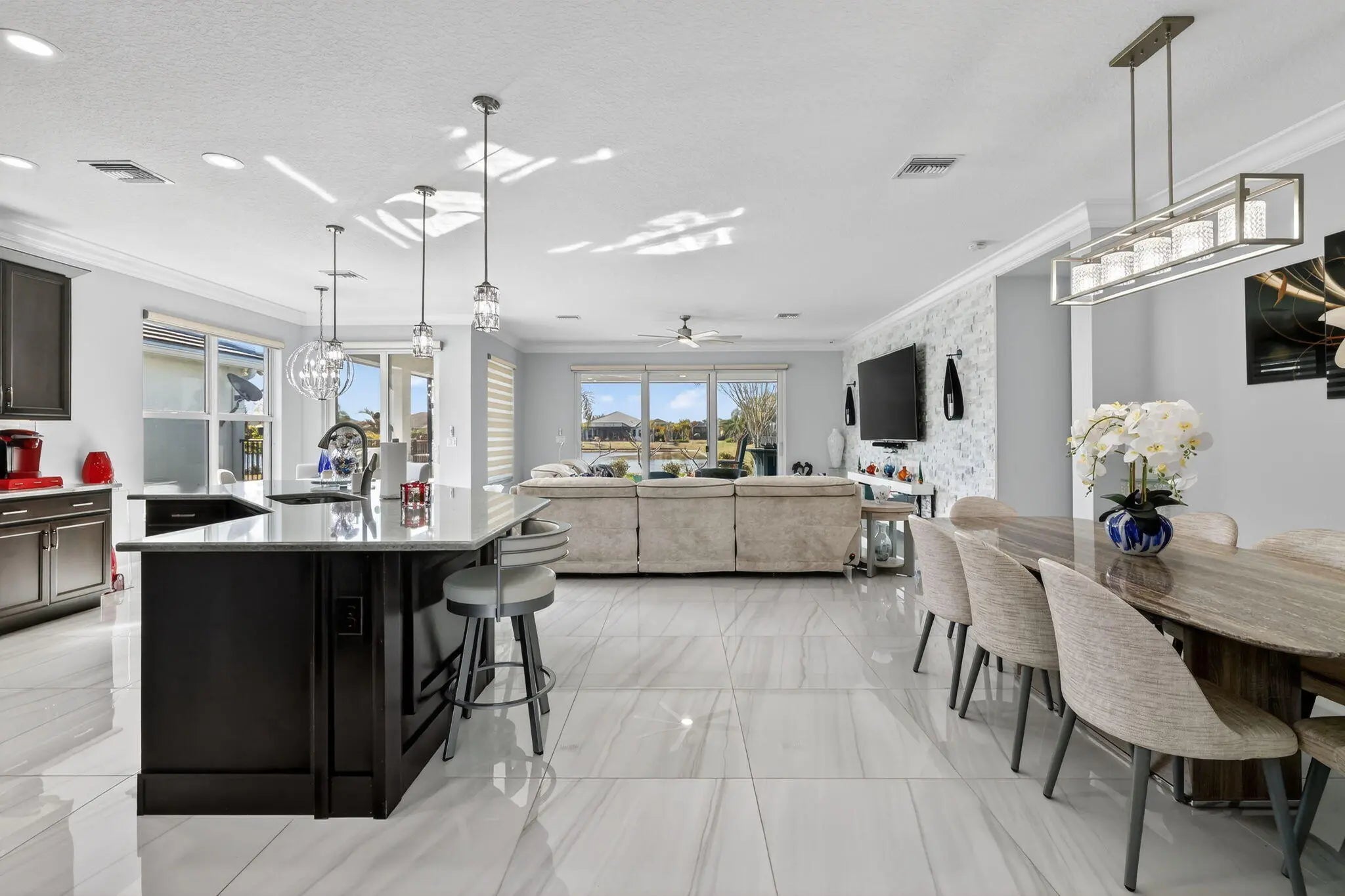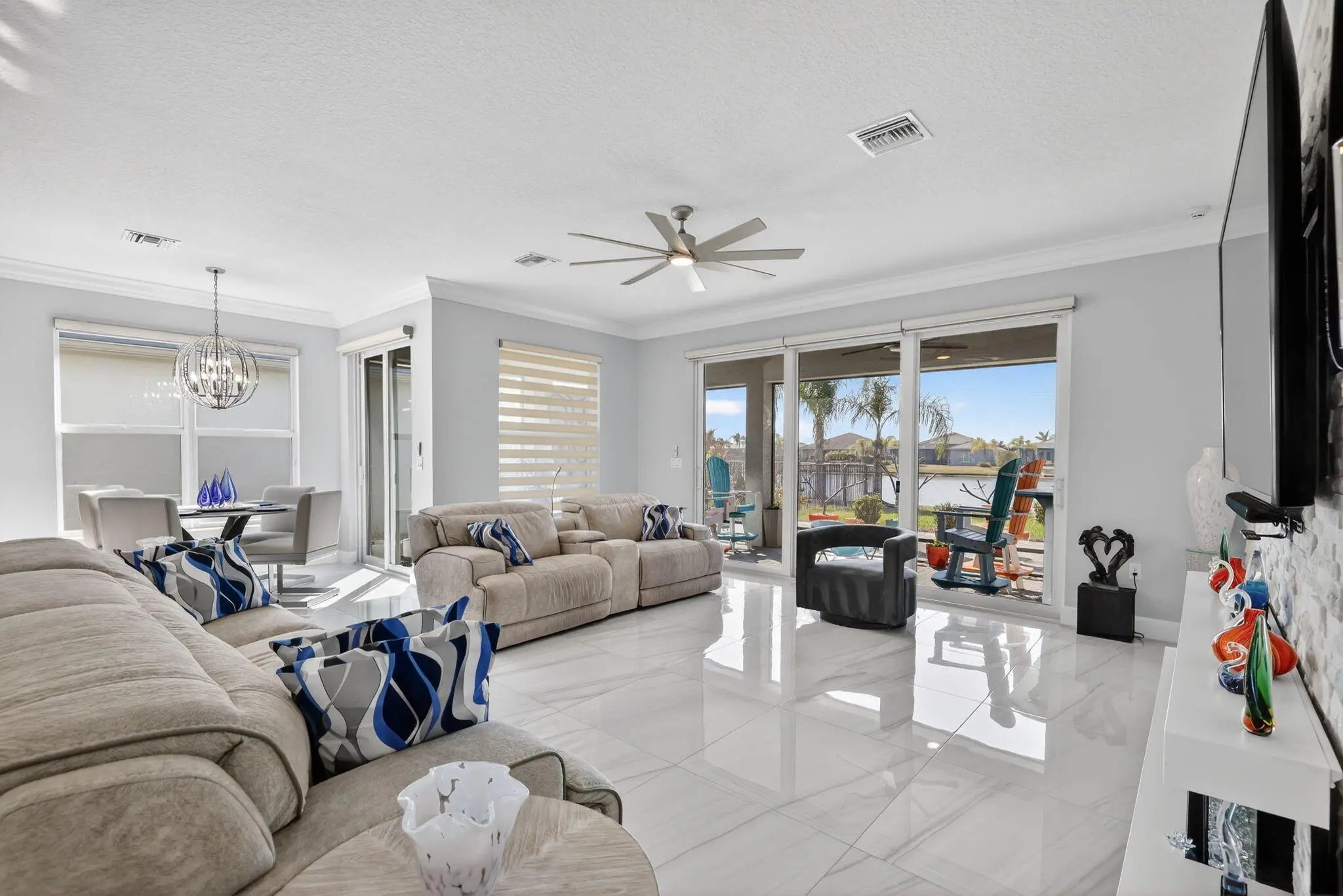 Spectacular Lakefront Bimini Model in Valencia Cay -- Designer Upgrades, Flexible Living & Rare Golf Cart Garage Discover the perfect blend of elegance, comfort, and Florida lifestyle in this spectacular lakefront Bimini Model located in the highly sought after Valencia Cay at Riverland. Set on a premium lakefront lot, this home offers serene water views that enhance everyday living and create a stunning backdrop for entertaining. Elevated Interiors & Thoughtful Design, this beautifully upgraded home showcases refined finishes and modern style throughout: Upgraded tile flooring in every room -- no carpeting , Crown molding adding architectural detail and sophistication. Designer lighting that enhances the ambiance of each space, Upgraded closets for smart, efficient storage. A beautifully appointed upgraded kitchen with premium finishes and exceptional functionality, upgraded custom laundry room The Bimini's versatile layout features 3 bedrooms plus a den, easily used as an optional 4th bedroom, home office, or creative space. Stunning Lakefront Setting, The premium lakefront homesite with room for a pool. Peaceful water views from the main living areas. Expanded Garage Space A standout feature for Riverland living, 2 car garage PLUS a dedicated golf cart garage, offering convenience and extra storage for an active lifestyle. Live the Valencia Cay Lifestyle, Residents enjoy access to the full Riverland experience, including Resort style clubhouse and pools, Sports & Racquet Club with pickleball, tennis, and more, Arts & Culture Center, Scenic Paseo pathways connecting every amenity, A vibrant, active 55+ community with endless clubs and activities. This lakefront Bimini Model delivers designer upgrades, flexible living spaces, and a premium lot a rare opportunity in one of Riverland's most desirable neighborhoods.