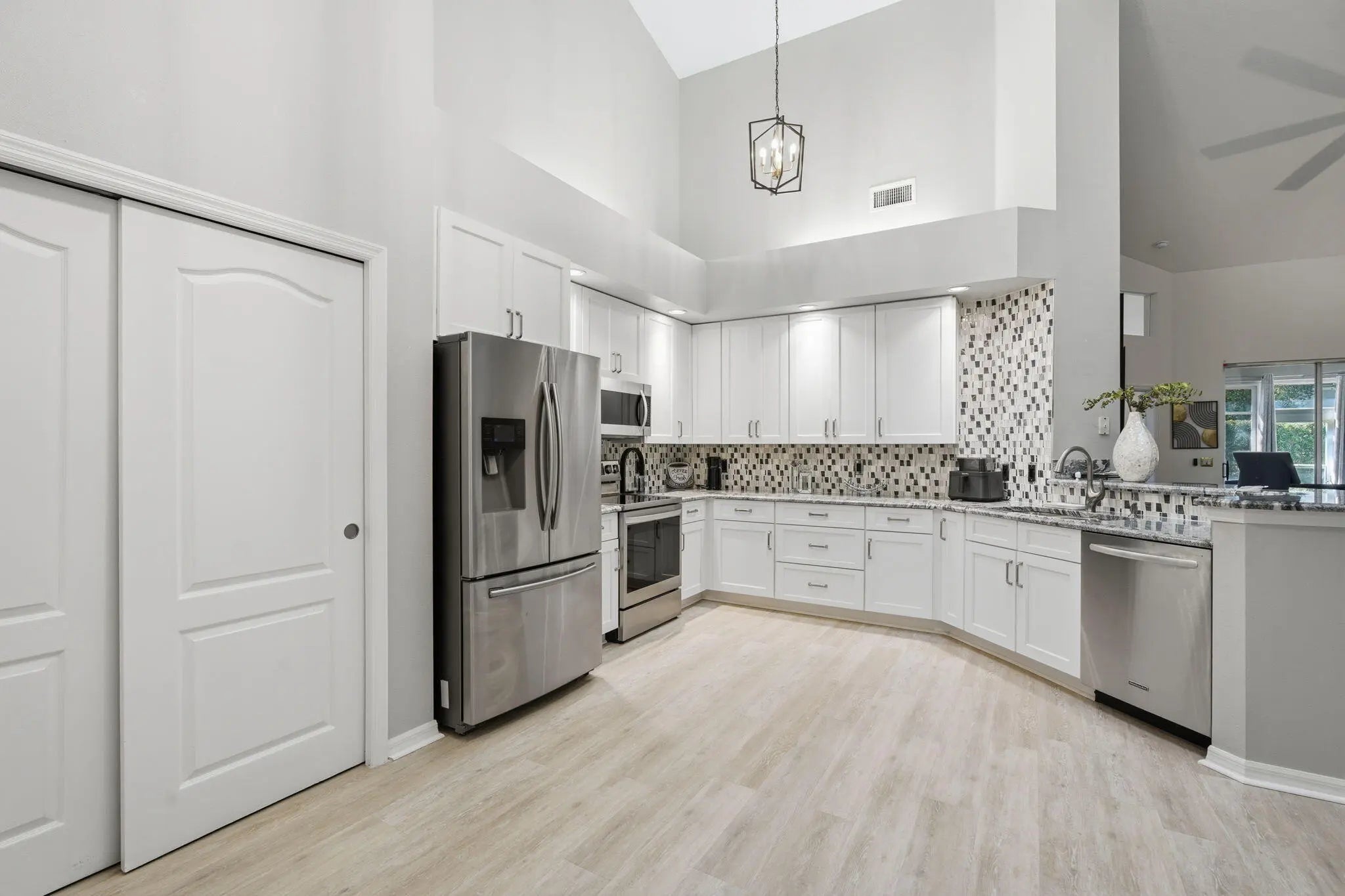 Charming 1-story townhome located in the gated community of Lake Charles in St. Lucie West. This home features 2 bedrooms, 2 bathrooms, a 2-car garage, vaulted ceilings, plantation shutters, and a bright open layout. The kitchen offers granite countertops, stainless steel appliances, and 42'' cabinets. Enjoy a private enclosed lanai, screened front patio, newer A/C, and extended paver area with garden views. Lake Charles provides a pool, tennis, pickleball, playground, and a full recreation center close to shopping, dining, and I-95.