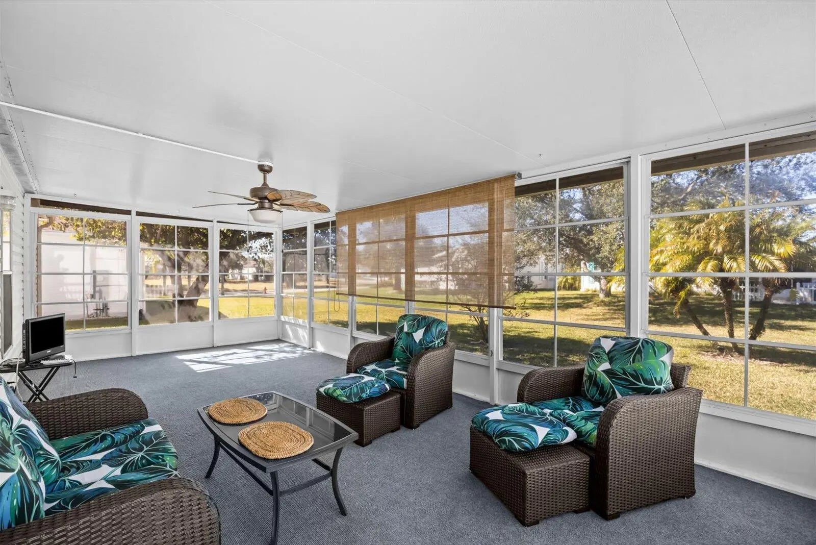Two car garage home with a brand new roof (2026). AC (2023). Immaculate home features updated granite counters throughout and newer kitchen cabinetry. Primary bedroom is large enough for a king-sized bed and a entire wall length closet big enough for him and her! You can also relax on the screened front porch or sit on the back lanai with windows and screens OR sit in the sunshine on the outdoor open air patio...so many outdoor choices with this move in ready home. Updates are complete! The low HOA includes cable, internet, trash and access to Savanna Clubs 3 pools, exercise areas, and other common amenities like pickleball, tennis and more. The community also has an on-site restaurant, an 18-hole golf course, a 10,000 sqft. theater that doubles as a hurricane shelter.