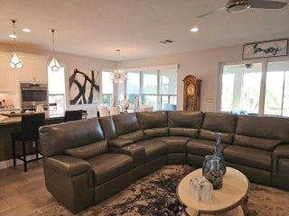This is truly a MUST-SEE LAKEFRONT luxury home which shows like a model its a home you would see in the finest home magazines! The spacious floor plan has it all including a beautiful kitchen with white cabinetry, a 102' x 54 inch center island (with beautiful wood trim below) and stylish granite adoring the entire kitchen. Upgraded stainless steel (S/S) appliances include a double oven, microwave, cook-top gas range and an upgraded double door refrigerator. Everything is easy with soft close cabinetry doors and multiple ''pull outs''. The dining area is spacious and sports multiple windows including an additional window not shown on the plan for a light and bright interior overlooking the patio and garden and lake views! The Great Room is also grand with an open feel...(conti and plenty of space; the design is perfect and it will flow directly out to the sliding doors to the nicely sized covered and screened patio area; perfect for entertaining, relaxing and additional dining. The master suite is chock full of surprises including a separate entry, a spacious bedroom area, and a walk-way leading to the master bath with a central chandelier for that feel of luxury, a built-in seating and mirrored area and multiple closets including a beautiful walk-in! The master bath features two separate sink and cabinet areas with, quartz surfaces, for each to enjoy the dual sinks, a beautiful shower with frameless glass and stunning tile work! The home boasts a large interior entry way with two beautiful chandeliers, an office ideal for catching up on your work (with custom designed "Barn-Doors") and you will find a nicely sized guest bedroom adjacent to the second bath which also features frameless shower doors, quarts countertops and BEAUTIFUL shower tile! The utility room includes cabinetry for extra storage and a sink and even the garage has protective flooring! The entire home is protected with Impact glass, has the beauty of tile-throughout the interior flooring while most of the home enjoys 9-foot-high volume ceilings. When you drive up...you will be delighted with the style of the home which also boasts the finish of custom exterior front stonework, lush landscaping with stone boarders, upgraded plantings (front and rear), Tile roofing, a screen initial entry and then a beautiful glass entry door! Arriving home after an event at the club house...or anywhere else? Drive into your spacious garage and enter the home and enjoy the convenience of the O/E (Owners Entry) on the interior of the home to place down your belongings...another great option this home features! H.O.A. fee's includes Internet and Cable television, Lawn Care, Ground Care including Mulching, Alarm Monitoring, & use of all club house facilities! The BEAUTIFULLY remodeled club house with a state of art Exercise Center (with NO COST exercise classes offered multiple times a week), Card Rooms, Billiards, Resort styled pool and spa, Tennis, Pickle-Ball, Large Putting Green and MUCH MORE! By the way...the Club house boasts many events...year-round and as per the owner, your new neighbors are delightful!