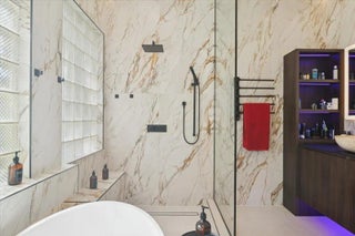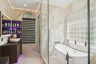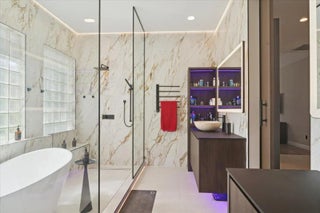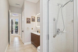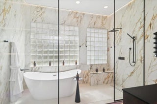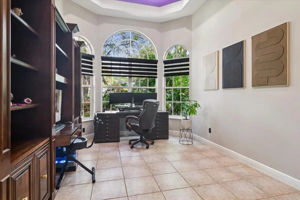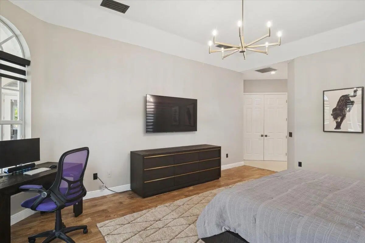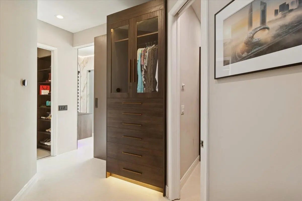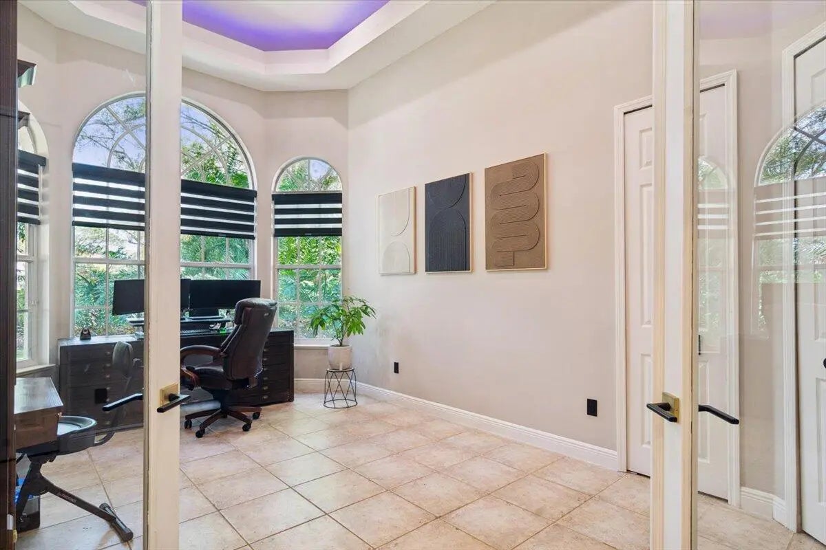 Experience elevated modern living in this fully designer-renovated 5-bedroom, 4.5-bath residence (5th bedroom currently configured as a private office) with a 3-car garage and exceptional indoor-outdoor entertaining spaces. No detail has been overlooked in this extensively upgraded smart home featuring LED lighting throughout interior and exterior spaces, Home Assistant integration, and 2025 Google Nest smart thermostats. The 2024 custom-designed chef's kitchen is a true showpiece, anchored by a dramatic 16' x 8.5' L-shaped island finished in Pompeii Diamante quartz. Custom Gola handleless cabinetry includes touch-latch access, soft-close drawers, aluminum-frame glass doors, Blum Aventos Servo-Drive lift systems, motorized drawer systems, and an integrated motorized waste pull-out. Premium appliances include a Miele 36" induction cooktop with 36" downdraft ventilation, Miele Pure Line wall oven, Miele speed oven, and a Viking 42" built-in refrigerator. Additional highlights include a Kraus Bellucci workstation sink, under-cabinet LED lighting, RH Raindrop pendants, dual pantry storage areas, and pop-up island outlets with USB A/C and induction charging. The primary suite offers a true luxury retreat with tray ceilings, a custom LED feature wall, wood-look tile flooring, sliding glass doors with pool access, and custom walk-in closets with integrated LED lighting and motion sensors. The fully renovated 2025 primary bath showcases 48" porcelain tile, a freestanding 67" soaking tub, dual travertine sinks, floating LED-lit vanity cabinetry, matte black Kohler designer faucets, and an oversized walk-in shower featuring frameless 120" glass panels, rain head and multifunction shower system, thermostatic precision valve, low-profile LED-lit curb, and illuminated surround. A smart bidet toilet with heated seat, auto open/close, auto flush, and drying system completes the spa experience. The living room centers around a stunning 14' floor-to-ceiling porcelain slab fireplace feature wall and custom 85" media wall with integrated ambient lighting. Bose in-ceiling speakers and dedicated indoor/outdoor audio zones enhance the entertainment experience. A newly completed 2025 custom bar area features quartz countertops, contemporary black slat panel detailing, a two-drawer refrigerator, and LED accent lighting. Outdoor living is equally impressive with a 2023 saltwater pool system, 2023 heater replacement, and 2025 pump. The fully equipped outdoor kitchen includes a 2025 Kenyon 30" electric grill, dual electric burners, stainless storage drawers, and sink. LED patio downlighting, driveway lighting, and new ceiling fans enhance the covered entertaining space. Additional upgrades include brand new Zebra shades throughout (2026), USB A/C outlets in all bedrooms, custom LED-lit laundry room cabinetry with Blum Aventos hardware, and a 2024 Samsung AI washer and dryer. This is a rare opportunity to own a meticulously upgraded, technology-forward luxury home designed for both elevated everyday living and large-scale entertaining