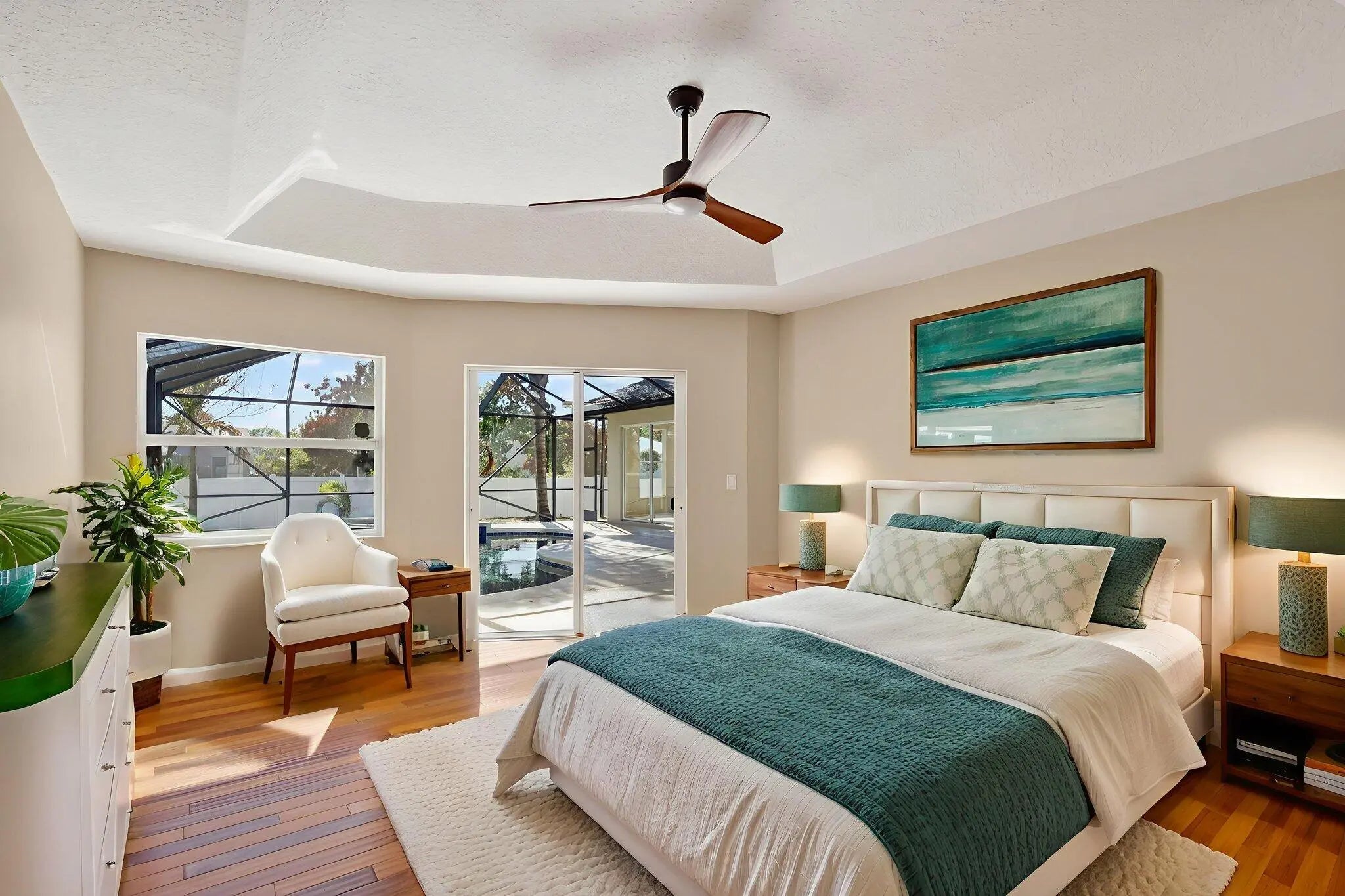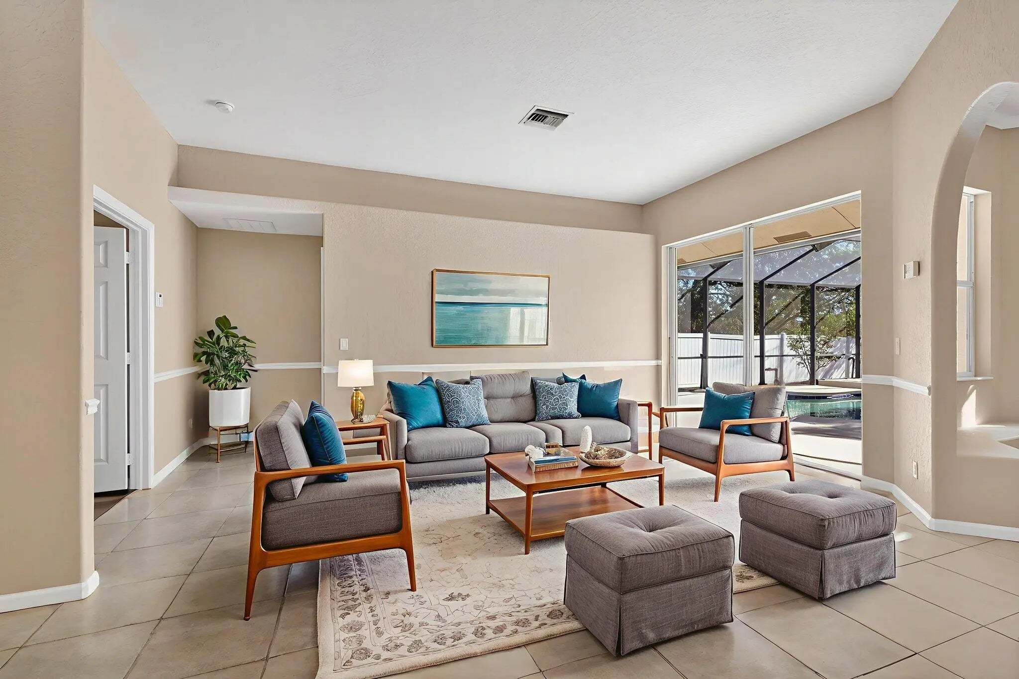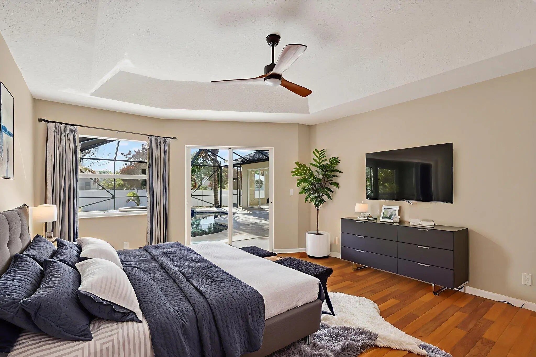 Stunning 5BR/3BA Pool Home with 2-Car Garage in Desirable Southbend Area! Welcome to your dream home - luxury, comfort, and modern living! Gorgeous tile flooring in all main living areas. Formal living & dining rooms + large open-concept family room. Split floor plan for privacy. Modern kitchen featuring granite countertops, new SS appliances & oversized island - perfect for entertaining. Master suite w/2 walk-in closets and a spa-inspired bathroom including a walk-through shower, garden tub & dual vanities. Two walls of sliding glass doors fill the home with natural light and open to a spacious screened lanai featuring a sparkling pool & relaxing hot tub. Fenced yard with palm and fruit trees offers total privacy and tranquility.