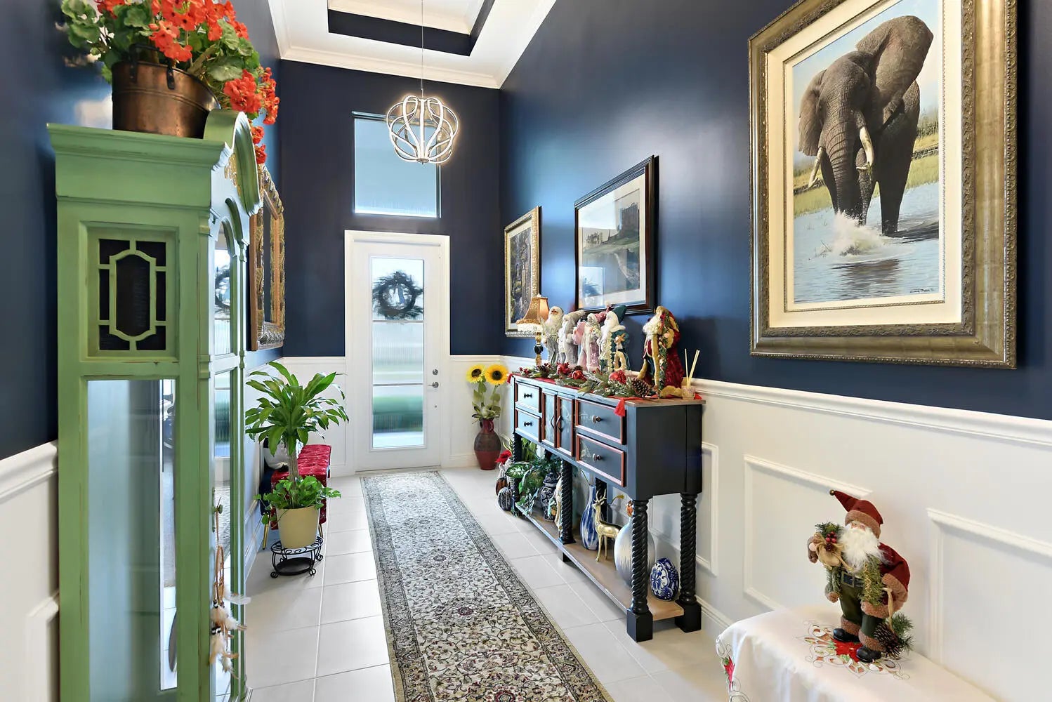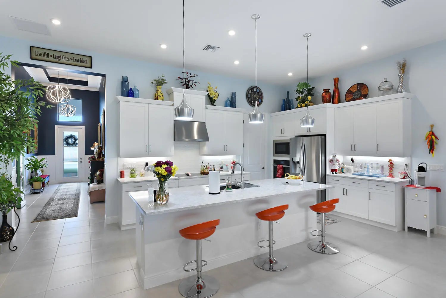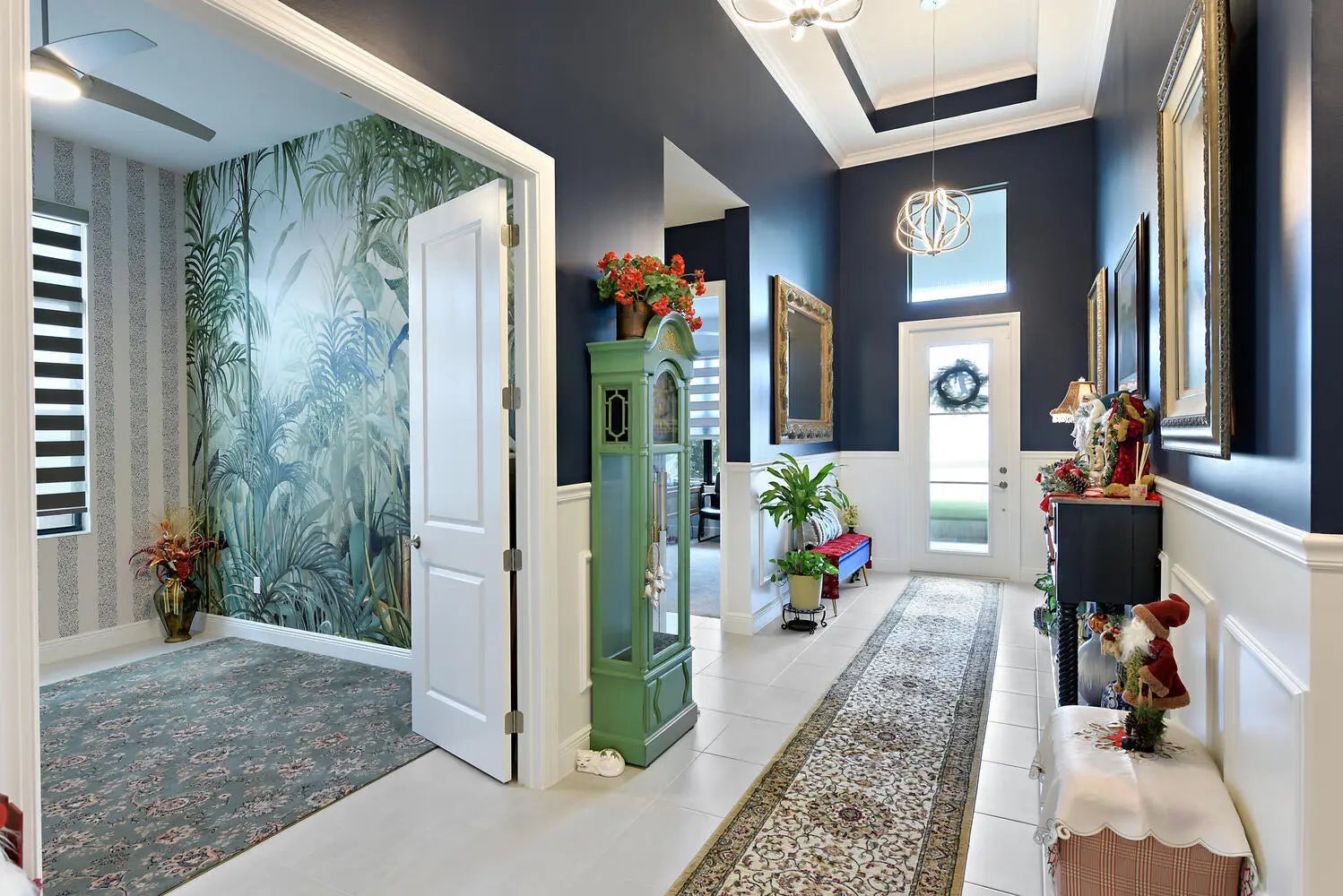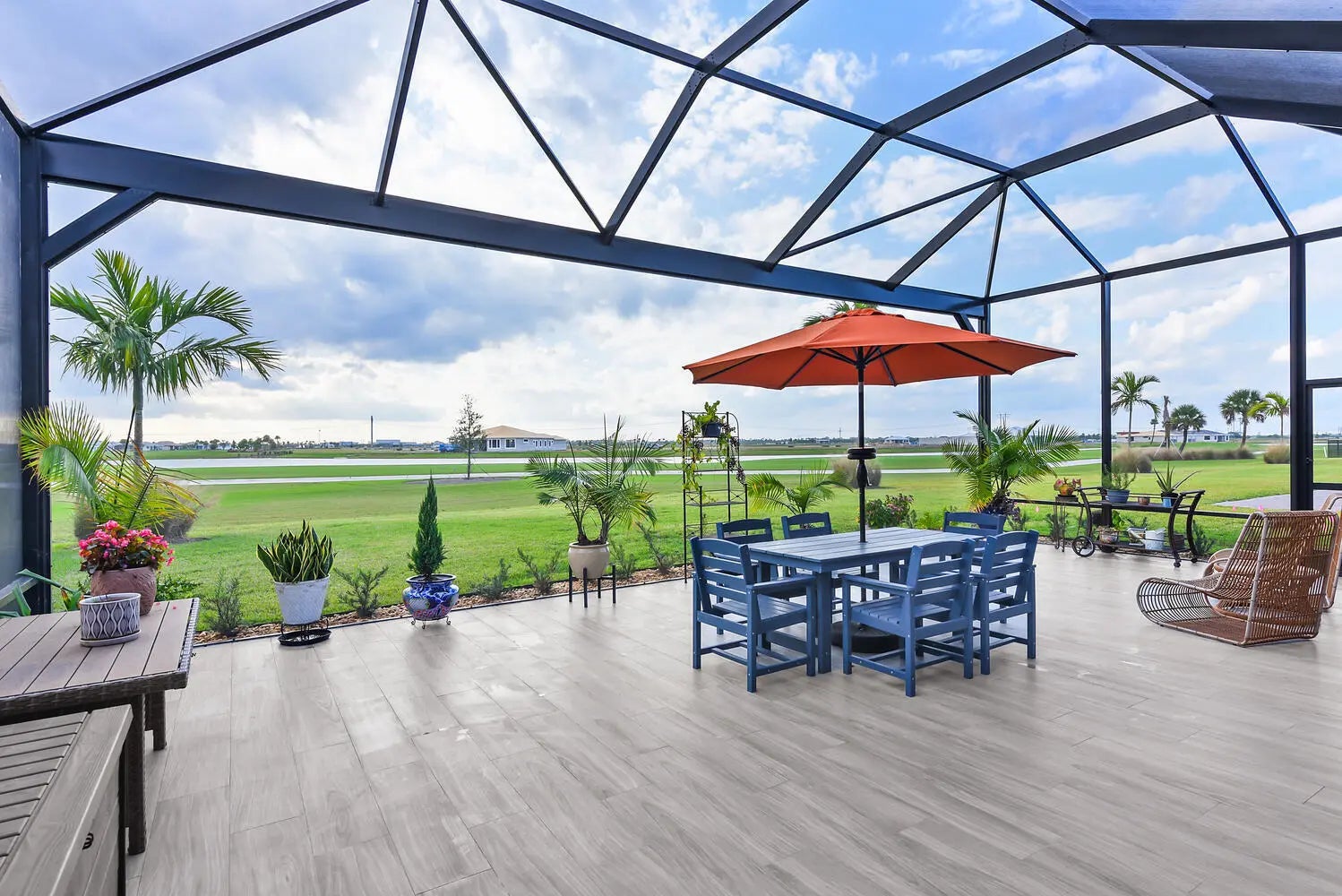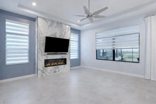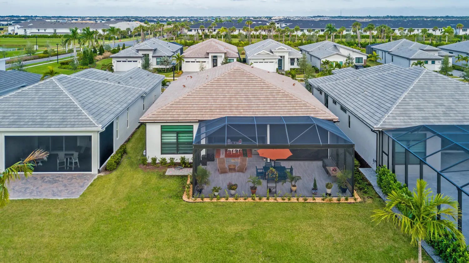 Fully completed and available for immediate occupancy at closing, this exceptional 3BR/3BA + bonus room residence is move-in ready with no construction delays and no builder timelines. Built in 2024 and thoughtfully upgraded throughout, this home offers the rare advantage of closing and enjoying it immediately --positioned on a premium golf-front lot overlooking the Par-5 #8 tee box in the prestigious Astor Creek Golf & Lake Club. Enjoy sweeping golf and lake views with spectacular sunset exposure from one of the largest outdoor living spaces in the community. The expansive ~1,200 sq ft screened lanai delivers true indoor-outdoor luxury, featuring porcelain tile decking, remote-controlled shades, a custom privacy wall, and an 85'' outdoor TV - designed for effortless year-round entertaini Inside, the home makes a dramatic first impression with a soaring 23' entry and 12' ceilings throughout. Designer upgrades include tray ceilings, custom wainscoting, crown molding, statement feature walls and murals, wallpapered baths, frameless glass shower enclosures, upgraded lighting and ceiling fans, custom roller shades, and a striking 16' tiled fireplace anchored by a 75" smart TV. The flexible bonus room -- complete with sleeper sofa and custom mural -- offers versatility as a guest suite, media lounge, or office. The primary suite is spacious and well-appointed, featuring generous storage and a large L-shaped walk-in closet designed for comfort and functionality. The 3-car garage is fully upgraded with epoxy flooring, custom cabinetry, ceiling fans, and the golf cart is included -- adding both lifestyle value and convenience. Astor Creek offers a championship 18-hole golf course, elegant clubhouse with restaurant and bar, resort-style pool, fitness center, and an active social calendar. Designer finished, meticulously upgraded, and immediately available, this is a turnkey luxury opportunity without delay. Move in at closing. Start living from day one.