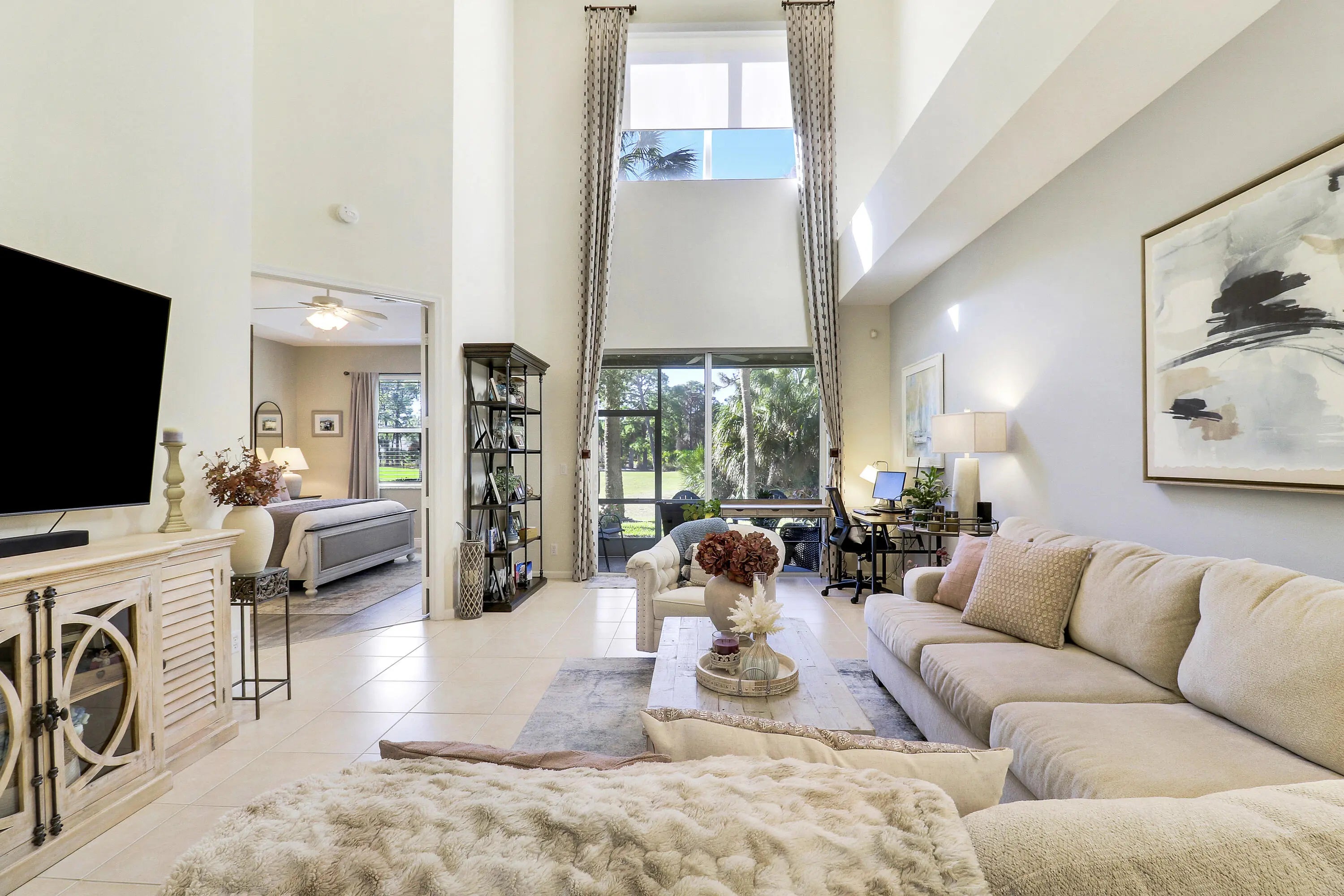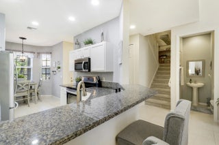 ENJOY GOLF VIEWS FROM THIS NICELY UPDATED TOWNHOUSE IN THE TORREY PINES NEIGHBORHOOD OF PGA VILLAGE! Move right into this 3BR/2.5BA/1CG home with the main bedroom suite located on the first level. Some of the many special features include an open floor plan with soaring ceilings, hard surface flooring throughout the first floor, neutral interior paint, updated master bathroom suite, some impact glass windows & doors and a cheery kitchen with white cabinetry, granite counters & stainless steel appliances. The ground level of this home is complete with the main bedroom suite, half bath, living area and kitchen, while upstairs you'll find two bedrooms and a bathroom, providing the perfect space for visitors. The screened and covered patio overlooks the golf course views. Located just steps away from the Torrey Pines neighborhood pool, the ideal spot to meet with neighbors, relax in the sun with a book or take a swim. HOA dues cover cable, internet, lawn care, mulching, tree & hedge trimming, common area maintenance, community security and access to the Island Club. PGA Village is an amenity rich community with COUNTY ONLY TAXES surrounded by multiple golf courses where MEMBERSHIP IS OPTIONAL. Activities at the Island Club include pickleball, tennis, resort style pool, exercise rooms, ballroom, billiards and more. A short drive to the Palm Beaches, Stuart, Jensen Beach, Vero Beach, airports, NY Mets spring training, dining, shopping and beaches. Call today to view!
