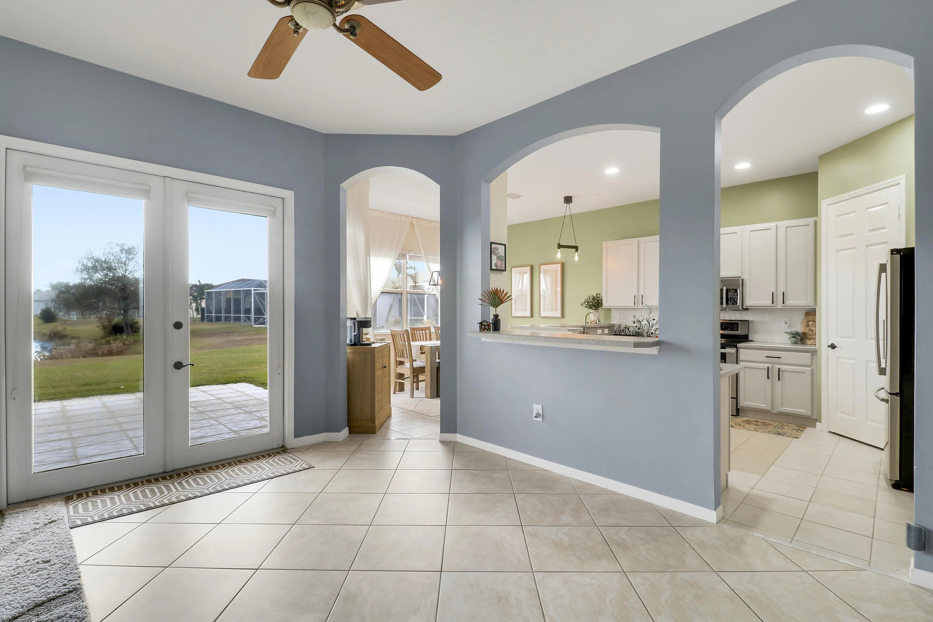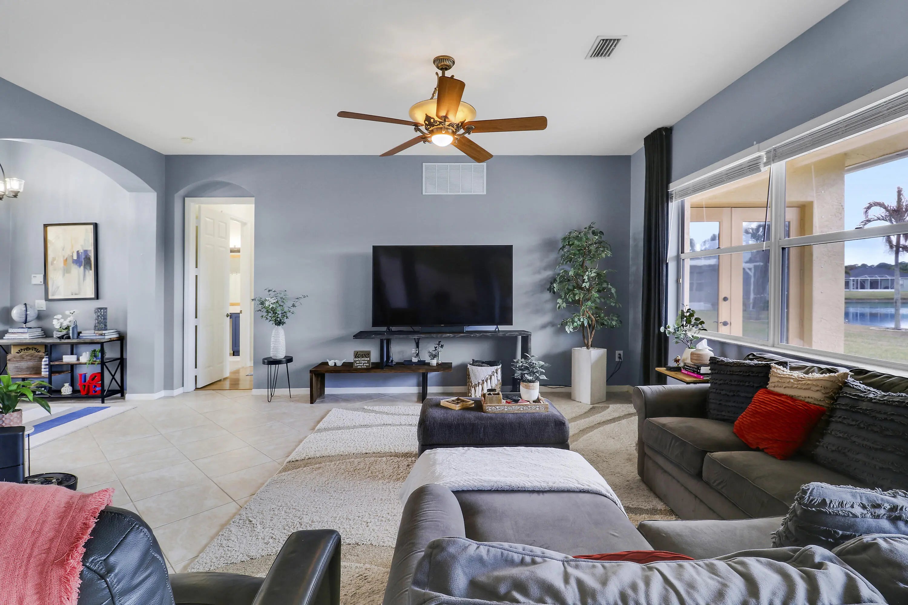Welcome to one of the most special homes in Lake Forest. Perfectly positioned on an oversized .25 acre lakefront lot inside this desirable gated community, this lovingly maintained 3 bedroom, 2 bath residence offers both space and serenity. From the moment you arrive, pride of ownership is evident throughout. Inside, the home features beautiful wide and long lake views, upgraded stainless steel appliances including a convection range with warming drawer, convenient pull out kitchen cabinetry, upgraded front load washer and dryer. Additional highlights include French doors, surround sound, a side load garage, glass front entry doors, and easy care tile and laminate flooring throughout. Step outside to the oversized private back patio where peaceful water views create the perfect backdrop for morning coffee or evening relaxation. The expansive lot offers plenty of room to add a pool, while nature lovers will appreciate visits from ducks, Sandhill cranes, egrets, and other local wildlife right at the water's edge. Located in Lake Forest in Port St Lucie, residents enjoy low HOA dues that include full lawn care and cable, along with access to community amenities such as two pools, a clubhouse, and a fitness center. This is a home that has been truly loved and thoughtfully cared for, ready for its next chapter.