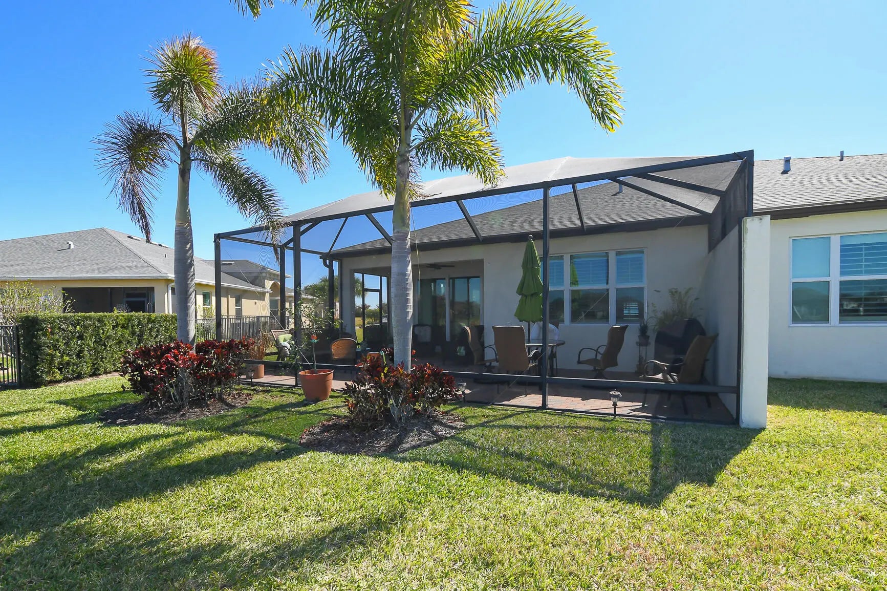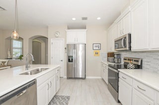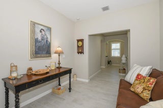 Fabulous ''Spruce'' Model at LakePark in Tradition (55+ Community) offering lovely Villa on corner property & beautiful Lake View! Features CBS Construction, Paver driveway/ walkway & Impact Hurricane Windows. Split floor plan includes 2 Bedrooms, 2 Baths, Den/Office & 2 Car Garage.Details include Foyer entrance, Volume Ceilings, Tile that looks like wood in main areas & Plantation Shutters. Stunning spacious Kitchen, white cabinets, Large Island, pantry & corian counter tops. Large laundry room includes washer, dryer, & cabinets. Fabulous Screen enclosed extended lanai boasts tranquil lake setting to enjoy morning coffee or evening glass of wine! HOA includes Manned gated security, Lawn care, common areas, cable, internet, Recreation Facility with something for everyone!