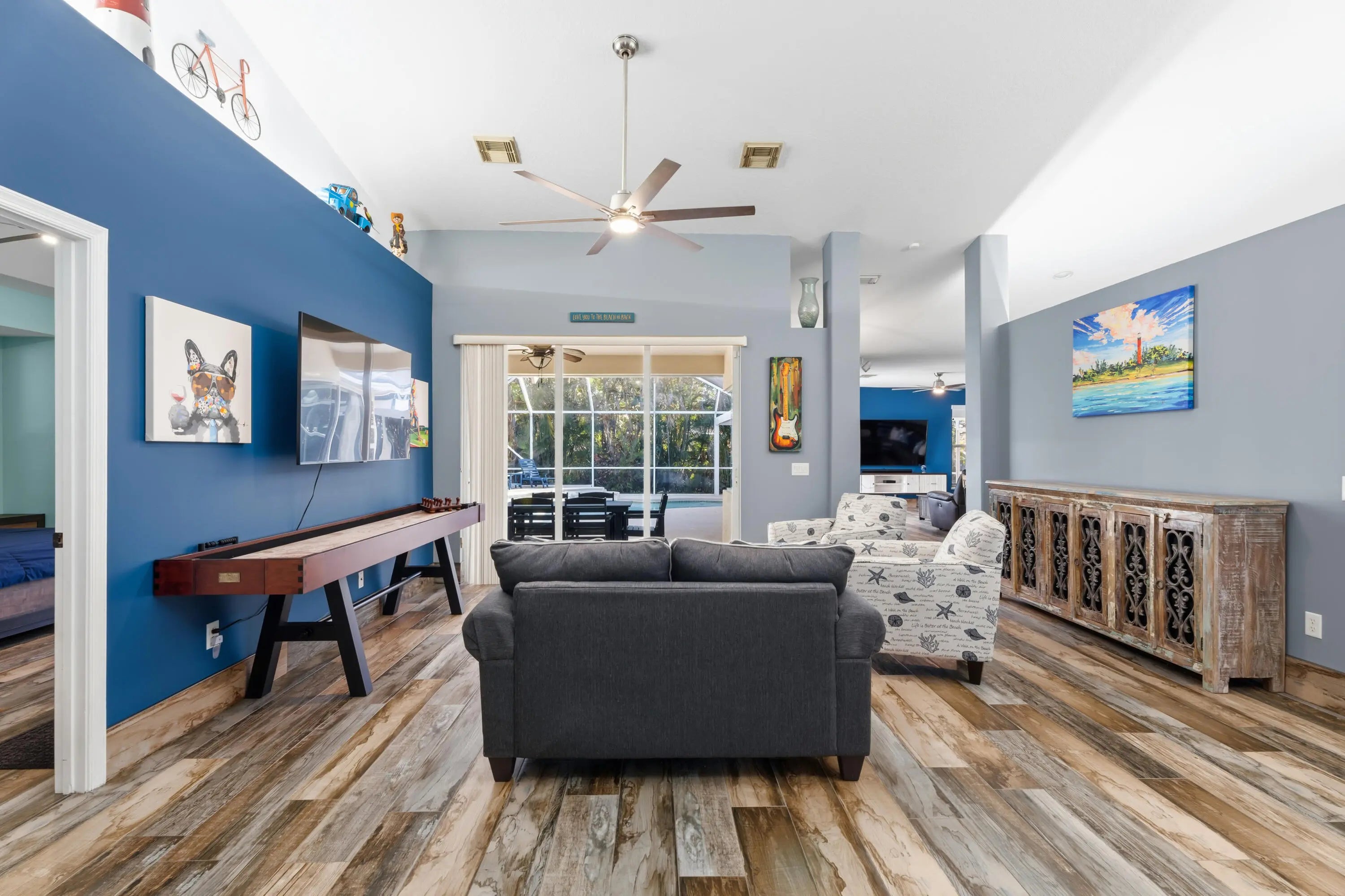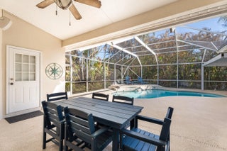 Beautifully maintained 3-bed, 2.1 bath home with 2 car garage offers big-ticket updates, generous open living spaces with high ceilings, and a backyard setting that feels like your own private retreat. Major improvements have already been taken care of, including a brand-new metal roof 2025, newer A/C, newer hot water heater, new pool pump & pool heater, whole home water filtration system, tile flooring throughout, fresh paint inside & SS appliances in the gourmet kitchen. This spacious 2,142 liv. sq. ft. layout features formal living and dining room, along with an oversized family room. Primary suite has an oversized bath with dual vanities, a separate shower, and a relaxing Roman tub. Split bedroom layout. Outside, the heated pool surrounded by a lush, mature landscape and a fully fenced yard and a 30/50 amp hook up for RV. The covered patio creates the perfect setting for quiet mornings, serene evenings, or hosting. Giving you ease of mind from day one, just move in and enjoy!