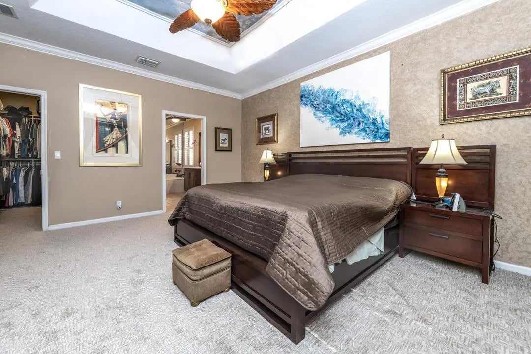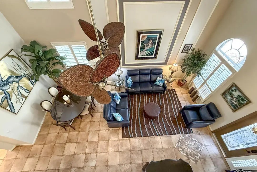 This property has an excellent location nestled in the community on a quaint cul-de-sac street. New Roof 2025. Pelican model, 2-story, 3 bedroom, 2 ½ bath, large loft, rarely becomes available for sale! All carpet through-out is brand new! Soaring ceiling in the main living area as you enter this home adoring a tropical paddle fan and plantation shutters. The kitchen has high-end appliances, Viking range and dishwasher, built-in Miele Gourmet Coffee Station, and a massive Sub-Zero refrigerator! The master bedroom closet has an impressive built-in system. The 2nd level loft area offers abundant space for an office area, rec-room area, casual TV area, or a great kid's play space. There are plantation shutters through-out the home, built-in organizing laundry cabinets.