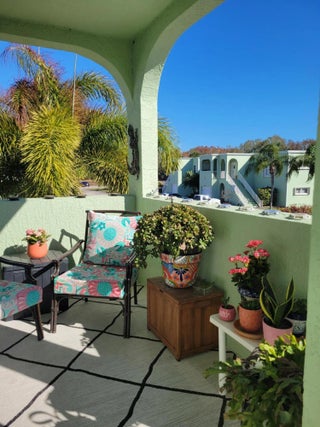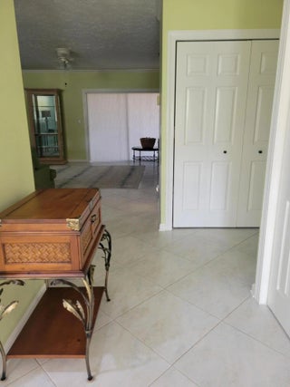 Rare opportunity now available with accordion shutters and a new roof WINTER of 2024 with just over 1,550 sf under AC and just under 2,000 total sf. 2 bedrooms, 2 baths split open plan, no carpet, covered patio and ALL-season porch 21 x10 with central air conditioning. AC bills in Summer never go over $100.00 dollars. Very energy efficient unit. Wide water views from the rear porch. Near to the beaches as well! From the moment you open the front door every room is bathed in energizing natural light. Small Foyer landing entrance opens to breakfast bar on Left and breakfast nook on right. The kitchen is the heart of this spacious home, a true cook's kitchen with a glass backsplash that adds visual interest and accents the thick granite countertop. The counter (see supplemental info) space goes on and on with so many cabinets and drawers, a place for everything and everything in its' place. Crown moldings grace the top cabinetry and is repeated at the ceiling as well as throughout the entire home. An elegant but refined touch. All kitchen appliances stay as seen, including the osmosis with filter at sink. Large porcelain floor tiles cut on a diagonal visually magnify the gathering areas throughout the home. ***For anyone who works from home or telecommutes it can be difficult to carve out a home office. But not here, much thought and preparation has been made for that beautiful matching granite for this built in office opposite the kitchen will put all home offices to shame. Room for two computer screens, two printers, a writing area, as well as drawers for files and cabinets for supplies. You can seamlessly power down and lock up in minutes when the children come home or guests stop in. This home has nonstop storage next to the home office as well as the spacious laundry room where you can have even more storage with some extra cabinets that you add. The sleeping areas are just off the gathering room and kitchen, down a short hallway. Left door is Master, Center is Guest bathroom, Right door is Guest bedroom. HUGE MASTER is 16.8 x 13.2 of useable floor space (room is larger) Master has slider that opens to HUGE All-Season porch, two flanking closets with mirrors in Master with hidden cabinet storage. Master bath vanity area has one water basin, but can easily accommodate two. Large enclosed glass shower rounds out the master bath. The slider that leads from Master to Huge Porch is 21 x 10, this all-season porch offers windows that reconfigure into 2/2 split, 3/1 split or all 4 up. Currently air conditioned or heat or use the windows and it becomes a screened in porch. You decide. Laundry room is just off Master with 9 x 8.2 size bigger than most bathrooms. SOOO much storage. Could be additional pantry, could be sewing room, could be fish tackle room, could be hobby room...could be your special room. The guest bedroom is generous in size 16.6 x 12.2 and has natural sunlight streaming in all day long. Mirrored closet doors and closet maid shelving add more useable space. From the porch you can enter back into the master retreat, or you can walk to the other end and enter the large living room which also has a slider too and overlooks the semi-formal dining room which is adjacent to the kitchen pass thru. This open floor plan lives large and can be anything you want the rooms to be as you are not limited. AC bills well under $100.00 even in Summer! The condo association offers several amenities that come with your monthly/quarterly condo fees for the whole family. A large pool, a spa, a sauna, tennis courts to name a few, plenty of places to jog or walk within the community as well. Sometimes a garage comes up for rent so check the bulletin board daily. The hospital is only 6 minutes away. The beaches are only 12-15 minutes away. This area East of U. S. 1 is growing. You can walk or bike to the Civic center that was built not too long ago, take in one of the venues offered which changes weekly, plays, music, theater, always something happening here, even parades! Publix grocery store across the street from the Civic center on Walton road with additional shopping, restaurants is just minutes down the street too. Easy access to U. S. 1 and the beaches. Take Walton East over the Hill to the "T", make a right. Beaches on Left over bridge. Want to skip the U. S. 1 traffic? Go to Jensen Beach? Take Walton East make a right onto green river parkway from Walton as it exits at Jensen Beach take a left. Ocean directly East just over the bridge. Call your agent now and make an appointment to see this rare opportunity to own big square footage all on one floor. Very Low AC Bills.