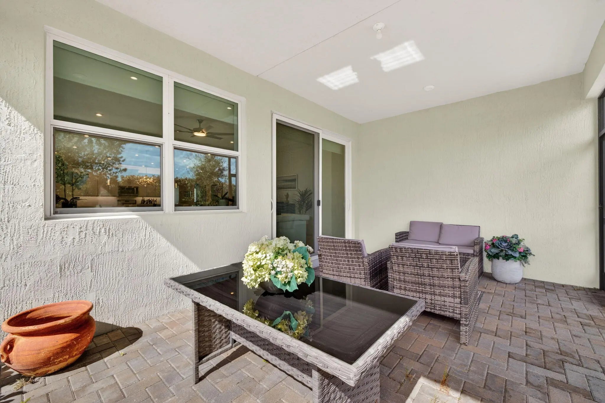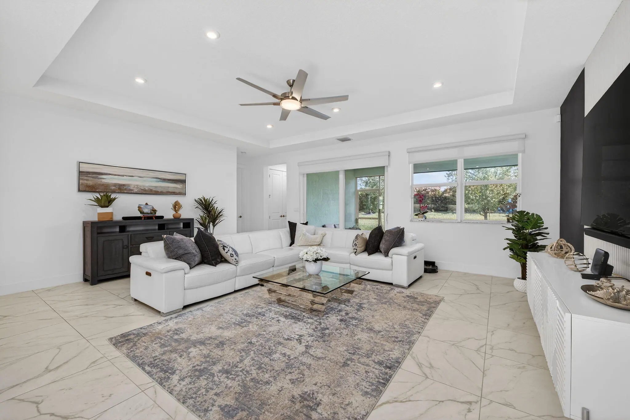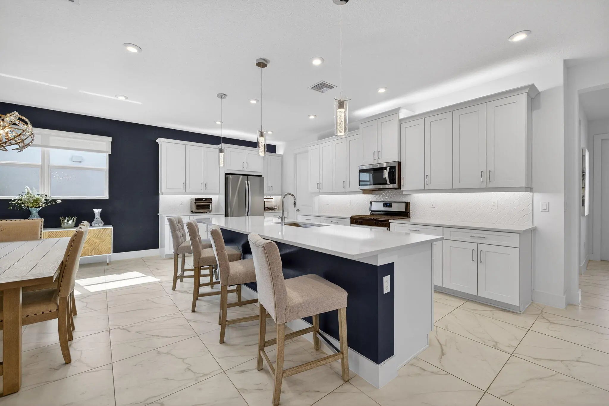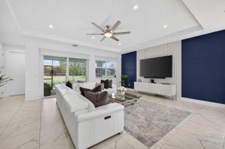 Welcome to this beautifully finished 2+Flex / 2.5 bath home built in 2022 -move-in ready and impeccably styled. Featuring a 2022 roof, A/C, and water heater, complete impact windows, and a whole-home water filtration system for added peace of mind. The open floor plan is perfect for entertaining, highlighted by a large island, generous kitchen counters/cabinets, walk in pantry, tile back splash, SS appliances & a versatile flex room ideal as a third bedroom, office, or den. Located in Telaro at Tradition, a resort-style ACTIVE ADULT community offering a sensational clubhouse with a fun filled social calendar, resort style pool, tennis, pickleball, manned gated security. Minutes from downtown Tradition.