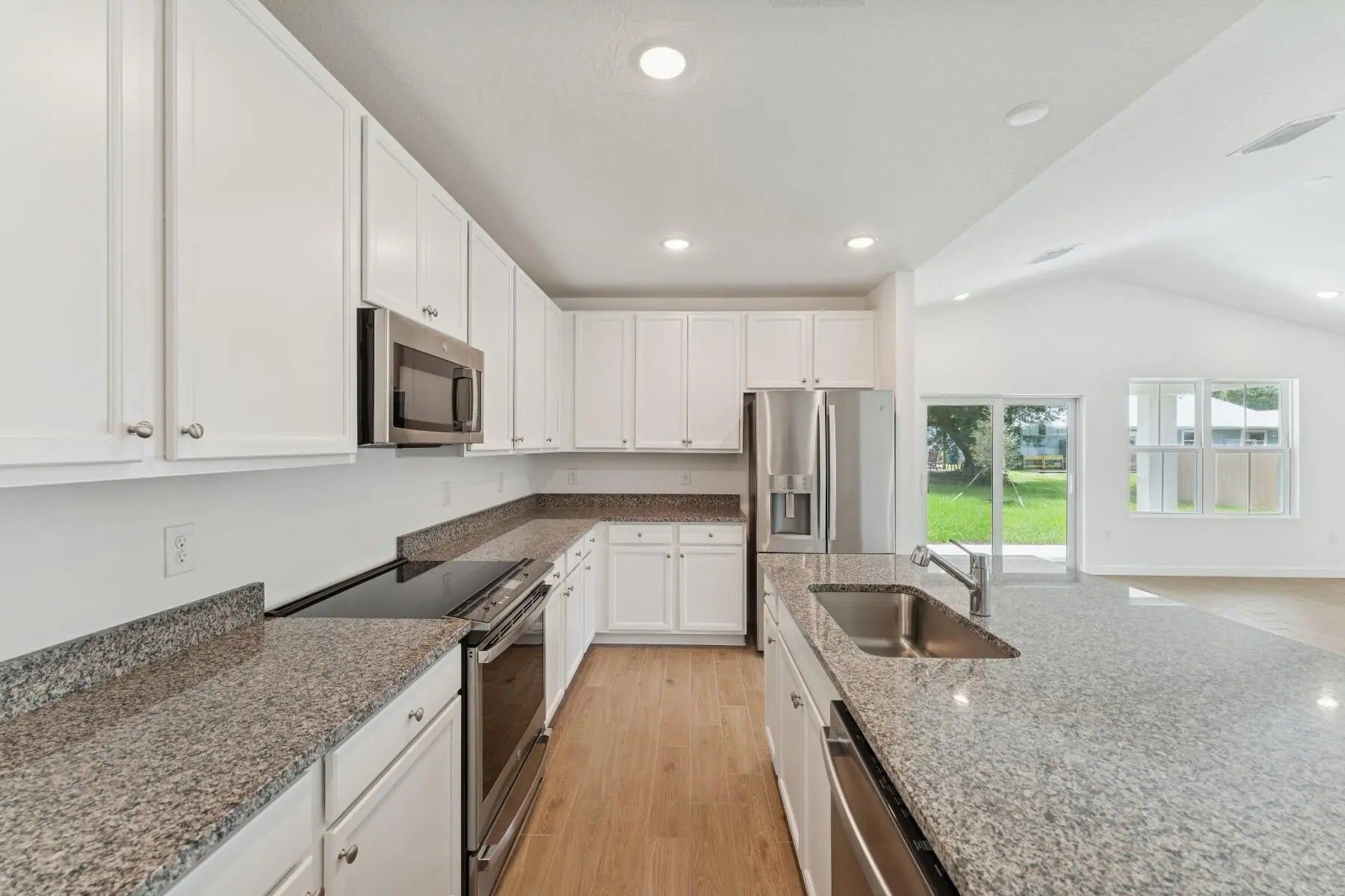Discover this stunning new construction home situated on a spacious ¼-acre lot with NO HOA. The beautifully designed Passionflower II floorplan offers a true Next Gen living experience, ideal for multigenerational families or anyone seeking flexibility and privacy under one roof. This thoughtfully crafted home features an ''Extra Suite Plus'' with its own private bedroom, bathroom, living area, and separate entrance, creating the perfect space for extended family, guests, or independent living. Built with both style and durability in mind, the home includes full impact windows, tile flooring throughout, a complete appliance package, gutters, and a convenient turnaround U-shaped driveway. Inside, the well-equipped kitchen showcases a vast center island that flows effortlessly into the ma living areas, where vaulted ceilings create a bright and open atmosphere. The tranquil primary suite offers a generous walk-in closet and a refreshing primary bath with dual sinks. A peaceful covered patio provides the perfect setting for relaxing or entertaining, while the functional two-car garage offers ample space for vehicles, tools, and storage. This home blends comfort, practicality, and modern design, delivering the perfect balance of togetherness and privacy.