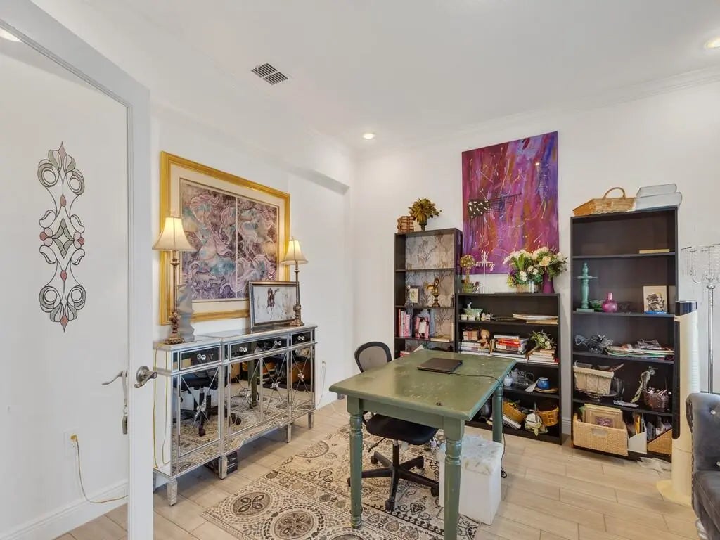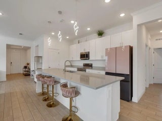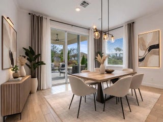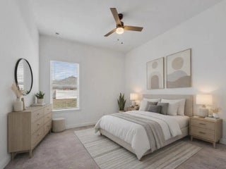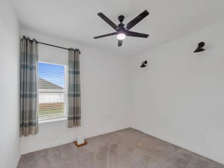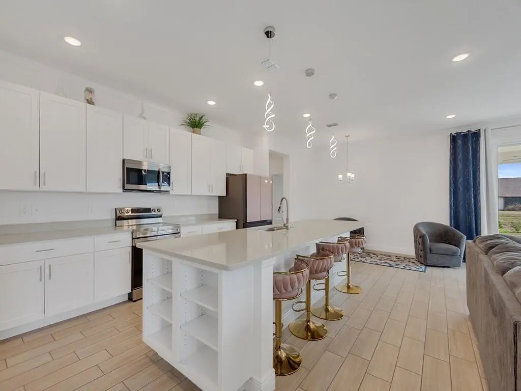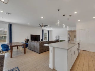 Welcome to this beautifully maintained, move-in ready home offering the perfect blend of comfort, style, and functionality. A spacious residence offers 4 bedrooms plus a dedicated office/flex space and a 2.5-car garage. From the moment you arrive, the charming front porch and inviting curb appeal set the tone. Inside, you'll find a bright open-concept layout with high ceilings, recessed lighting, and neutral finishes throughout. The expansive living area flows seamlessly into the gourmet kitchen, complete with crisp white cabinetry, quartz countertops, stainless steel appliances, and an extended center island offering generous seating and additional prep space. The kitchen is enhanced with updated modern pendant fixtures and a refrigerator with interchangeable panels, creating a clean, customizable design aesthetic. This thoughtfully designed space is ideal for entertaining or everyday living.. The primary suite is a private retreat featuring tray ceilings, generous space for furnishings, and a luxurious en-suite bath with dual vanities, a large walk-in shower, and an oversized walk-in closet. Secondary bedrooms are well-proportioned with ample closet space and natural light. Step outside to enjoy the covered patio overlooking a spacious backyard with room to design your dream outdoor oasis -- whether that's a pool, garden, or extended entertaining area.