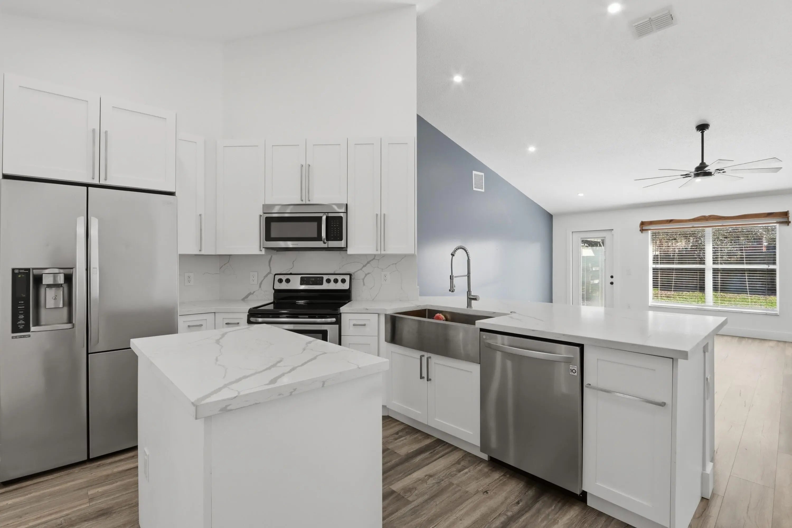 This beautiful single family residence has been totally updated, with completion in 2026. Come home to a brand new kitchen, bathrooms, trim, paint (even ceilings!), and hot water heater, plus new roof in 2022. A welcoming, dedicated entrance leads you to a volume ceiling in the living room, which adjoins to your open kitchen. Find the dining room ready for a casual meal, formal dinner, or game night! Imagine your chandelier glistening from the front window, welcoming guests to gather around the table. This layout truly feels like home. With 4 bedrooms laid out for primary suite privacy, plenty of yard space, and a 2 car garage, you will want to make this one the setting for your 'forever'. Minutes from Tradition, this location offers so many nearby entertainment and dining choices.