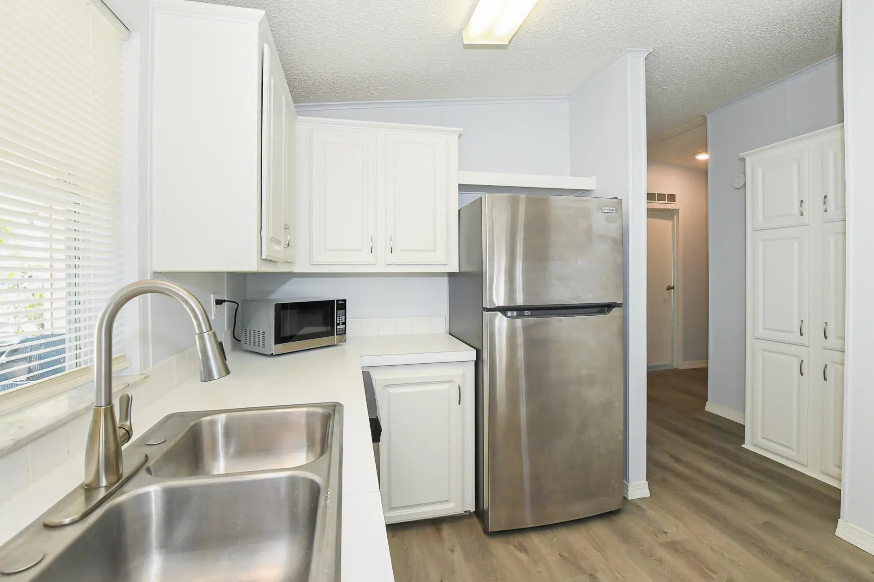 NO LANDLEASE FEES!! PAY ONLY THE MONTHLY HOA FEE. This 2Bed/2Bath Has A Double Carport & Large Storage Shed Attached. Newly Installed LV Waterproof Flooring,2023 Brand New Roof. Large Master BR With 2 Deep Closets. Kitchen With Refinished Cabinets And New Stainless Steel Appliances. Screened-In Patio To Sip Your Morning Latte While Enjoying The Breeze Or Dine Al Fresco In The Evening! Property Sits On A Cul-De-Sac Within Walking Distance Of Fairways Clubhouse Pool And Fitness Center! GET ACCESS TO A 55+ RESORT STYLE COMMUNITY WITH 3 LARGE COMMUNITY HEATED POOLS,CLUBHOUSES,RECREATIONAL FITNESS CENTERS,BILLIARDS ROOM,FREE INTERNET WIFI AT CLUBHOUSE,ON-SITE RESTAURANT & PLUS LOTS OF COMMUNITY ACTIVITIES.
