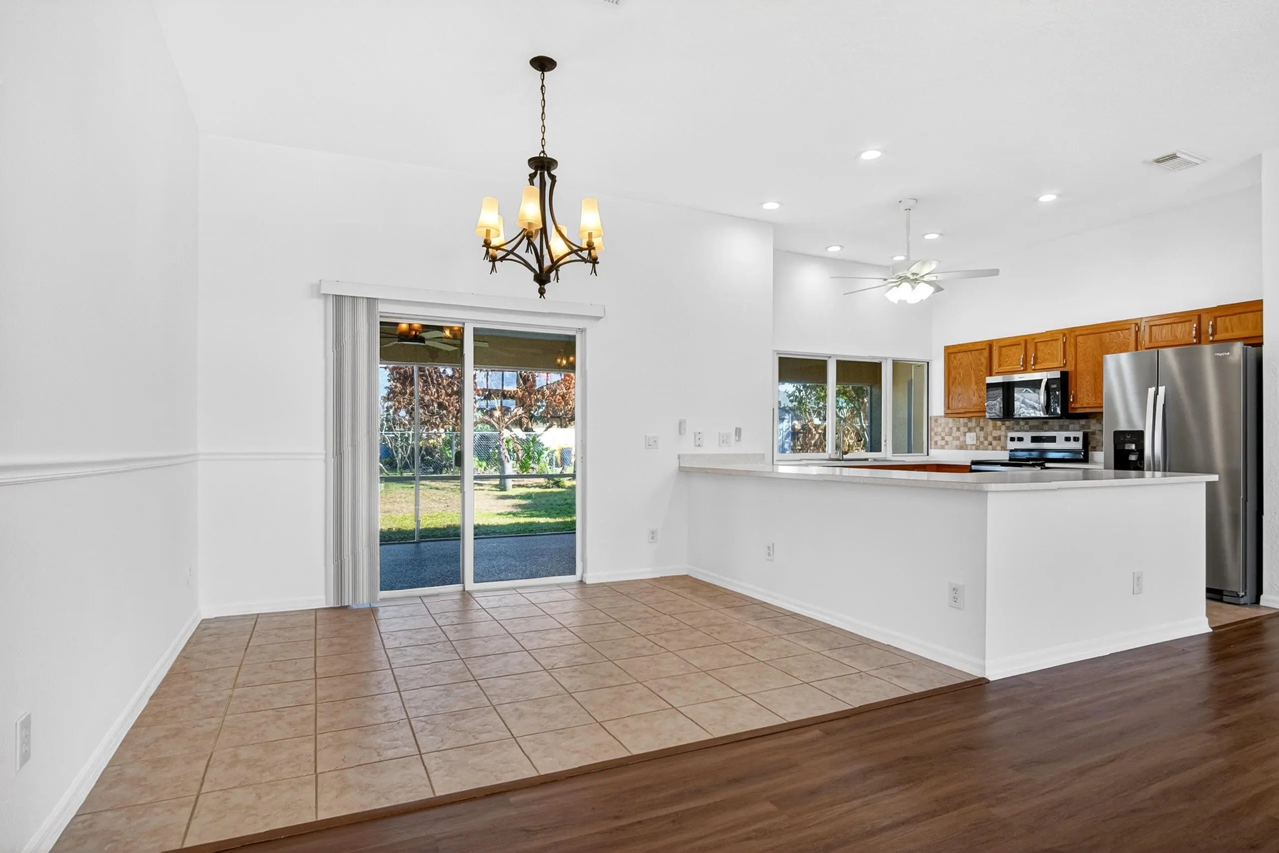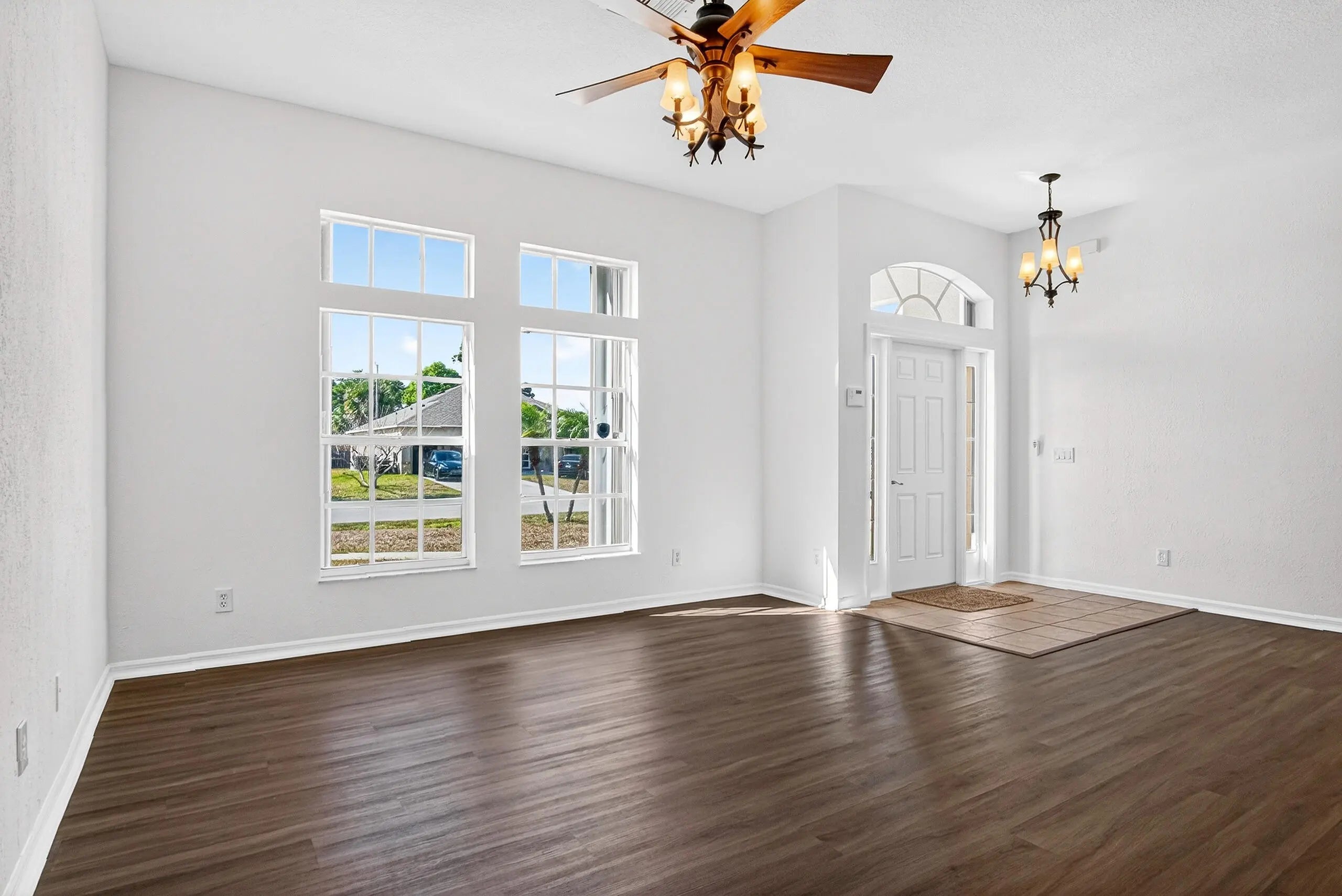 Discover this meticulously updated 3-bedroom, 2-bathroom home featuring a 2-car garage and a seamless open-concept design. Lofty 10-foot ceilings and a split-bedroom layout provide both elegance and privacy, with walk-in closets in every room. The interior shines with new kitchen appliances, while the exterior offers peace of mind with a 2026 roof and accordion shutters. Step outside to a massive 526 sqft covered patio with kitchen pass-through and cabana bathroom access, perfect for entertaining, overlooking your expansive backyard with a dedicated storage shed. Experience durability and style with polyaspartic flooring on the porch, patio, and garage. Ideally located near premier shopping, dining, and I-95, this home offers the perfect Florida lifestyle.