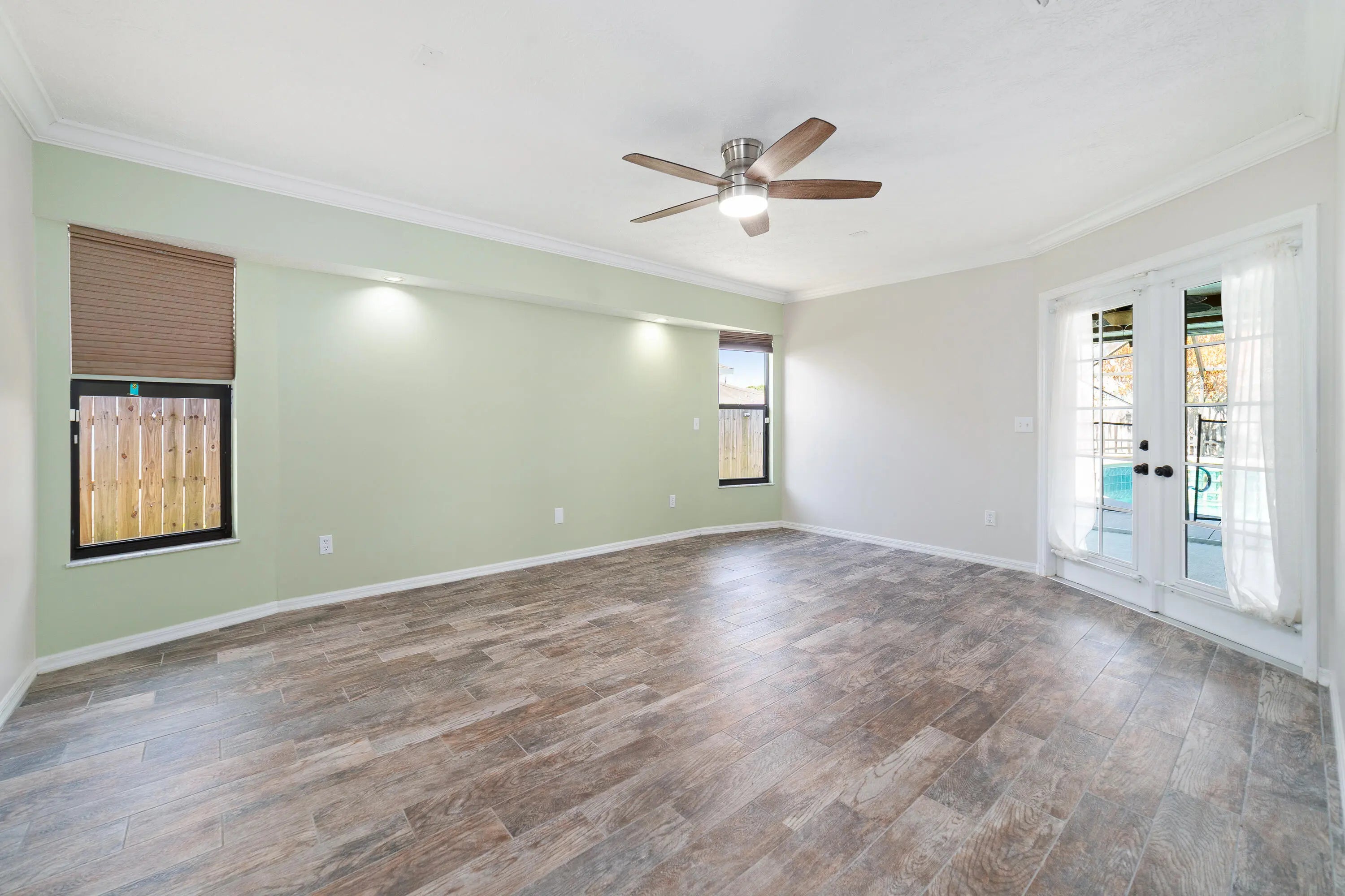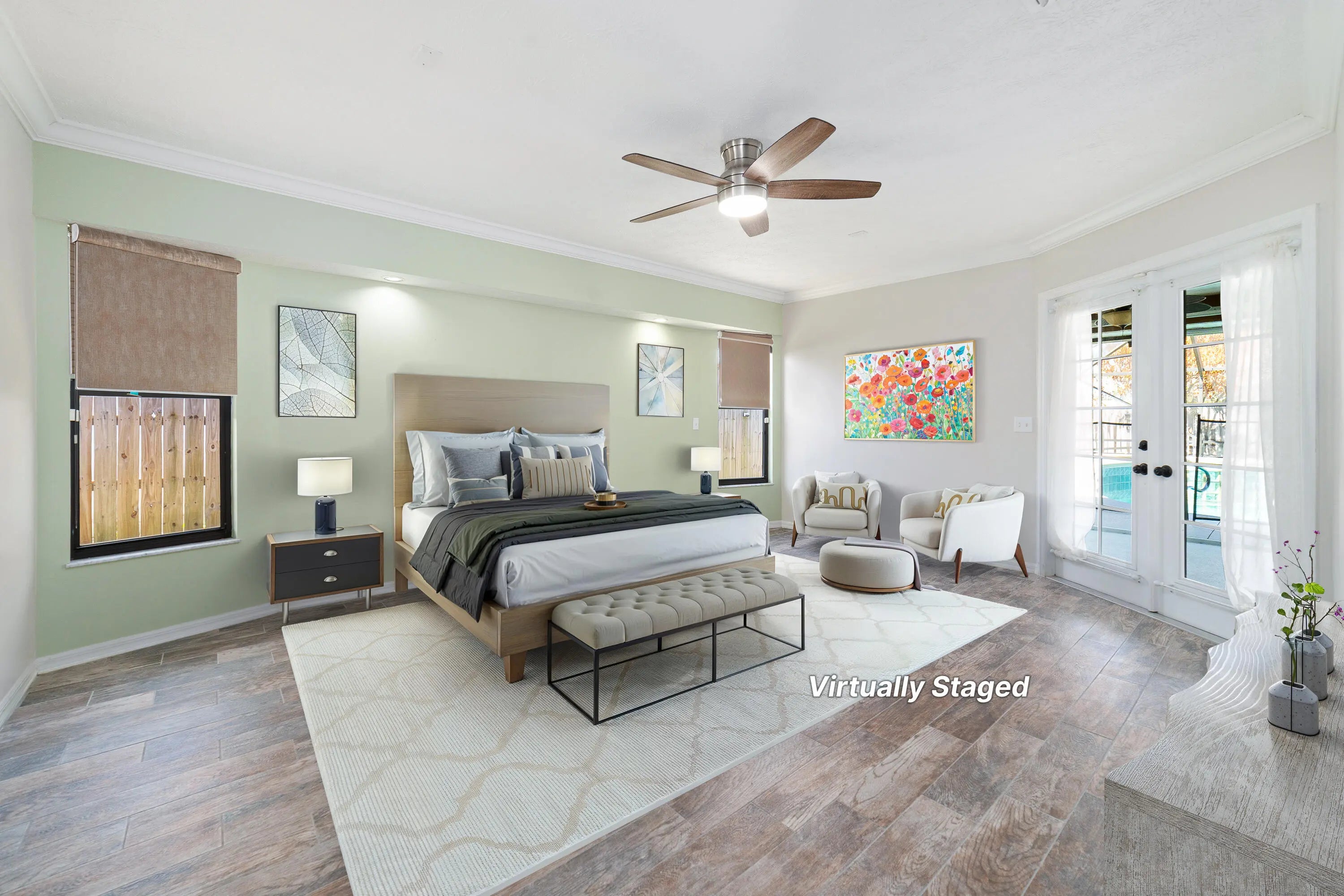 Gatlin neighborhood, you'll enjoy easy access to Tradition shopping, schools, and entertainment, as well as convenient I-95 access. Inside you'll be greeted by a spacious living and dining area featuring French doors that open onto a covered patio and sparkling pool. The eat-in kitchen is a chef's dream, boasting stainless steel refrigerator and dishwasher, soft-close cabinets, a prep island, and granite countertops. The primary suite is a true retreat, featuring wood-look tile flooring, a spa-like bathroom with a rain shower and dual vanities, and French doors leading to the patio. Relax and unwind in the heated pool and spa, easily controlled by the iAqualink system. Enjoy outdoor entertaining on the expansive covered patio, complete with accordion shutters for added security. This meticulously maintained home offers a fully fenced yard, a new roof installed in 2020, new water heater, a new AC unit from April 2020. Don't miss this opportunity to make this beautiful property your own!