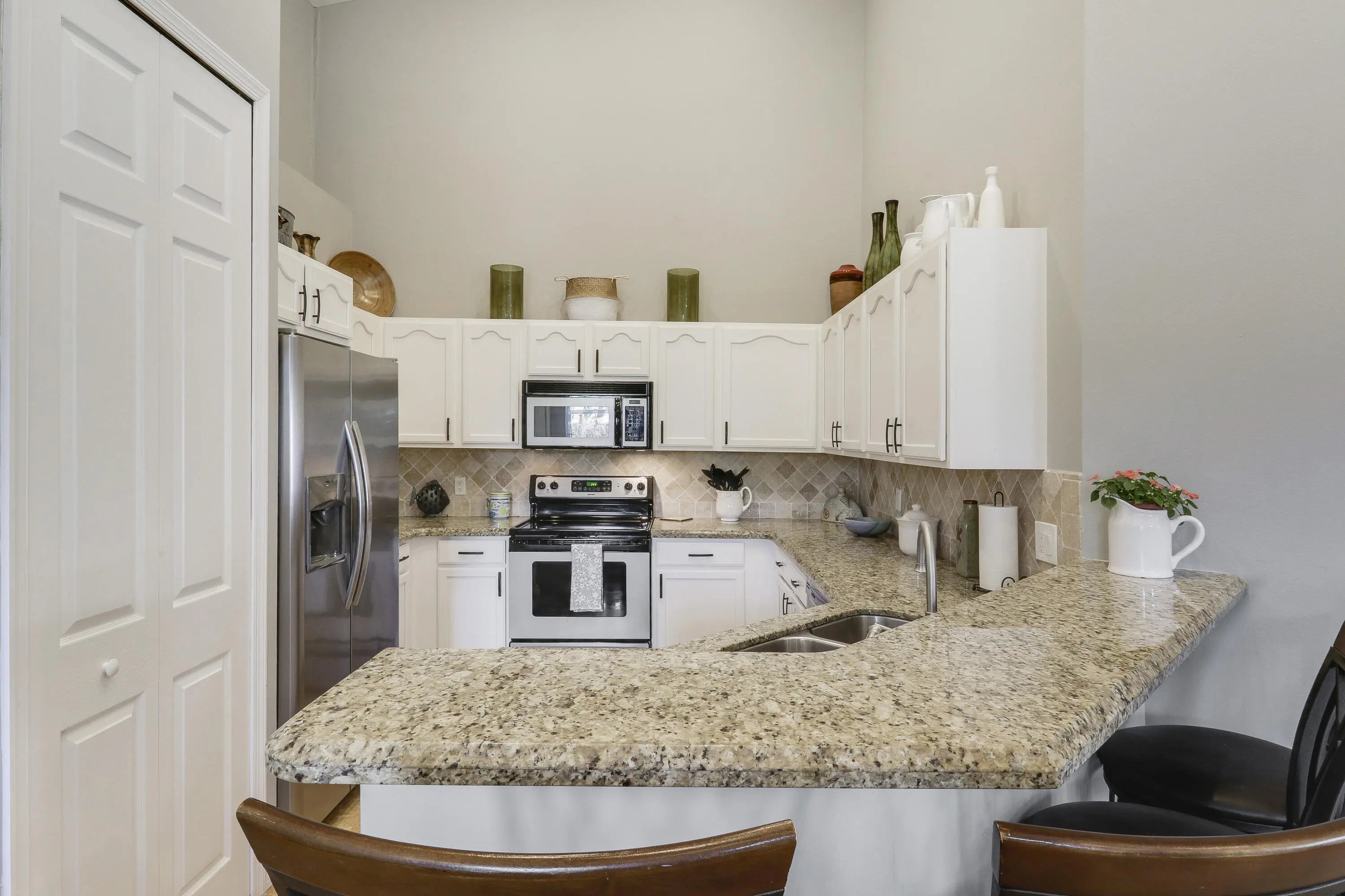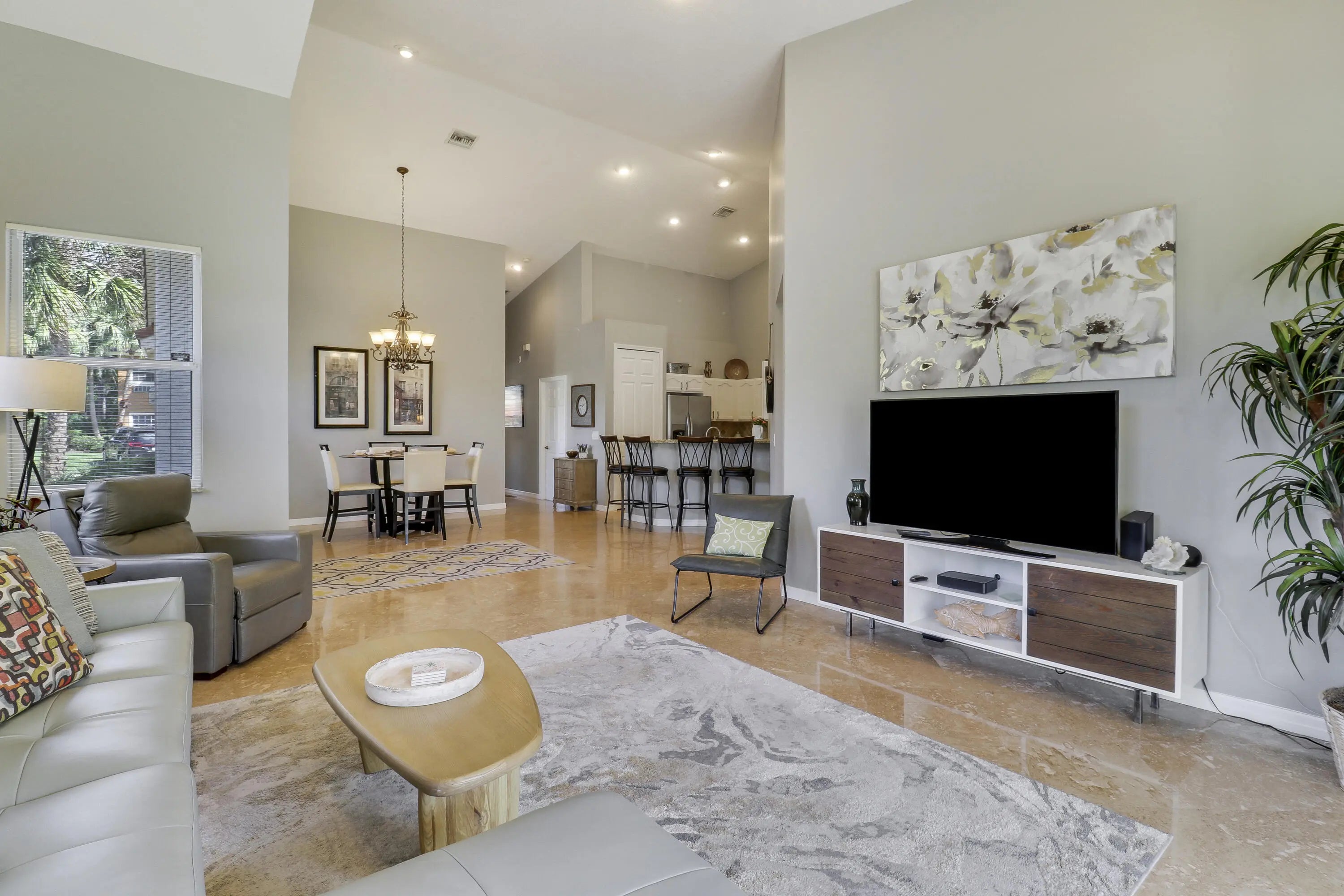 Beautifully furnished rental with UPDATES THROUGHOUT including NEW ROOF, updated furnishings, updated kitchen, hard surface flooring t/o, new mattress in the main bedroom, neutral paint and much more! This 3BR/2BA/1CG single story, corner unit is AVAILABLE APRIL THROUGH DECEMBER! Many special touches t/o this property make it feel like home. The open great room features vaulted ceilings, updated TVs, new couch, a kitchen with white cabinetry and granite counters. The master suite has access to the patio as well as an ensuite with dual sinks, soaking tub and separate shower. Two guest bedrooms share a hall bath. One car garage is great for parking or storing belongings. Internet and cable included in the rent. Just steps to the resort style community pool! Don't miss this one! Call today.