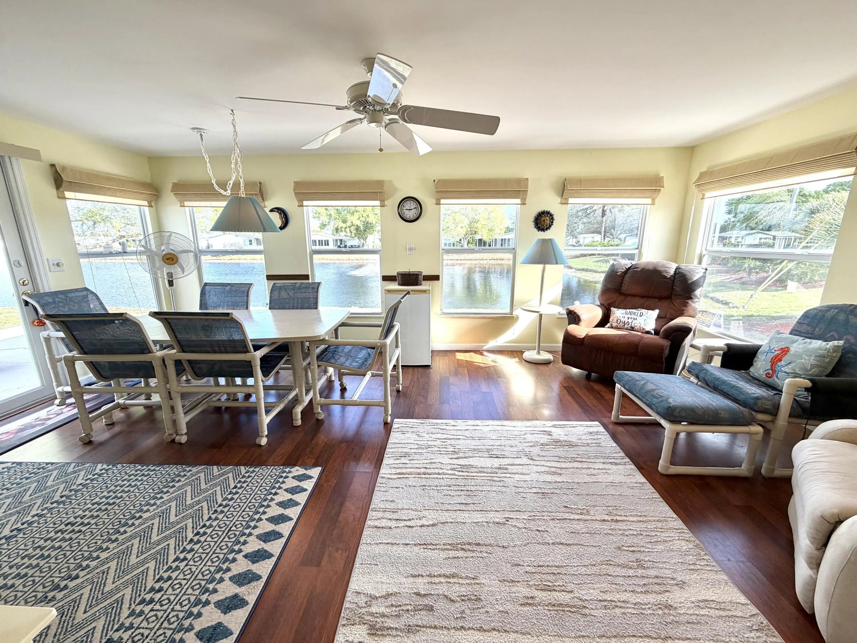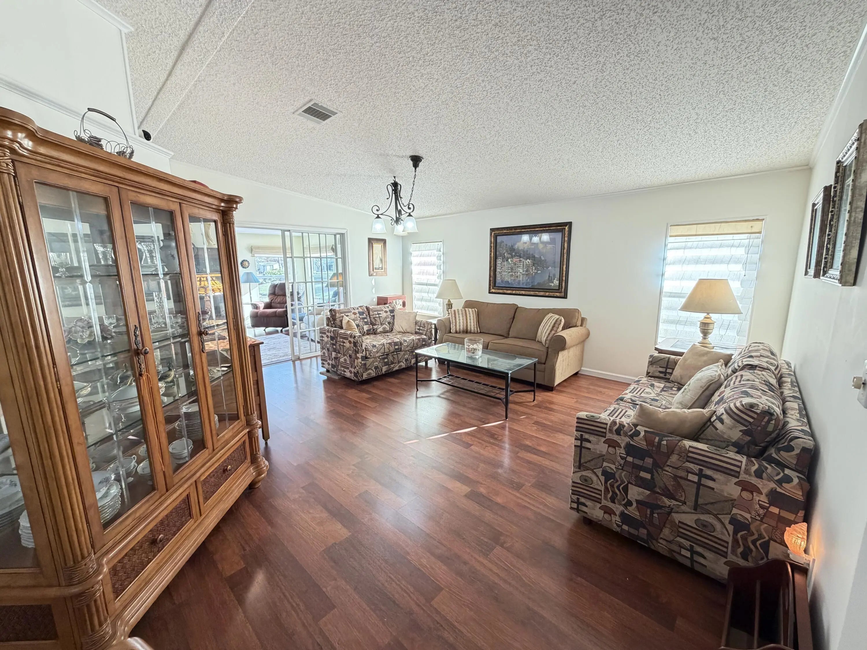 LAND OWNED! No land Lease! Charming 2 Bedroom 2 Bath in highly desirable Savanna Club home offers quiet setting with gorgeous water view of fountain. Fully finished lanai offers spectacular water views for entertaining and relaxing. Large golf cart garage and ample closets make this a perfect choice for year round or snow birds! A must see property that will not last long! must call list agent to show.