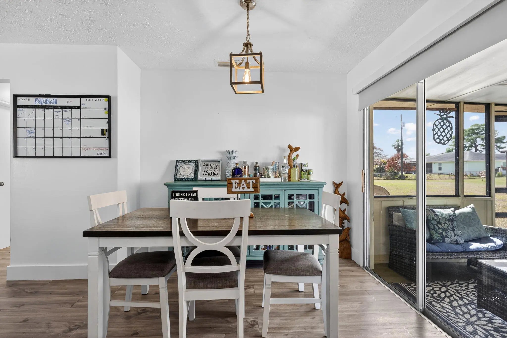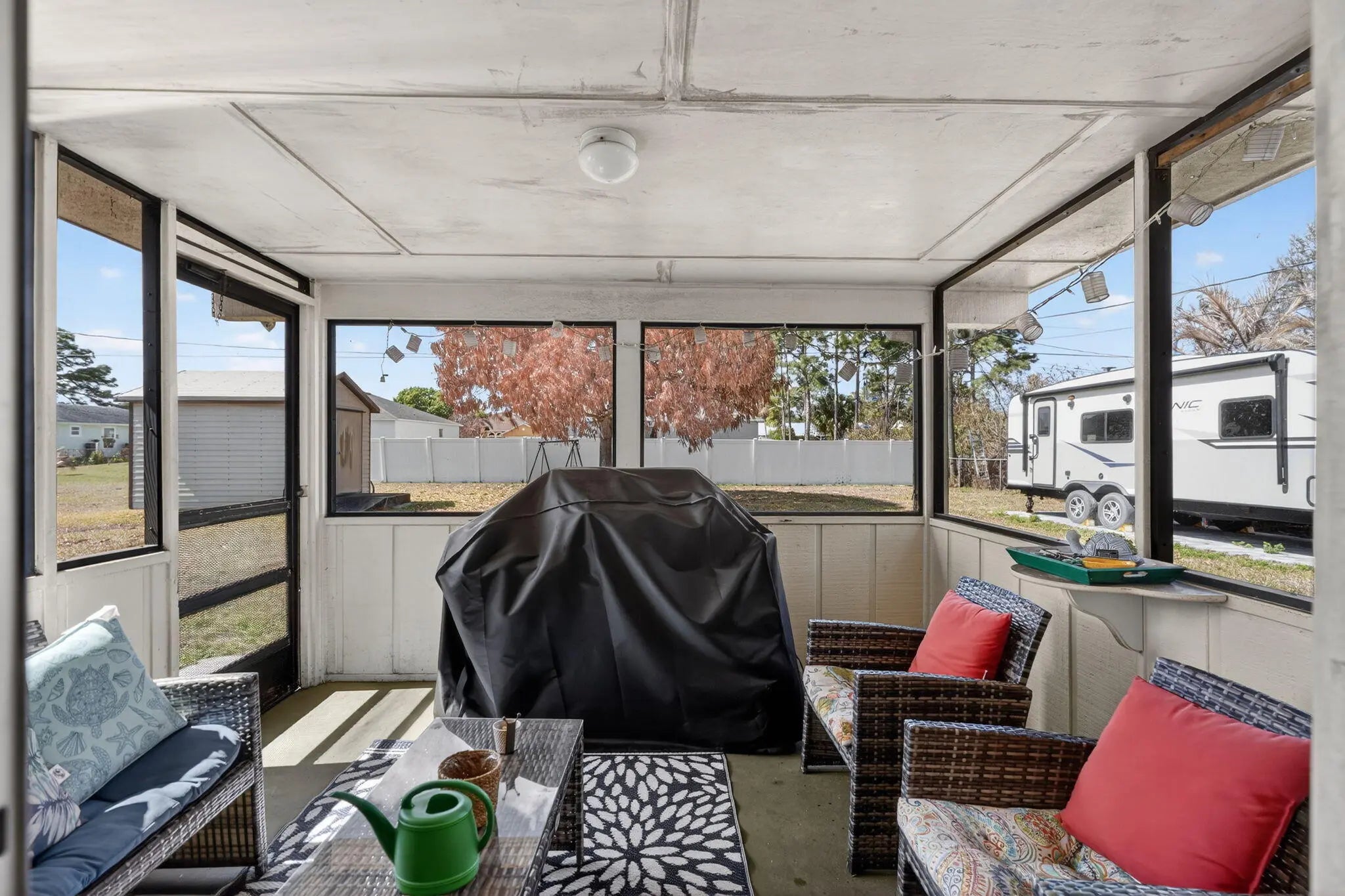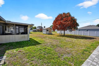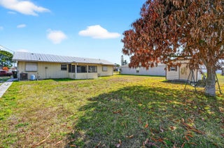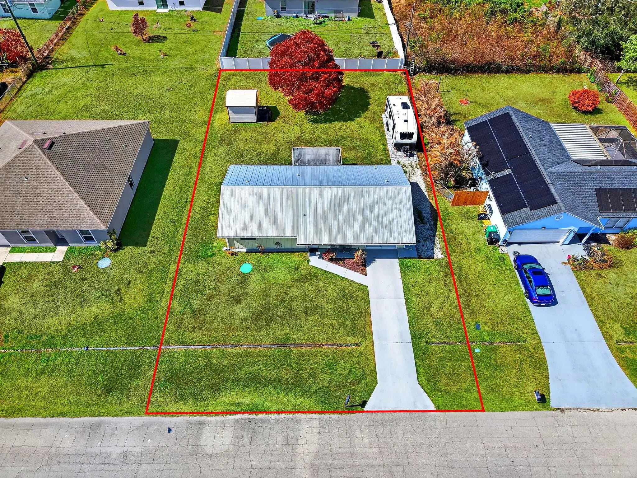Charming starter home offering 2 spacious bedrooms and 2 full bathrooms in a prime location near Crosstown Parkway. This well maintained home features a newer metal roof (2020), newer AC (2022), beautiful new laminate flooring with updated baseboards throughout. The kitchen includes a full LG appliance package. Relax on the covered, screened-in patio overlooking an oversized backyard with plenty of room for your toys, a pool, or outdoor entertaining. Additional features include a large storage shed and an RV pad with a 30amp hookup. Ideally located just minutes from the beaches, shopping, dining and Traditions.