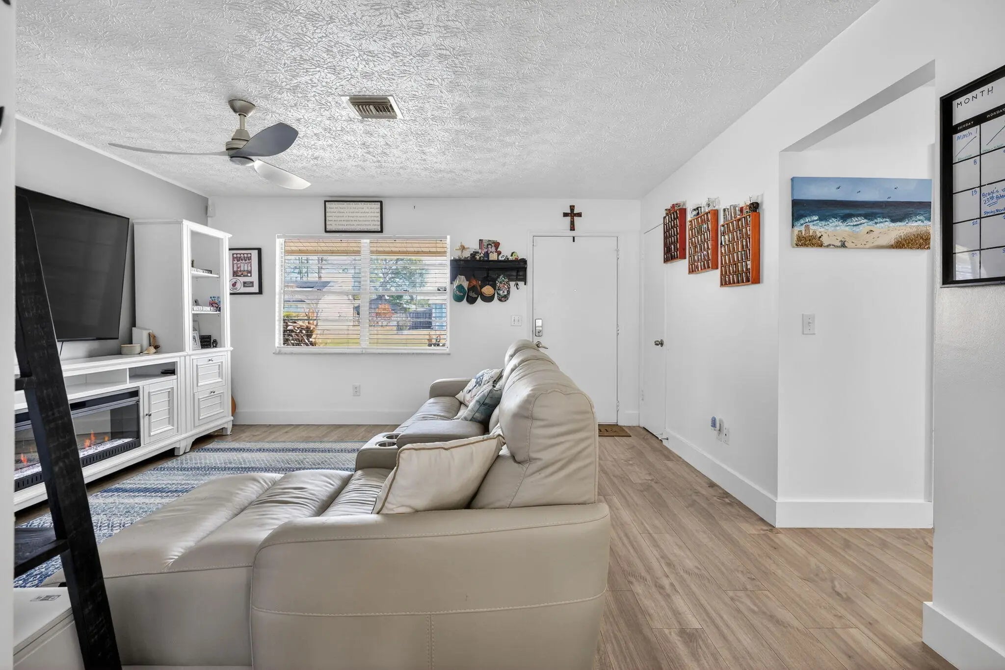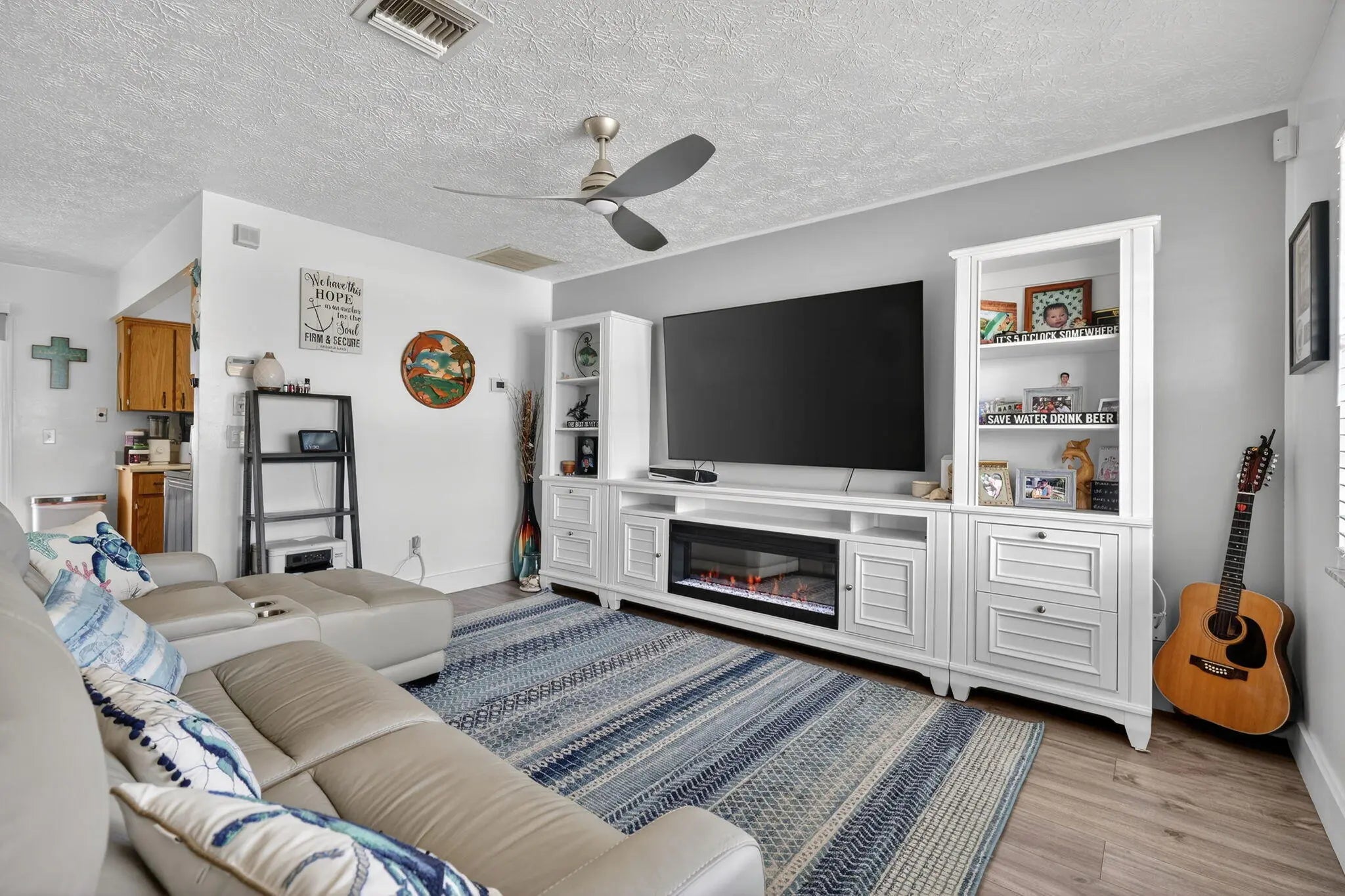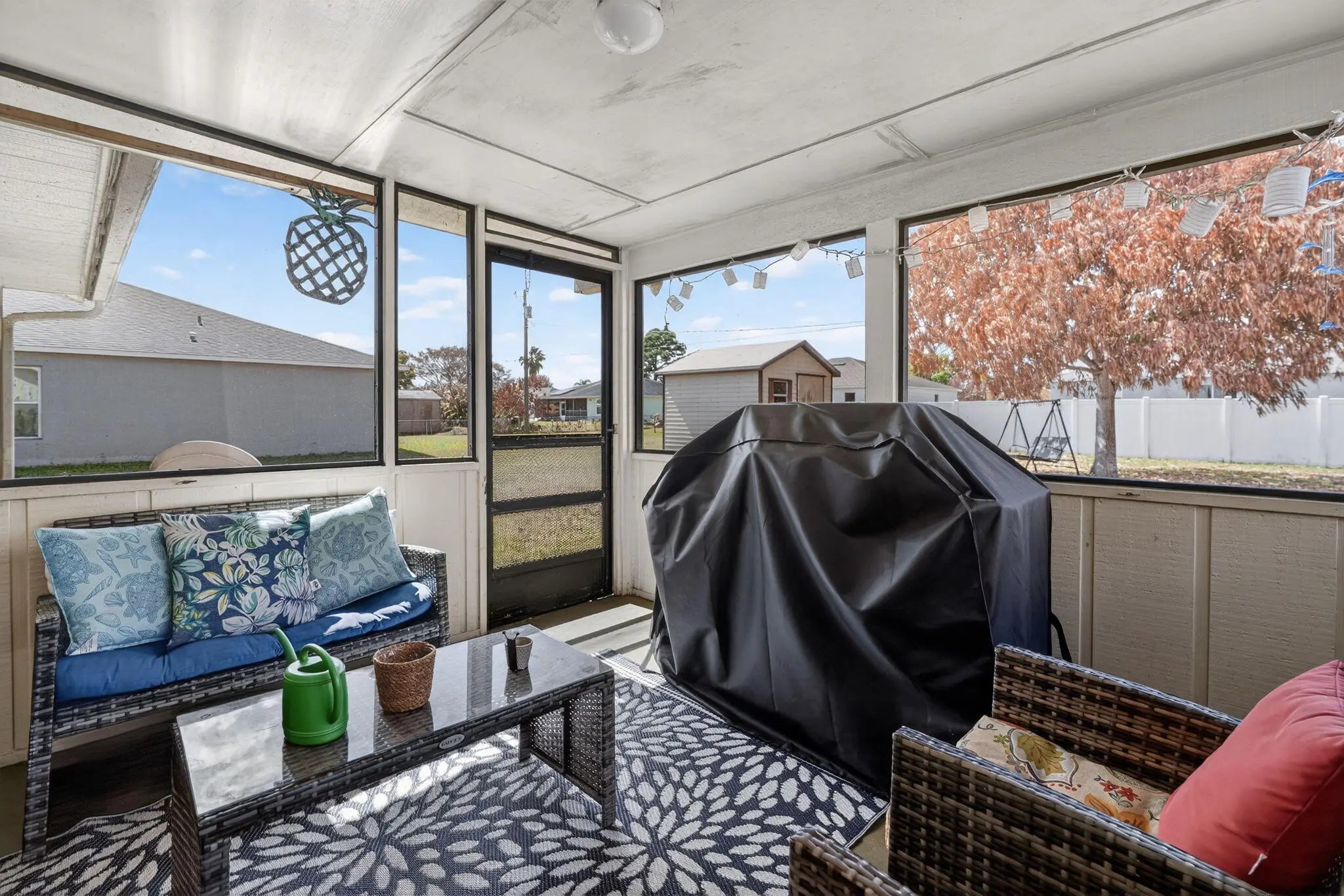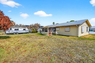 Charming starter home offering 2 spacious bedrooms and 2 full bathrooms in a prime location near Crosstown Parkway. This well maintained home features a newer metal roof (2020), newer AC (2022), beautiful new laminate flooring with updated baseboards throughout. The kitchen includes a full LG appliance package. Relax on the covered, screened-in patio overlooking an oversized backyard with plenty of room for your toys, a pool, or outdoor entertaining. Additional features include a large storage shed and an RV pad with a 30amp hookup. Ideally located just minutes from the beaches, shopping, dining and Traditions.