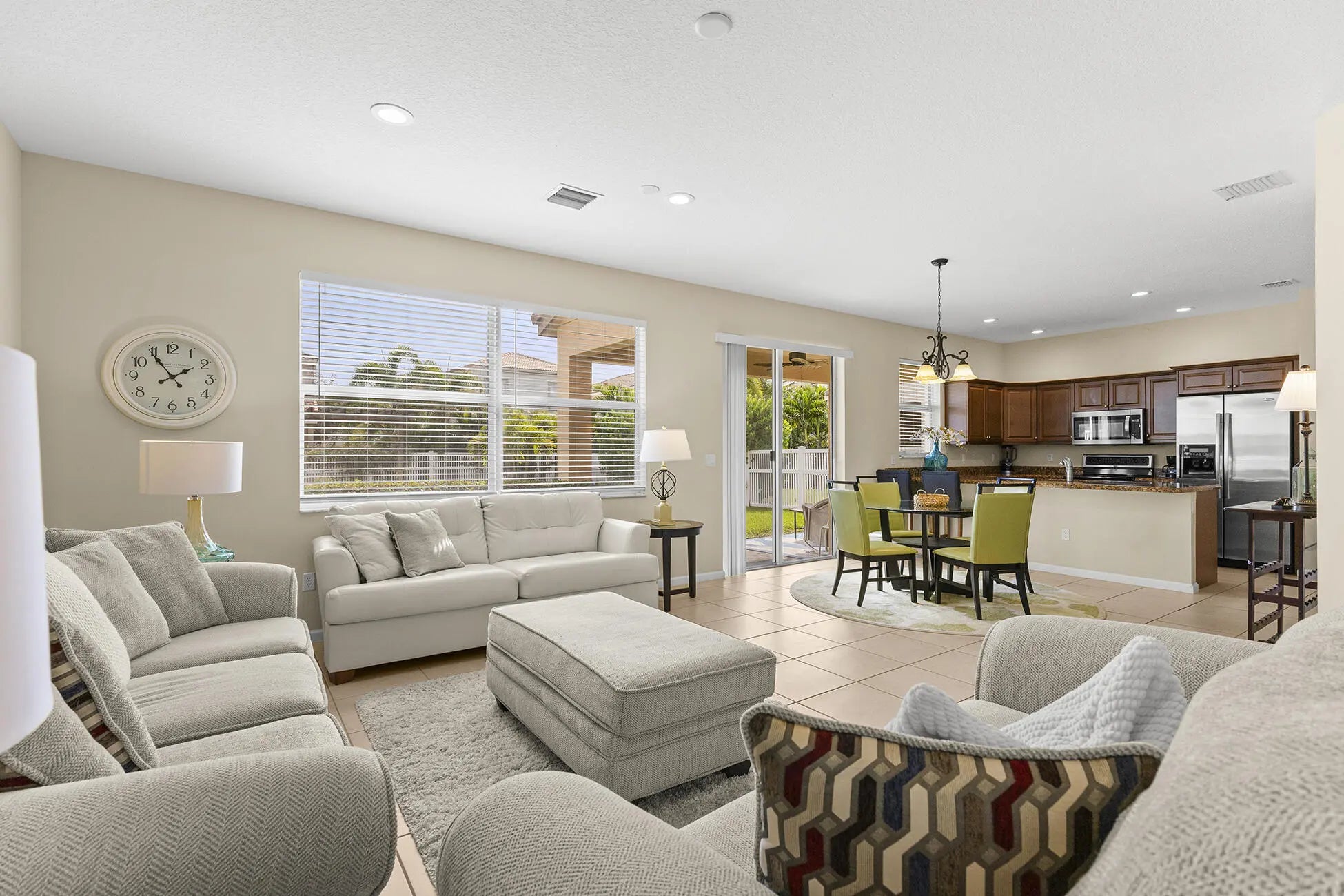 $5,000 seller credit toward buyer closing costs. Move in ready and ideally located just one mile from Downtown Tradition, this well maintained CBS home offers an open layout for everyday living and entertaining with no neighbors across the street. The kitchen features granite countertops, stainless steel appliances, custom cabinetry, and LED lighting. Upstairs, the spacious primary suite includes high ceilings, dual walk in closets, a frameless glass shower, and soaking tub. Outside, enjoy a fully fenced backyard with a covered patio, pergola, fresh landscaping, and room to relax or host. Located in gated TownPark with resort style amenities including pool, spa, fitness center, tennis, pickleball, and bocce. HOA includes cable, internet, alarm, and security.