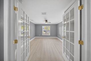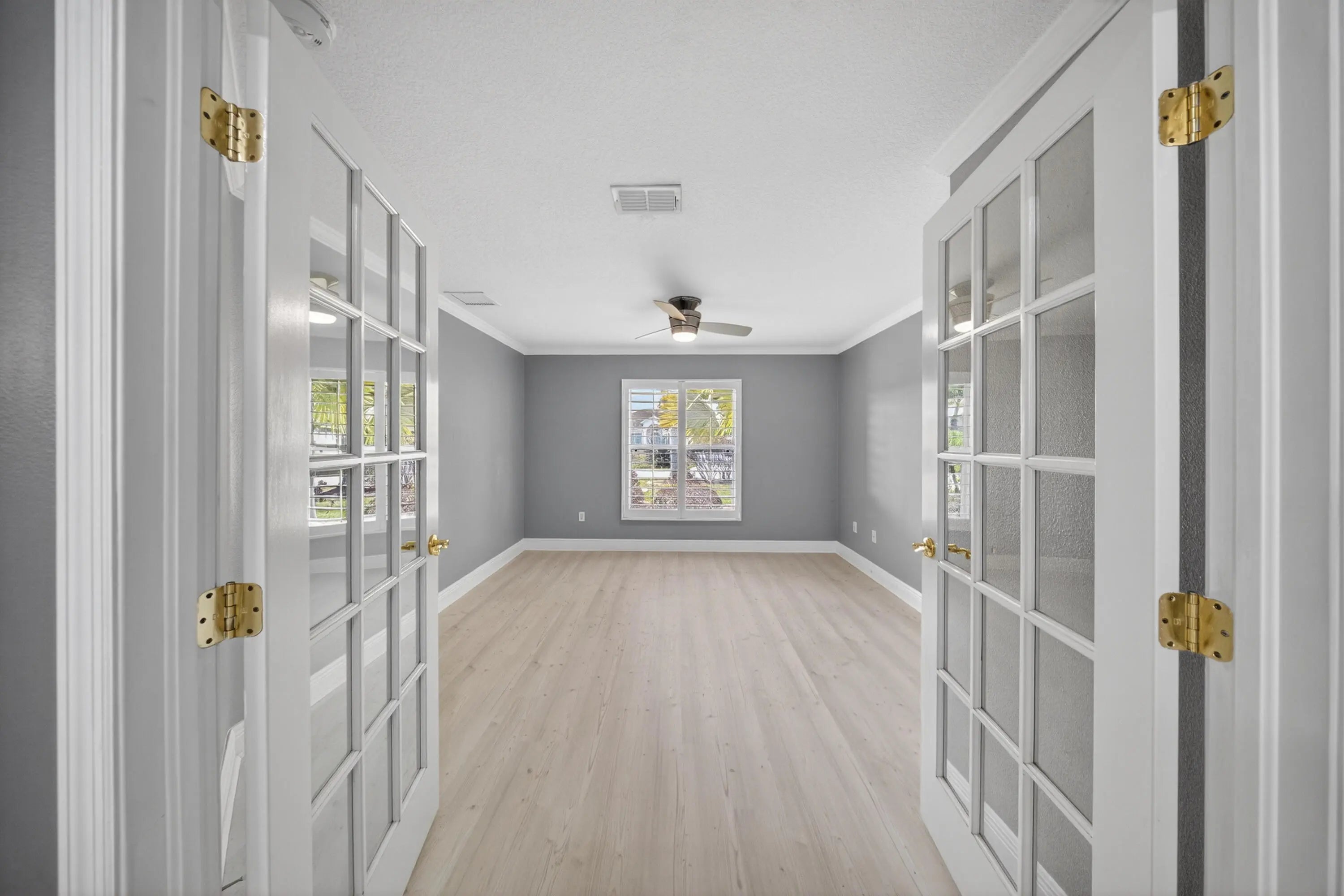 Welcome to this beautifully upgraded 3-bedroom, 2-bath pool home with a 2-car garage plus den/office. Built in 2006 with sturdy CBS construction, this home features 1,809 sq. ft. of living space and thoughtful updates throughout--making it truly move-in ready. Inside, you'll find stylish upgrades, plantation shutters, and updated flooring (2024) that create a clean, modern feel. Step outside to your private backyard oasis with a saltwater in-ground pool, new pool screen enclosure (2024), new pool pump, new pool filter, new irrigation pump, fruit trees, raised garden beds, and recently installed brick pavers--perfect for entertaining or unwinding. The yard is fully fenced and lined with lush palm trees, delivering ultimate privacy and a true Florida vibe. Big-ticket items are already handled, including a metal roof (2022),A/C (2021), and water heater (2023). Enjoy the freedom of NO HOA and an unbeatable location with easy access to I-95 and the Turnpike. Just minutes from Woodland Trails Park, featuring a playground, dog park, walking trails, and fitness stations, and close to The Shoppes at Veranda Falls with Publix and several dining options nearby. This home checks all the boxes--updates, privacy, location, and stress free lifestyle. Schedule your private showing today!