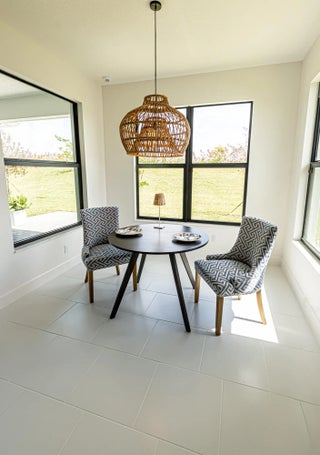 This pristine Ibis extended floorplan in Valencia Walk at Riverland offers the perfect blend of luxury and comfort. This 2/2/2 home adds a versatile flex room and over $35,000+ premium designer finishes. The gourmet kitchen is a chef's dream, boasting 42'' custom cabinetry, sleek quartz countertops, stainless appliances and gas cooking. Built with peace of mind in mind, the home includes full high-impact glass windows and doors. Step outside to an oversized, private backyard featuring an extended covered paver patio--perfect for entertaining. Located within walking distance to the world-class community clubhouse and the new Paseo City Park. Enjoy resort-style amenities in this sought after 55+ community. Don't miss this one!