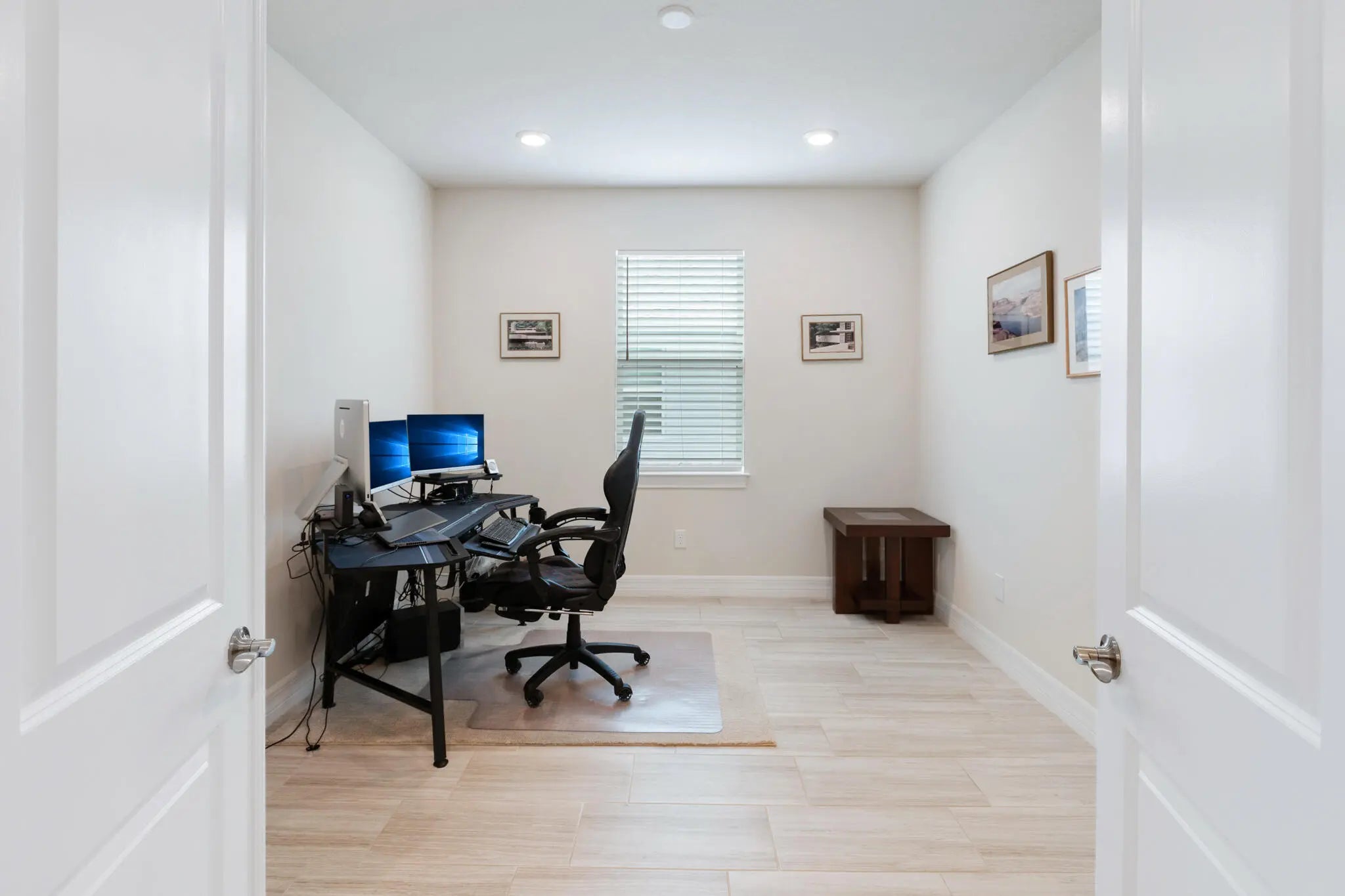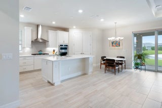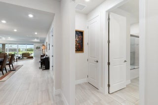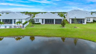 Stunning 3 bedroom + Den, 3 bath home with 3 car garage in sought after gated community of Heron Preserve at Tradition. Enjoy serene lake views from the full-view screened in lanai. This home features stylish wood like tile flooring throughout Impact windows & doors, pocketing sliders that disappear when opened and a gourmet kitchen with high end Kitchen Aid appliances and pullout drawers in cabinets. Oversized walk-in pantry. Neutral tones and high end finishes. The primary suite offers custom closet systems for exceptional storage and style. The versatile den has double doors for privacy and custom built in drop zone by the laundry room adds to the storage capacity. The upscale window treatments complete the polished look. Community pool and cabana for enjoying the Florida lifestyle.