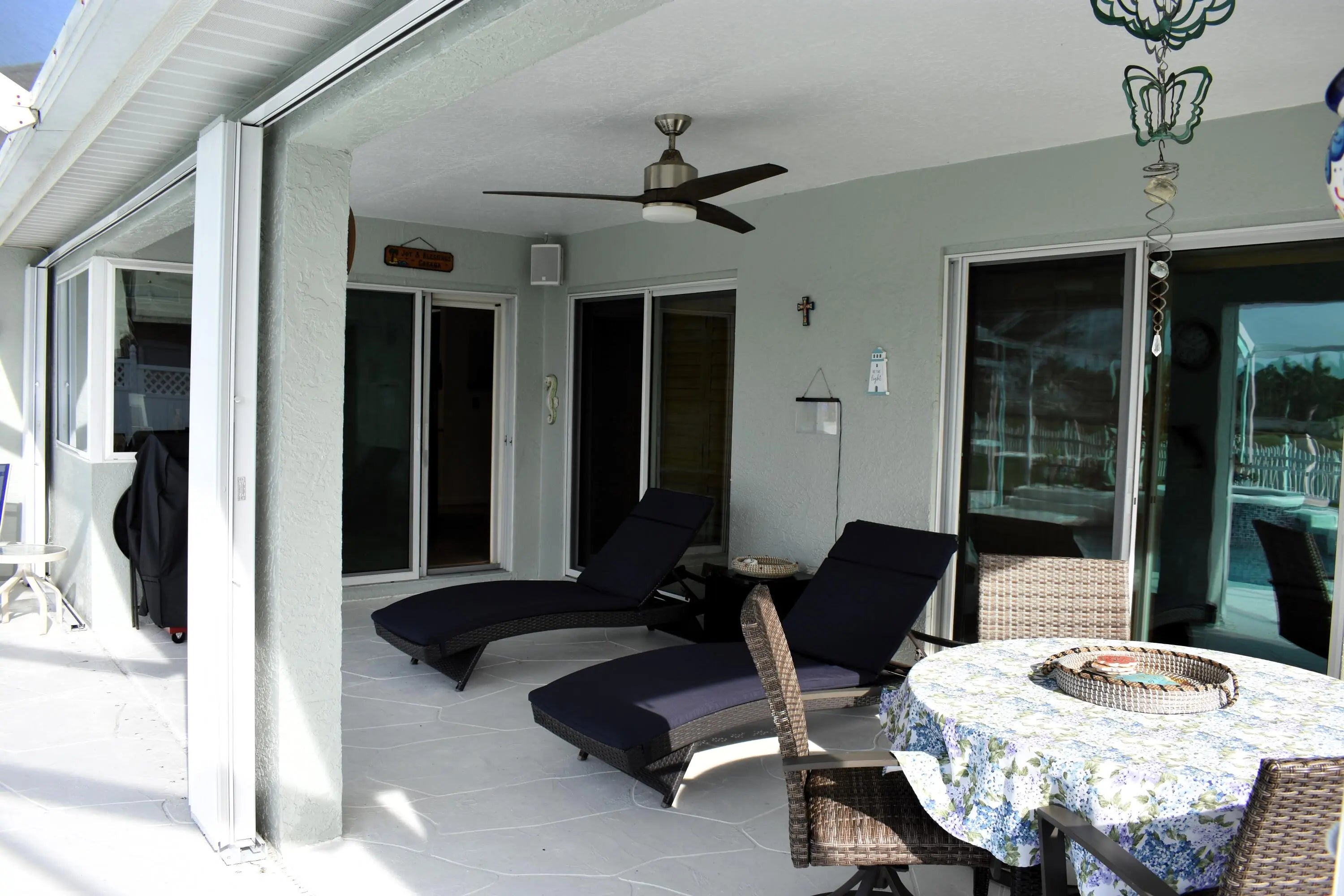 Auto Sprinkler, Fence, Screen Porch, Screened Patio, Shutters, Solar Panels