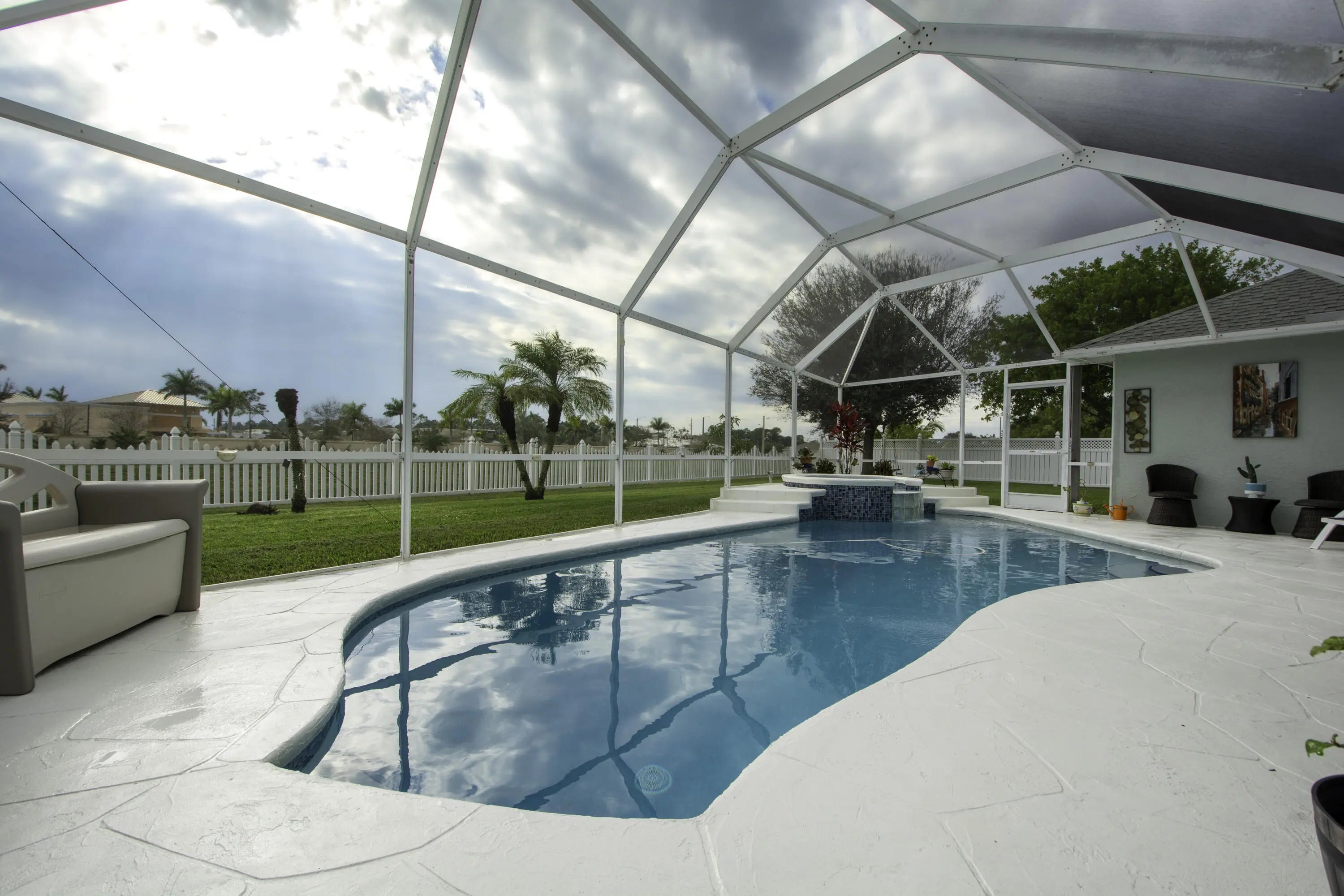View Virtual TourConcrete, Equipment Included, Heated, Inground, Screened, Solar Heat, Spa