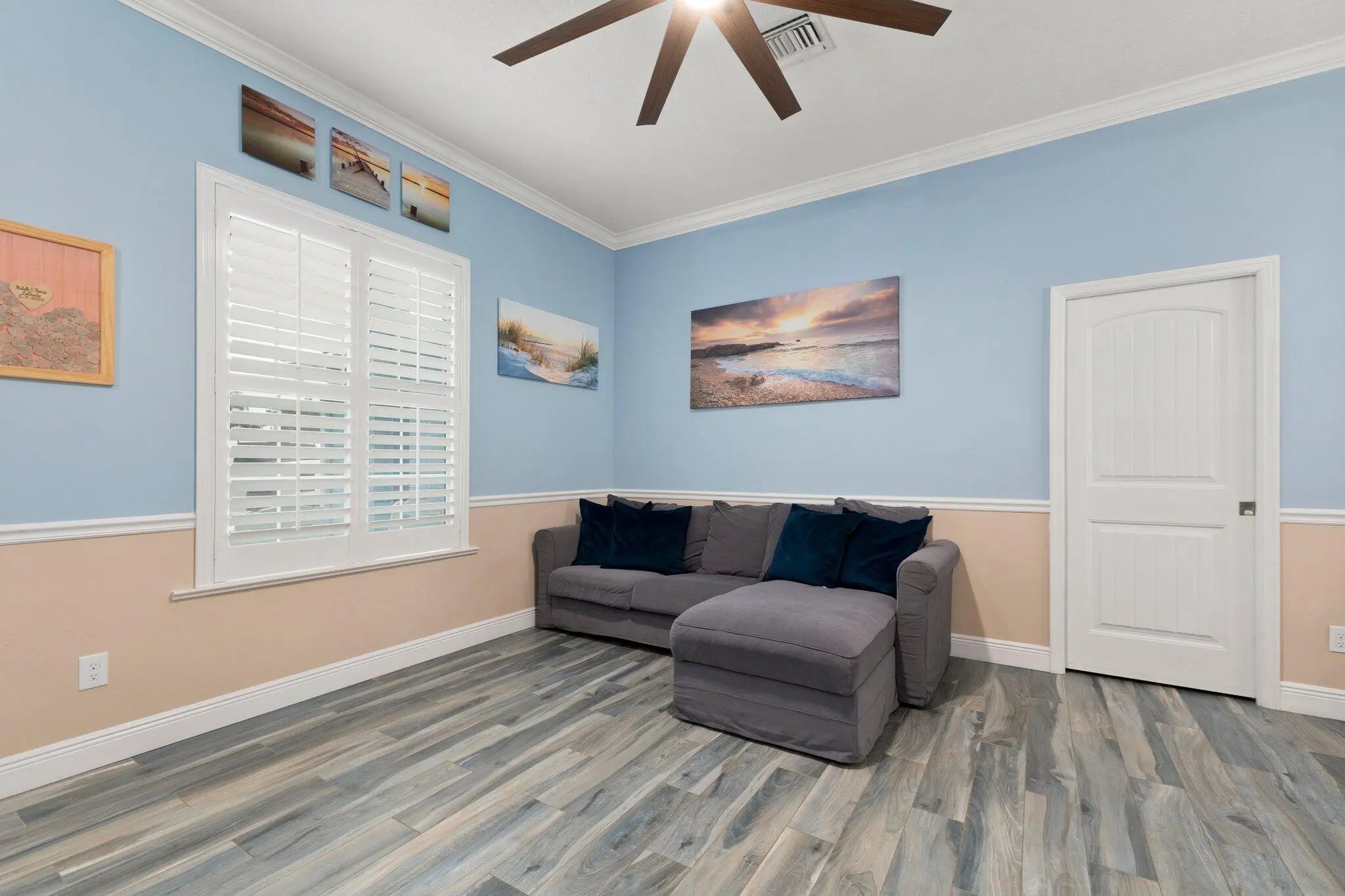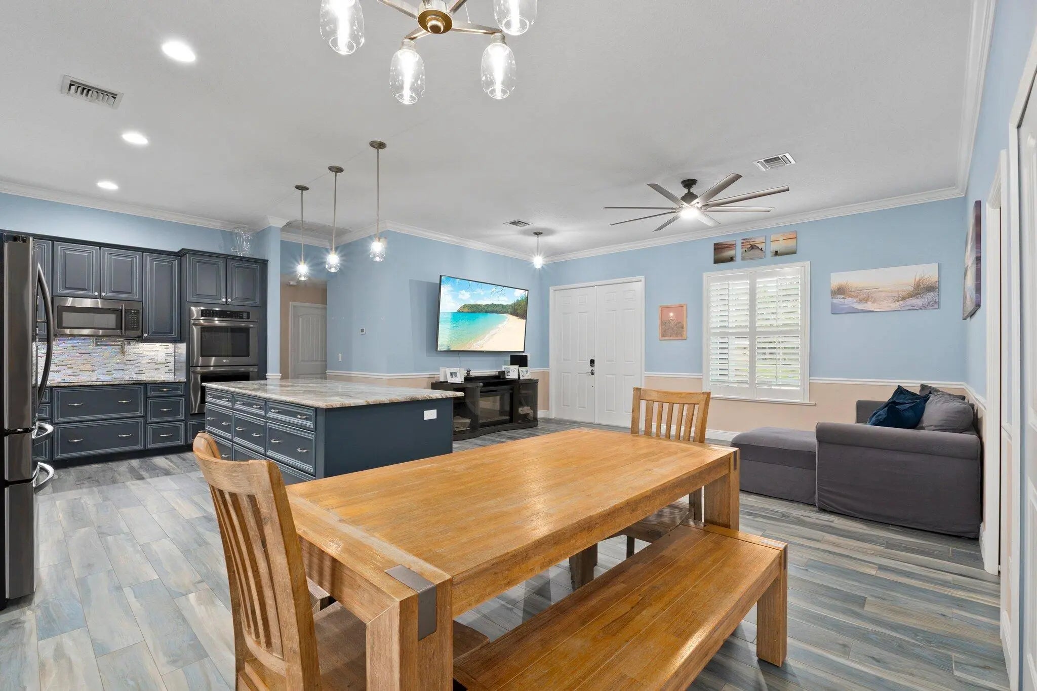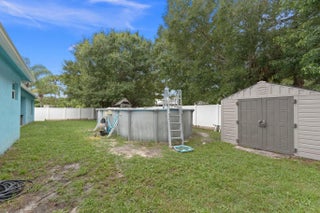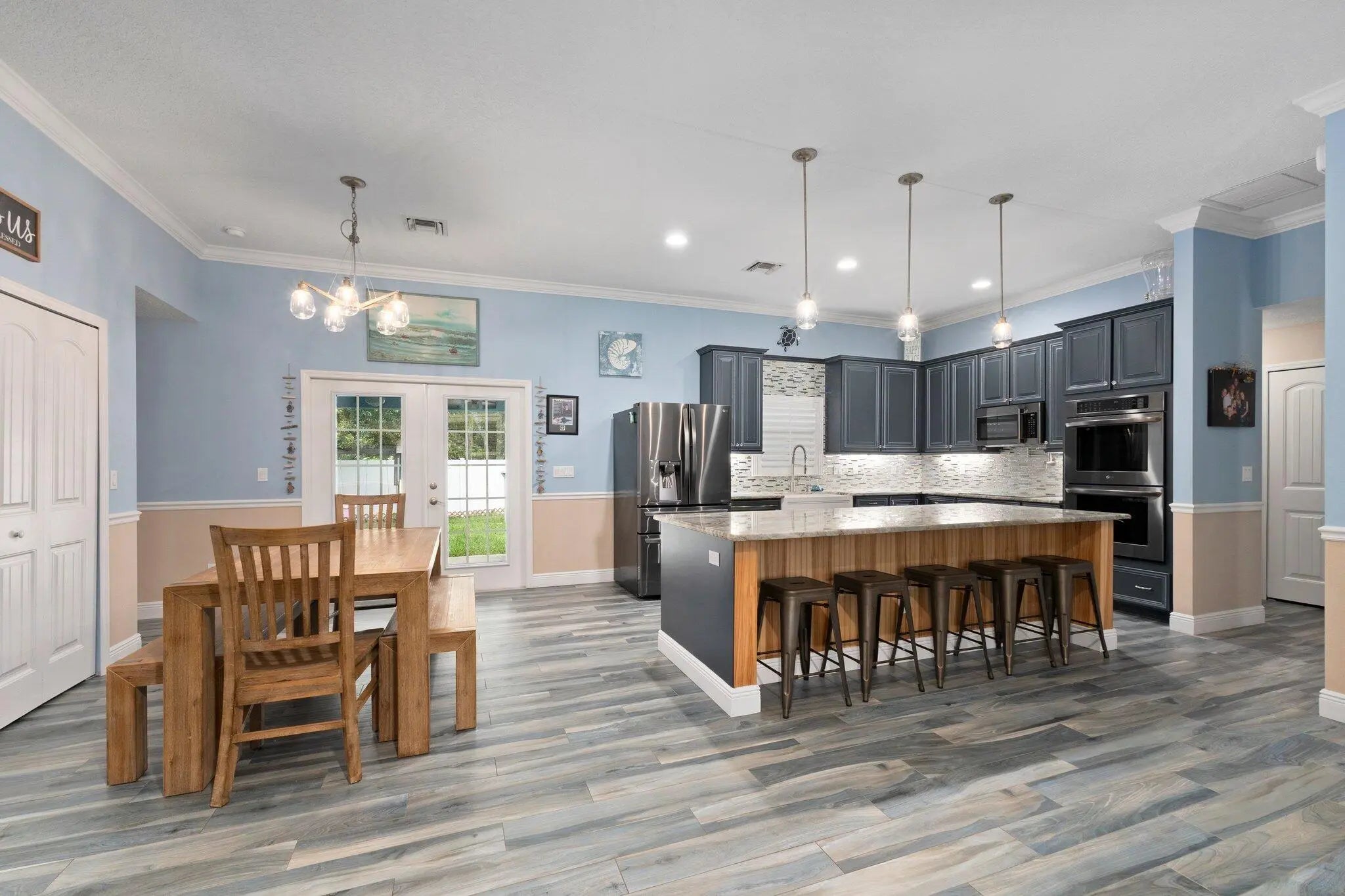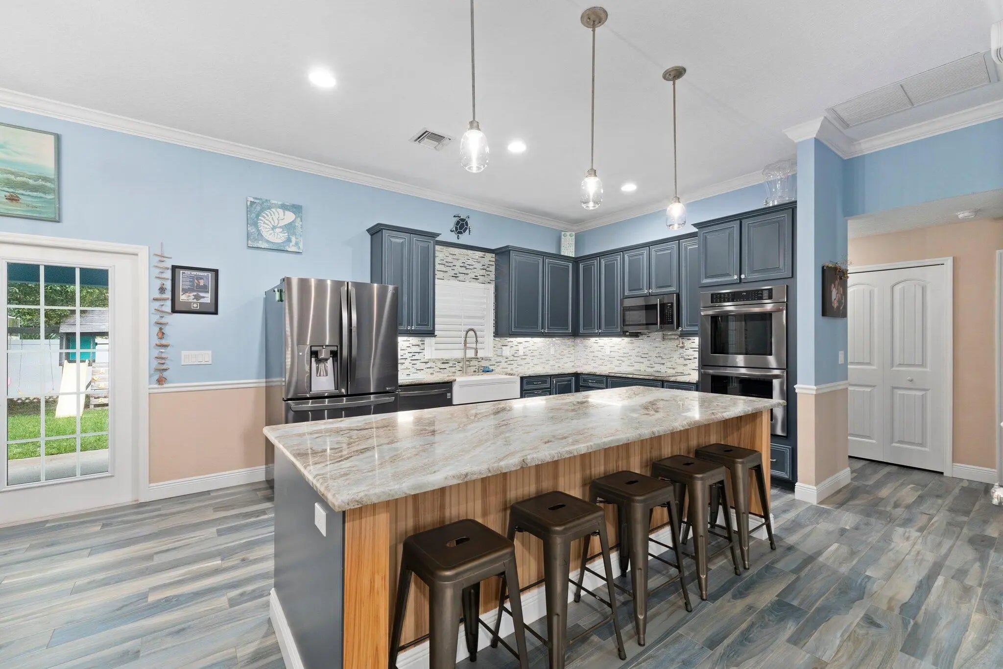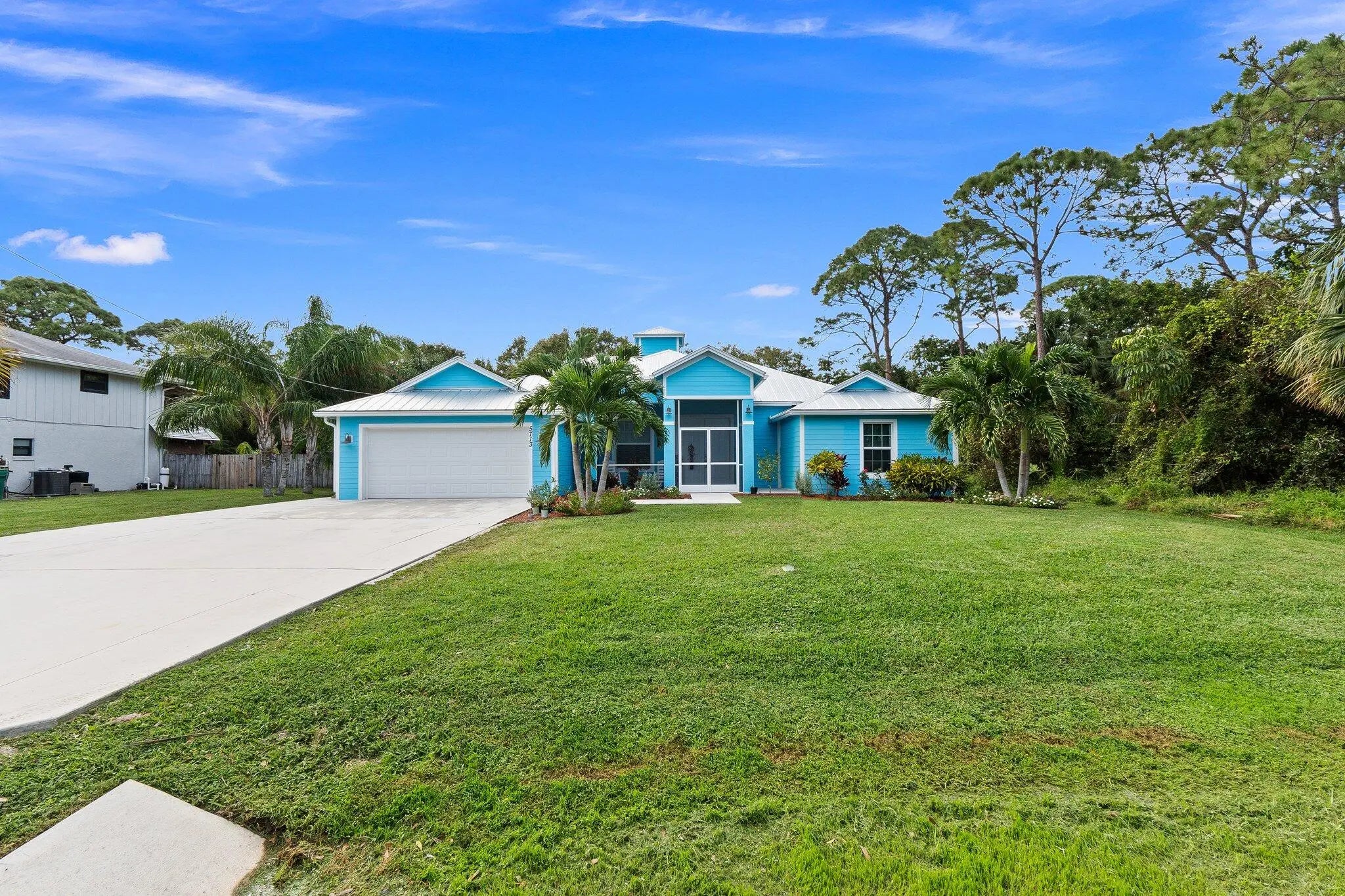 Stunning 2019 Custom-Built Family HomeProperty OverviewThis practically new, rare offering is a completely custom-built 2019 concrete block home featuring a wide-open, family-friendly floor plan. The residence boasts five spacious bedrooms and three full bathrooms, all thoughtfully situated on a generous quarter-acre lot.Exterior FeaturesDesigned for durability and safety, this meticulously crafted home is built to withstand storms with its solid concrete block construction, a robust metal roof, and hurricane impact windows and doors. The massive concrete driveway provides ample space for your boat or RV. Beyond the driveway, a spacious backyard awaits, fully sodded with Floratam/St. Augustine grass. This kitchen is a chef's dream, Large white farm style sink, custom blue cabinets, soft close drawers & cabinets, oversized island with bar seating, LG appliances cook top with a pot filler and an over the range microwave, double wall oven, all black stainless-steel appliances and under cabinet lighting all make entertaining a breeze. The main living in this home is airy and bright with coastal finishes and colors. Relax in your master suite with his and hers walk-in closets and a well-appointed ensuite bathroom. Custom lighting, gray cabinets, granite countertops, vessel bowl sinks, with a large walk-in shower equipped with a large bench and separate jetted jacuzzi tub, and a private toilet room ensure the master bath is a spa retreat at home. This split floor plan has Four large guest bedrooms that feature expansive closet space and two full guest bathrooms with tub/shower combinations. The third bath leads out to the back trussed covered porch that overlooks the above ground pool and large backyard. The entire yard is kept watered via the rain bird irrigation system. 2-10 transferable home buyer warranty. This home needs nothing and is ready to move in. You would be very hard pressed to build for this price and can have it all right now without the long build wait. Please see attached documents for additional details.